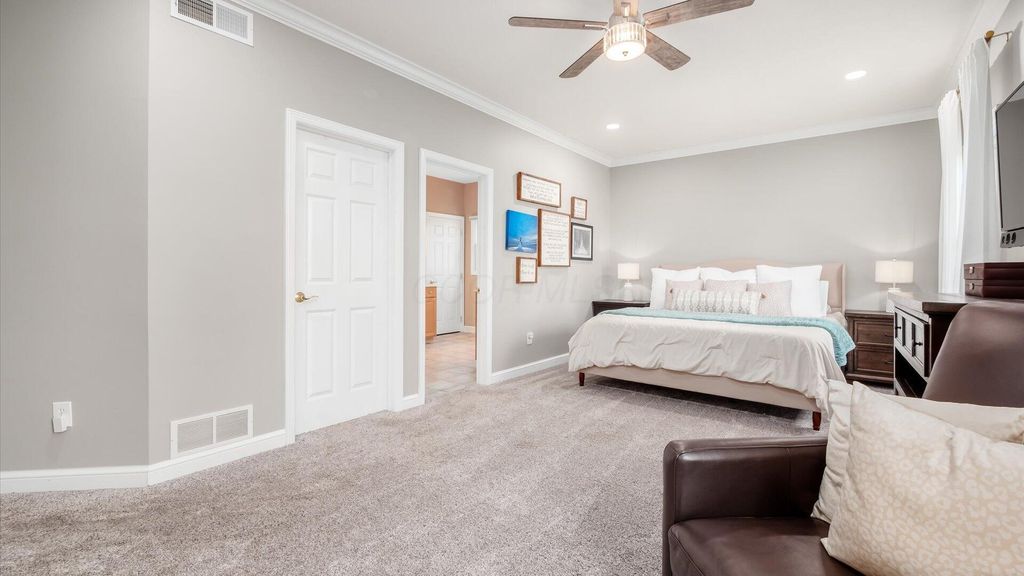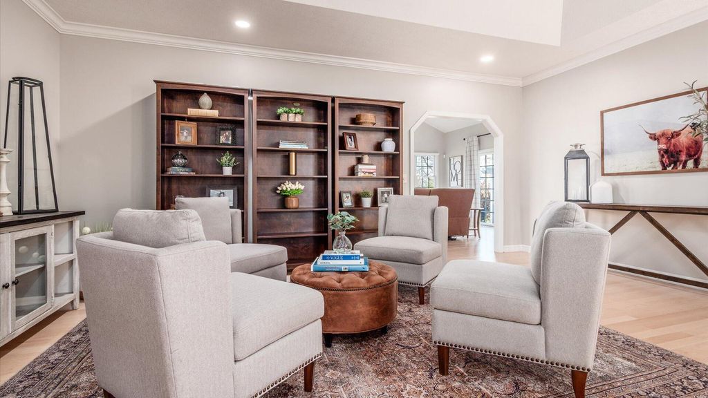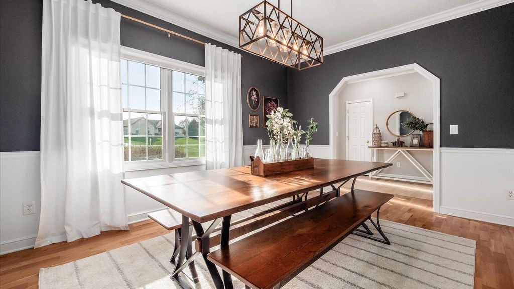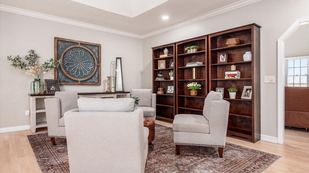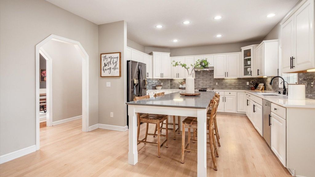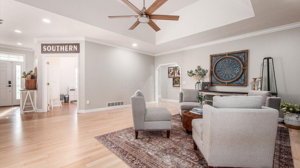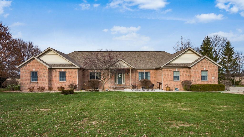 Impeccable ranch home in Greenfield Estates offering 5 bedrooms, 3.5 baths, and over 4,200 square feet of finished living space on a beautiful 1.35-acre lot. The updated kitchen is a standout, featuring quartz countertops, stainless steel appliances, stylish backsplash, a massive island, and a walk-in pantry"”perfect for entertaining and everyday living. The main level boasts an oversized living room, dedicated home office, formal dining room, and family room with a cozy fireplace. The spacious owner's suite provides a private retreat with a luxurious en-suite bath showcasing tile flooring, dual vanities, and walk-in shower. The finished basement expands the living space with two additional bedrooms, a full bath, and a large entertainment area"”ideal for game days or movie nights. Step outside to enjoy a private backyard oasis complete with a patio and pergola, while the impressive exterior features extensive landscaping, a welcoming front patio, and exceptional curb appeal that completes the home's charm.