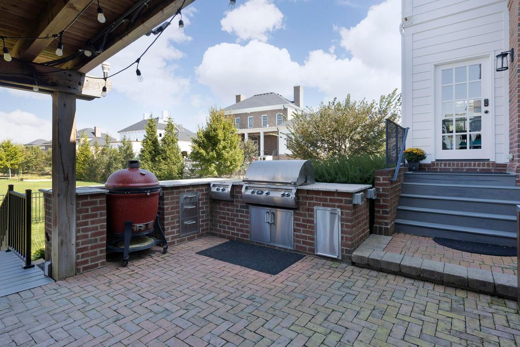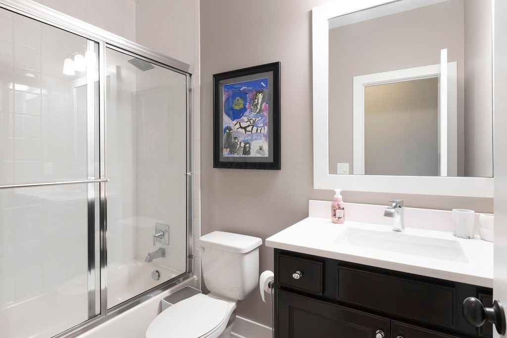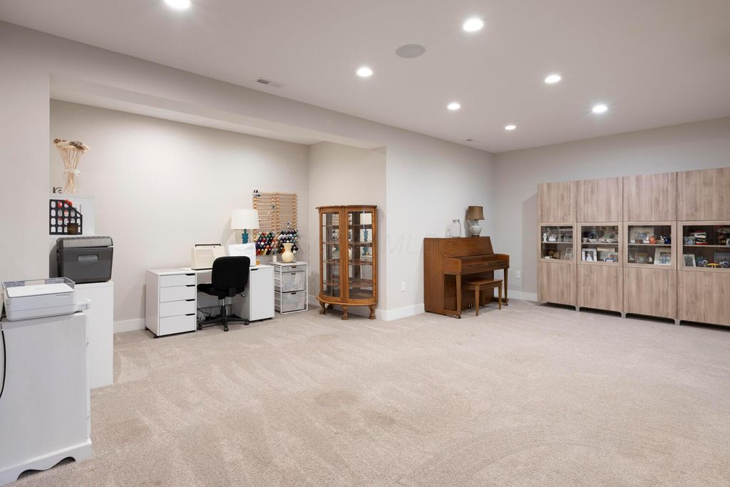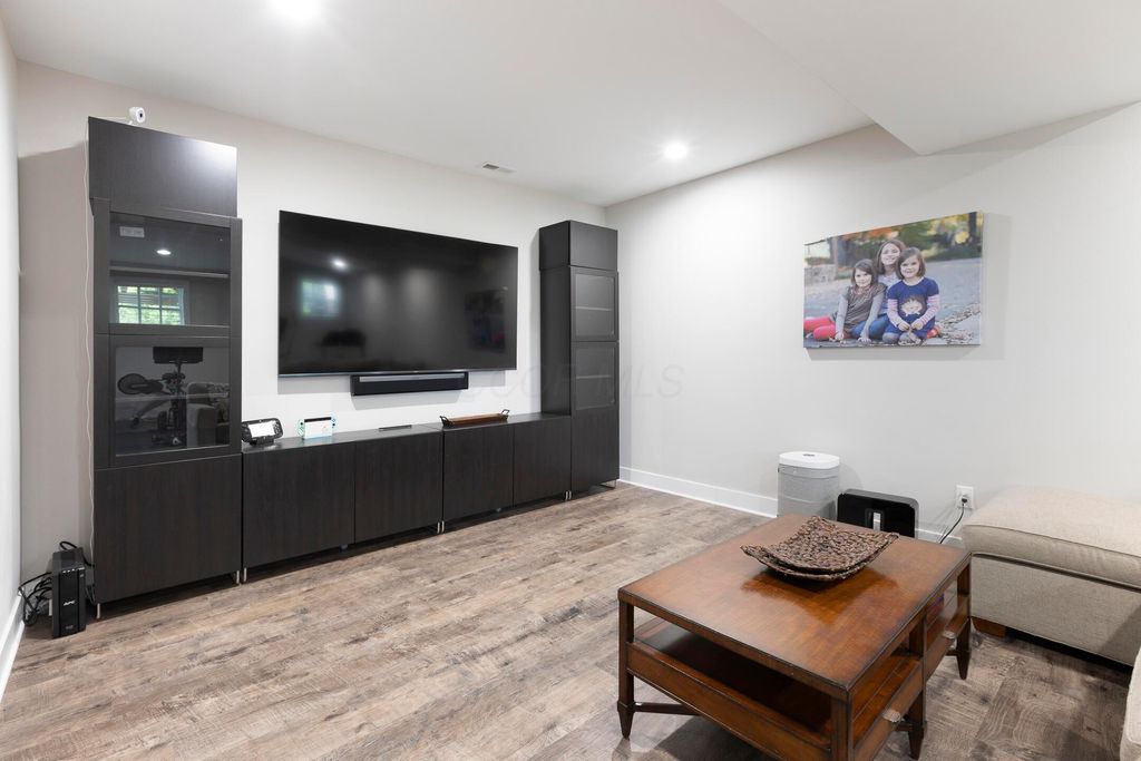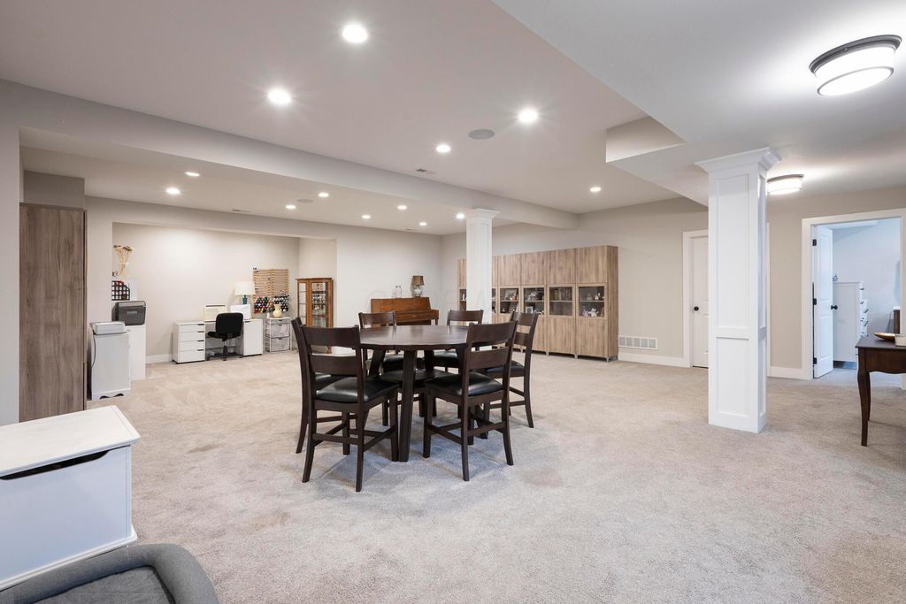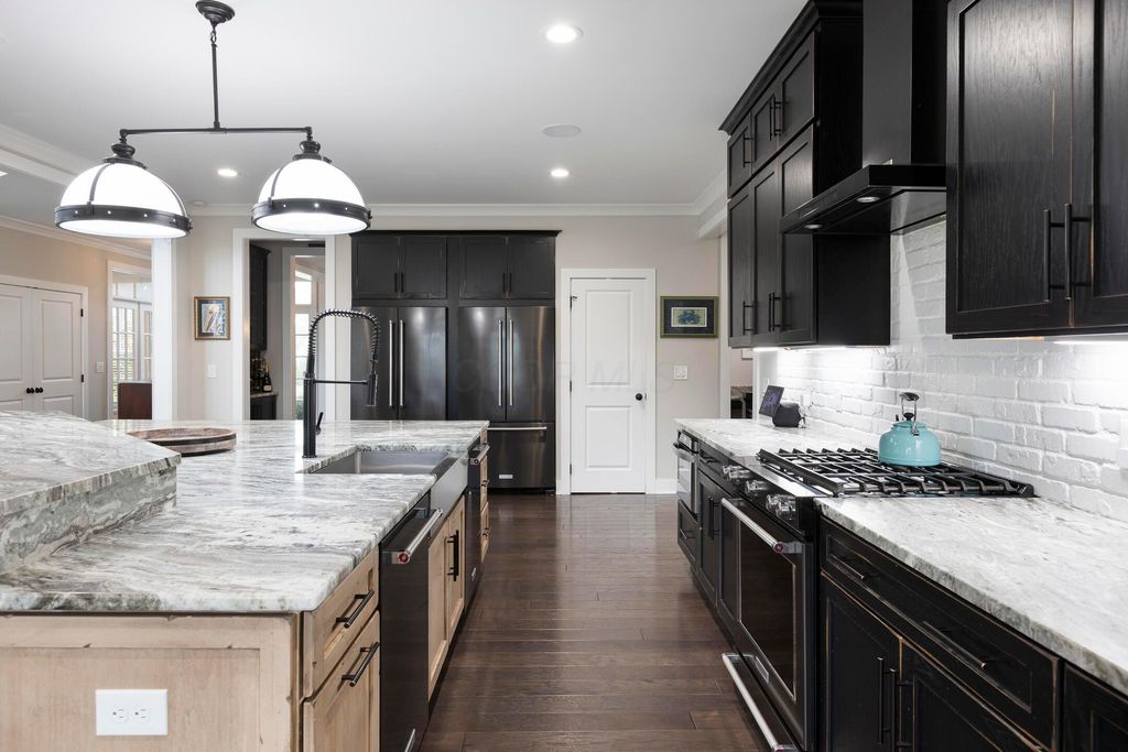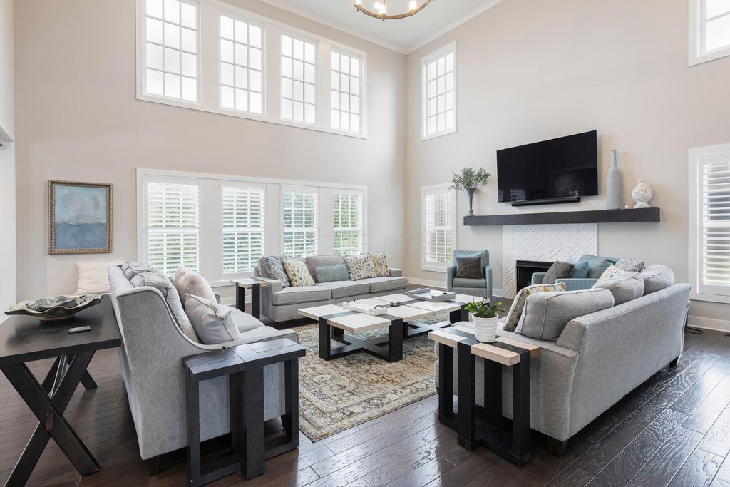 This magnificent five-level split offers a rare and refined floor plan in the New Albany Country Club community. A soaring two-story great room anchors the main level and flows seamlessly into a gourmet kitchen featuring new titanium black appliances, custom cabinetry, and an adjacent custom workspace perfect for managing household tasks. A dedicated first-floor office provides privacy for remote work, while a nearby flex room offers versatility for formal dining or play. The oversized mudroom off the garage impresses with custom cabinetry, multiple closets, and smart storage throughout. On the first level up, you will find the primary suite with dual walk-in closets and a spa-inspired bath. Just above, three generously sized bedrooms include one with a private en-suite and two that share a Jack-and-Jill bath and a convenient second-floor laundry room. One level down from the main, a spacious bonus room with bar provides flexible space for exercise, media, or play. The finished lower level is designed for entertaining, with a large recreation area and a full bedroom with en-suite bath and private access, ideal for guests or multi-generational living. Step outside to enjoy the covered patio, designed for year-round use with a built-in fireplace and custom grilling and smoking station. The fully fenced yard offers added privacy and peace of mind for outdoor living. With rich hardwood floors, designer tile, and premium finishes throughout, this home delivers exceptional style, comfort, and convenience, just steps from a neighborhood park and play area.