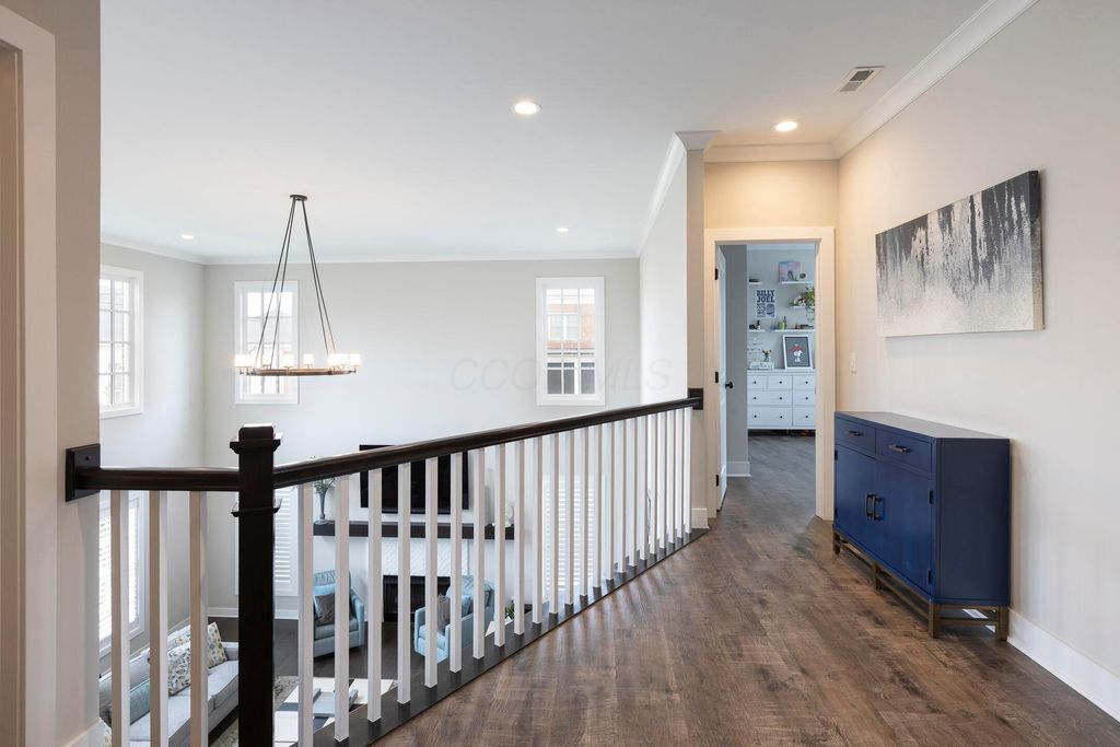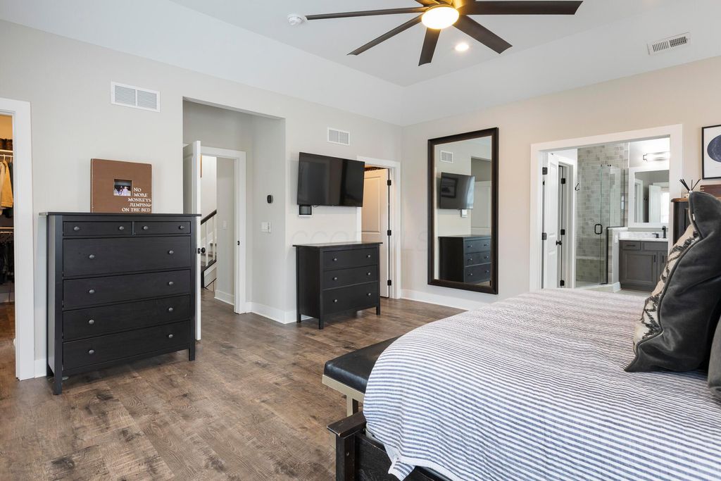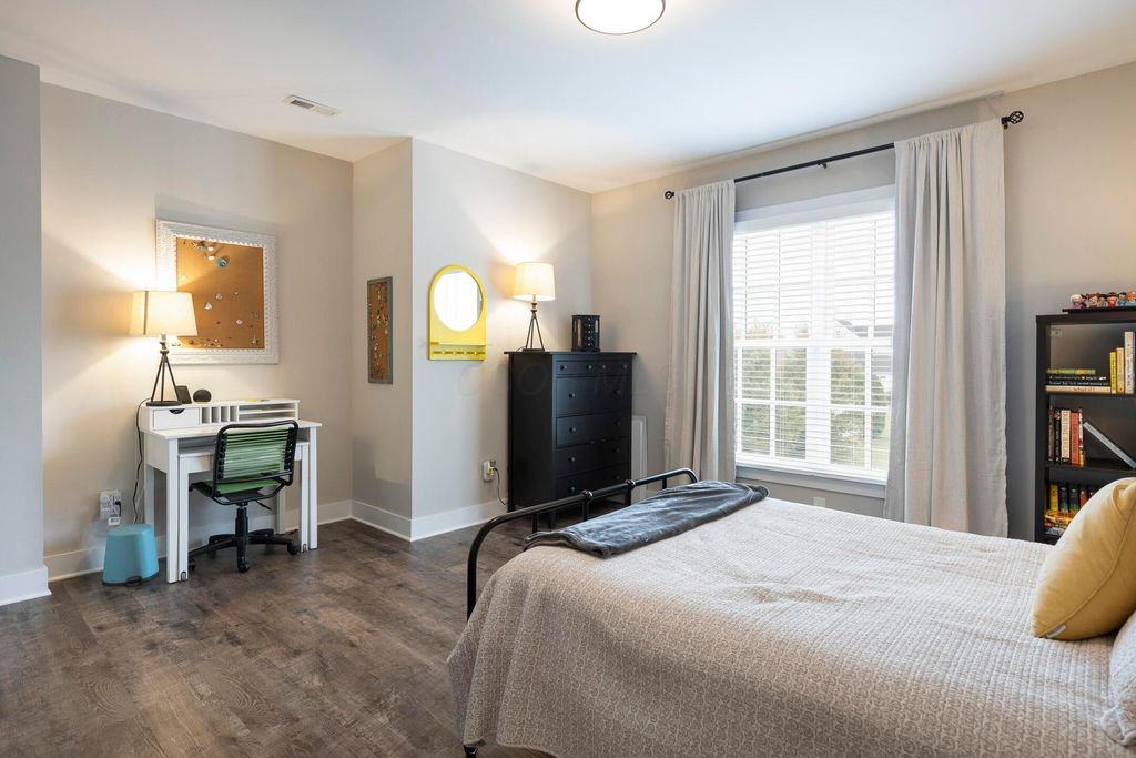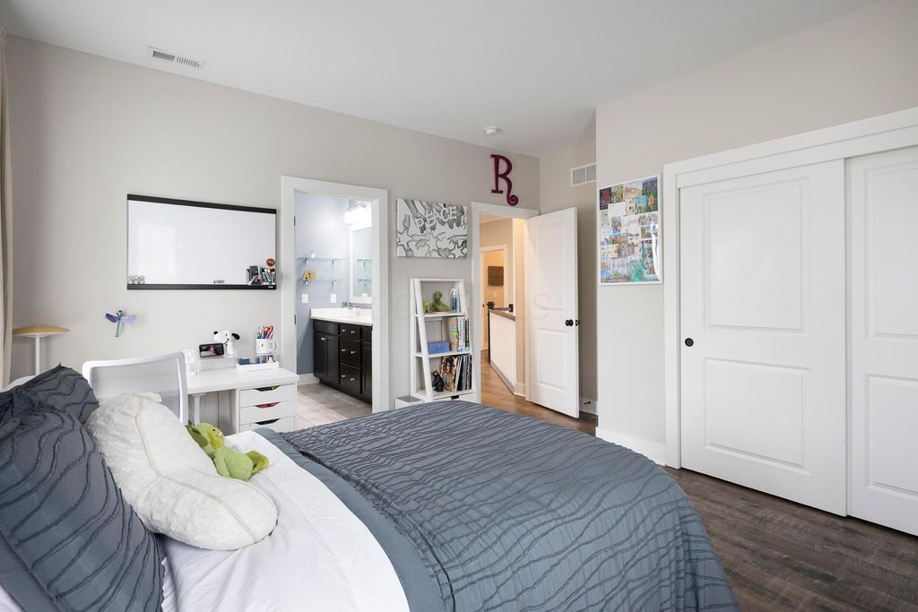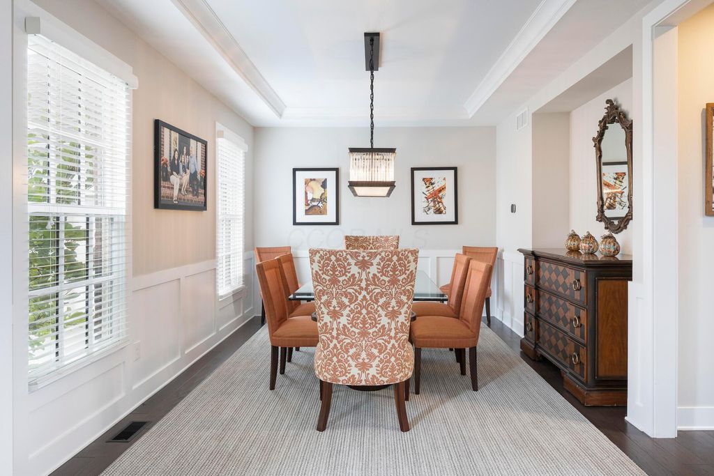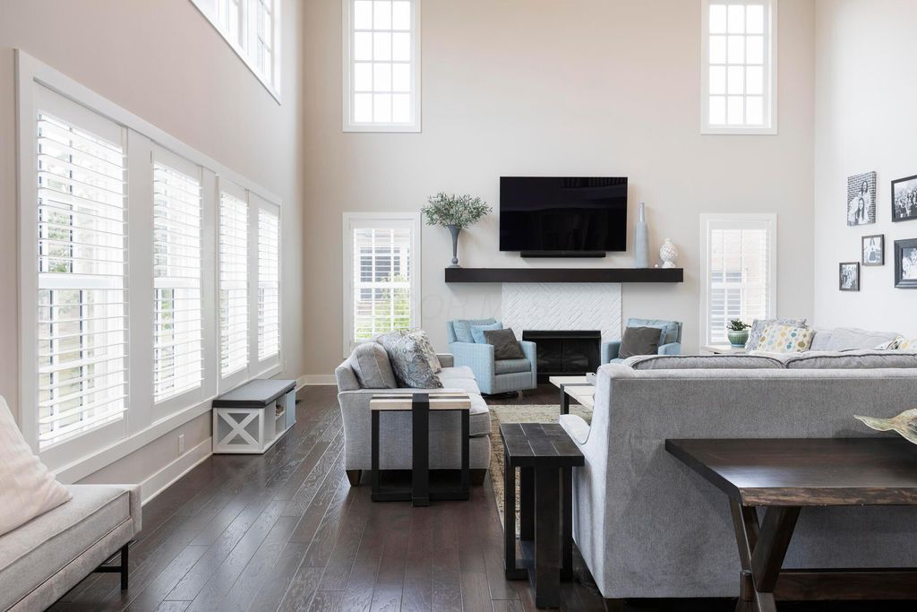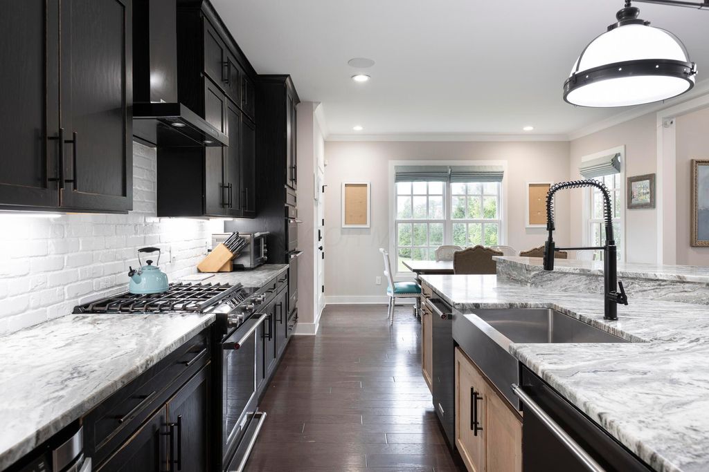 This magnificent five-level split offers a rare and refined floor plan in the New Albany Country Club community. A soaring two-story great room anchors the main level and flows seamlessly into a gourmet kitchen featuring new titanium black appliances, custom cabinetry, and an adjacent custom workspace perfect for managing household tasks. A dedicated first-floor office provides privacy for remote work, while a nearby flex room offers versatility for formal dining or play. The oversized mudroom off the garage impresses with custom cabinetry, multiple closets, and smart storage throughout. On the first level up, you will find the primary suite with dual walk-in closets and a spa-inspired bath. Just above, three generously sized bedrooms include one with a private en-suite and two that share a Jack-and-Jill bath and a convenient second-floor laundry room. One level down from the main, a spacious bonus room with bar provides flexible space for exercise, media, or play. The finished lower level is designed for entertaining, with a large recreation area and a full bedroom with en-suite bath and private access, ideal for guests or multi-generational living. Step outside to enjoy the covered patio, designed for year-round use with a built-in fireplace and custom grilling and smoking station. The fully fenced yard offers added privacy and peace of mind for outdoor living. With rich hardwood floors, designer tile, and premium finishes throughout, this home delivers exceptional style, comfort, and convenience, just steps from a neighborhood park and play area.