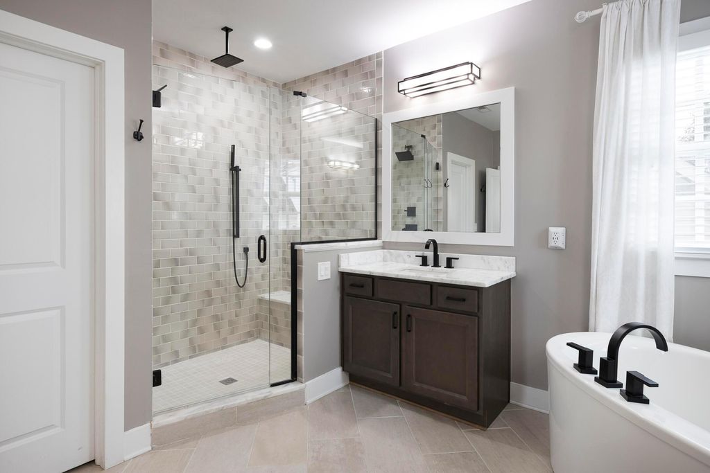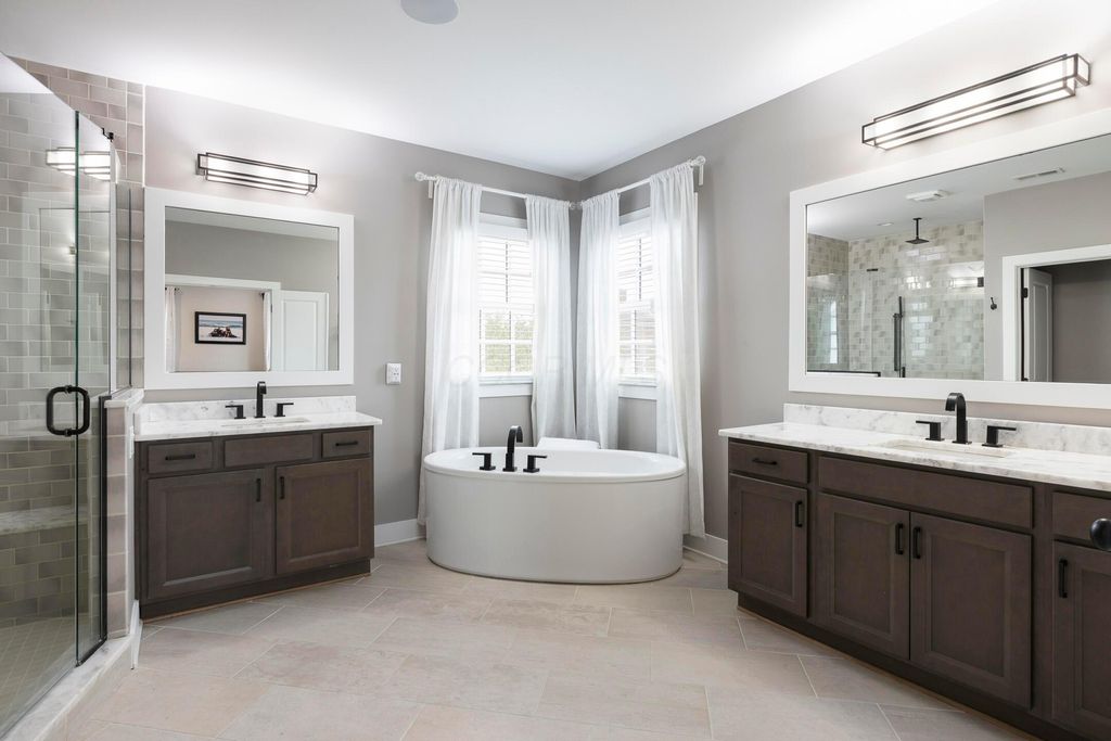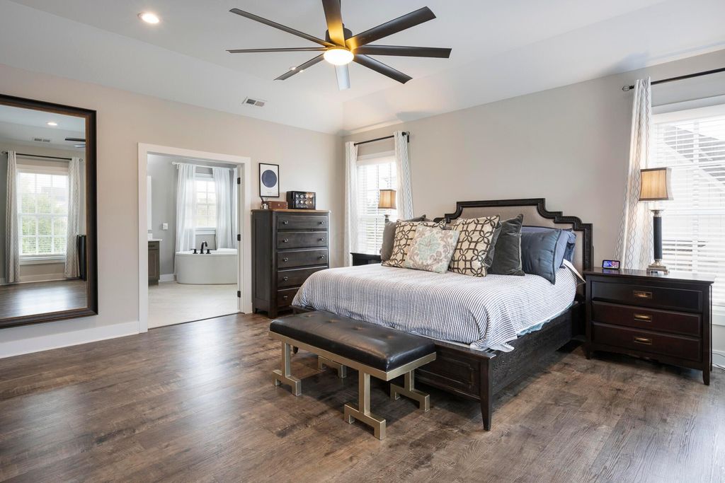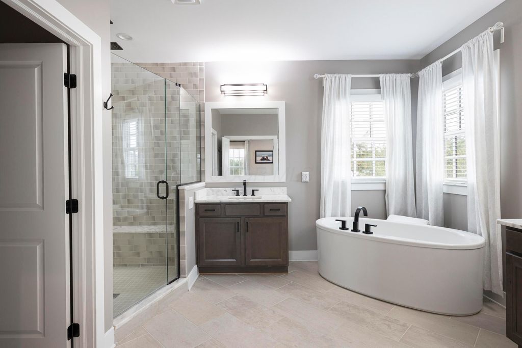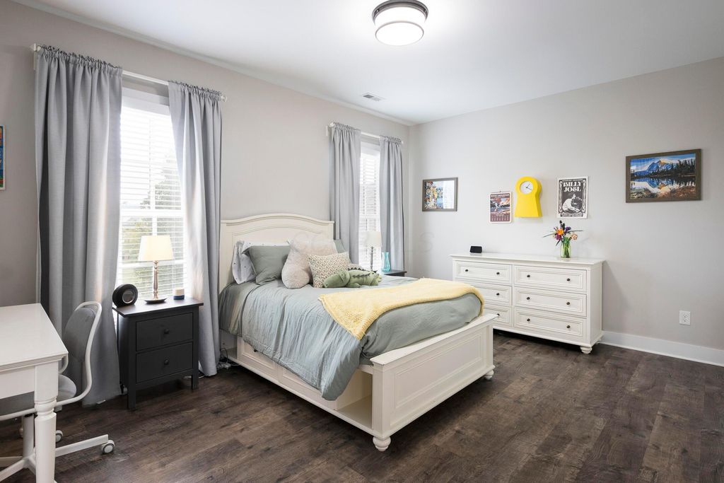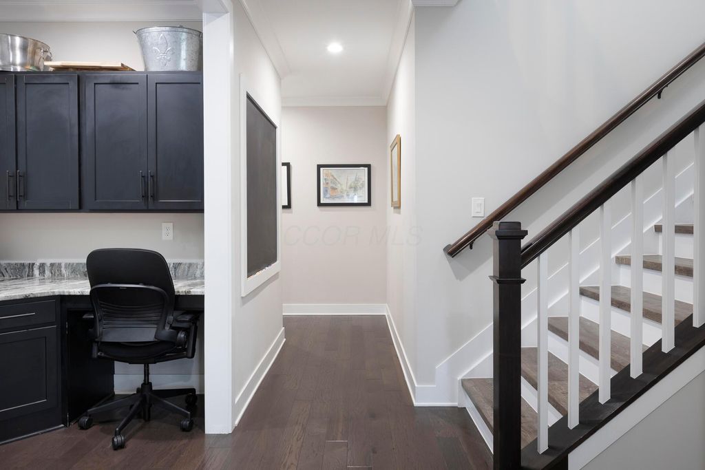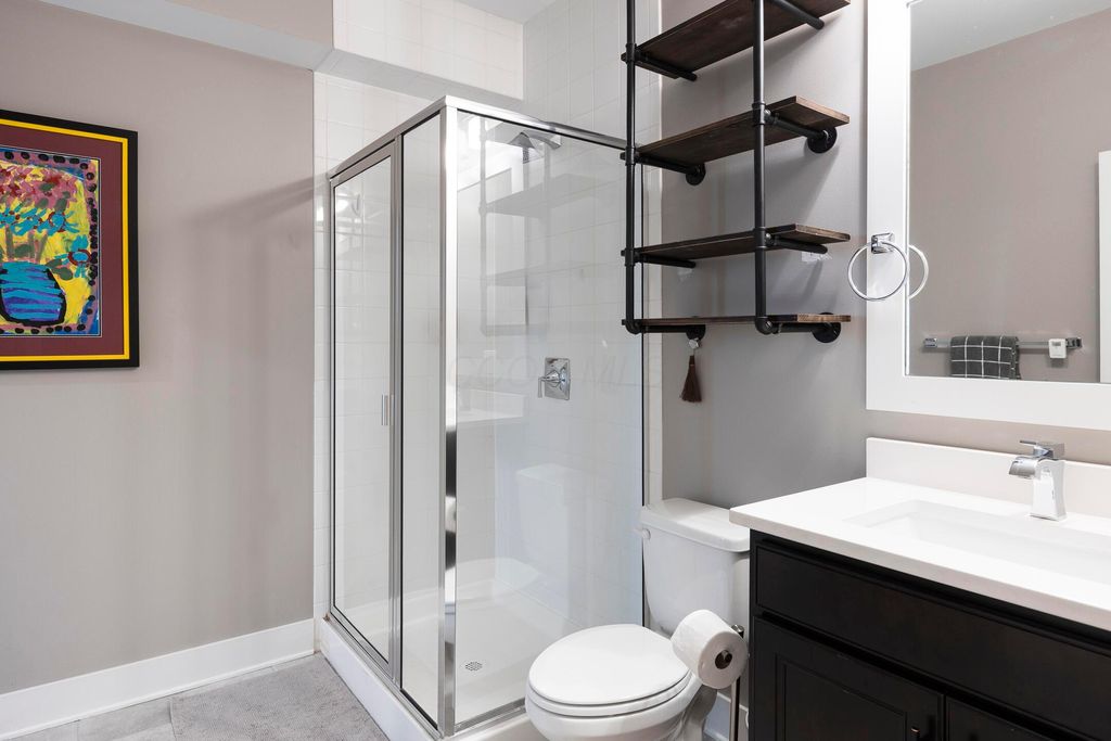 This magnificent five-level split offers a rare and refined floor plan in the New Albany Country Club community. A soaring two-story great room anchors the main level and flows seamlessly into a gourmet kitchen featuring new titanium black appliances, custom cabinetry, and an adjacent custom workspace perfect for managing household tasks. A dedicated first-floor office provides privacy for remote work, while a nearby flex room offers versatility for formal dining or play. The oversized mudroom off the garage impresses with custom cabinetry, multiple closets, and smart storage throughout. On the first level up, you will find the primary suite with dual walk-in closets and a spa-inspired bath. Just above, three generously sized bedrooms include one with a private en-suite and two that share a Jack-and-Jill bath and a convenient second-floor laundry room. One level down from the main, a spacious bonus room with bar provides flexible space for exercise, media, or play. The finished lower level is designed for entertaining, with a large recreation area and a full bedroom with en-suite bath and private access, ideal for guests or multi-generational living. Step outside to enjoy the covered patio, designed for year-round use with a built-in fireplace and custom grilling and smoking station. The fully fenced yard offers added privacy and peace of mind for outdoor living. With rich hardwood floors, designer tile, and premium finishes throughout, this home delivers exceptional style, comfort, and convenience, just steps from a neighborhood park and play area.