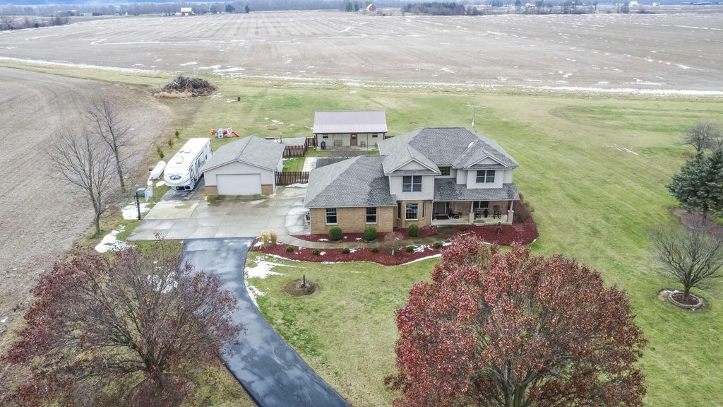 Welcome to an extraordinary opportunity to own a private estate where refined living meets unmatched functionality. Situated on 2.96 beautifully maintained acres, this 3-bedroom, 2.5-bath home offers space, privacy, and premium features rarely found in today's market. The interior showcases thoughtful design with a partially finished basement, perfect for a media room, home gym, or additional living space. Above the attached garage is extensive storage with the potential to be converted into finished square footage, offering a unique opportunity to expand the home's living area, create a guest suite, or design a private office or studio. Outdoors, the property transforms into a personal retreat with a heated in-ground pool, ideal for entertaining or enjoying peaceful summer evenings. A paved driveway leads to an impressive garage setup that includes an attached 3.5-car garage plus two detached 3-car garages, one of which is heated and insulated"”perfect for car enthusiasts, hobbyists, or small business needs. Additional high-value upgrades include a 24 kw whole-house generator for uninterrupted comfort and a new roof installed in 2024, ensuring long-term peace of mind. This property offers the perfect balance of luxury, versatility, and serene country living, all while remaining conveniently located 15 minutes from Marysville, Delaware and Honda. A rare and remarkable offering with endless possibilities"”this is more than a home, it's a lifestyle.