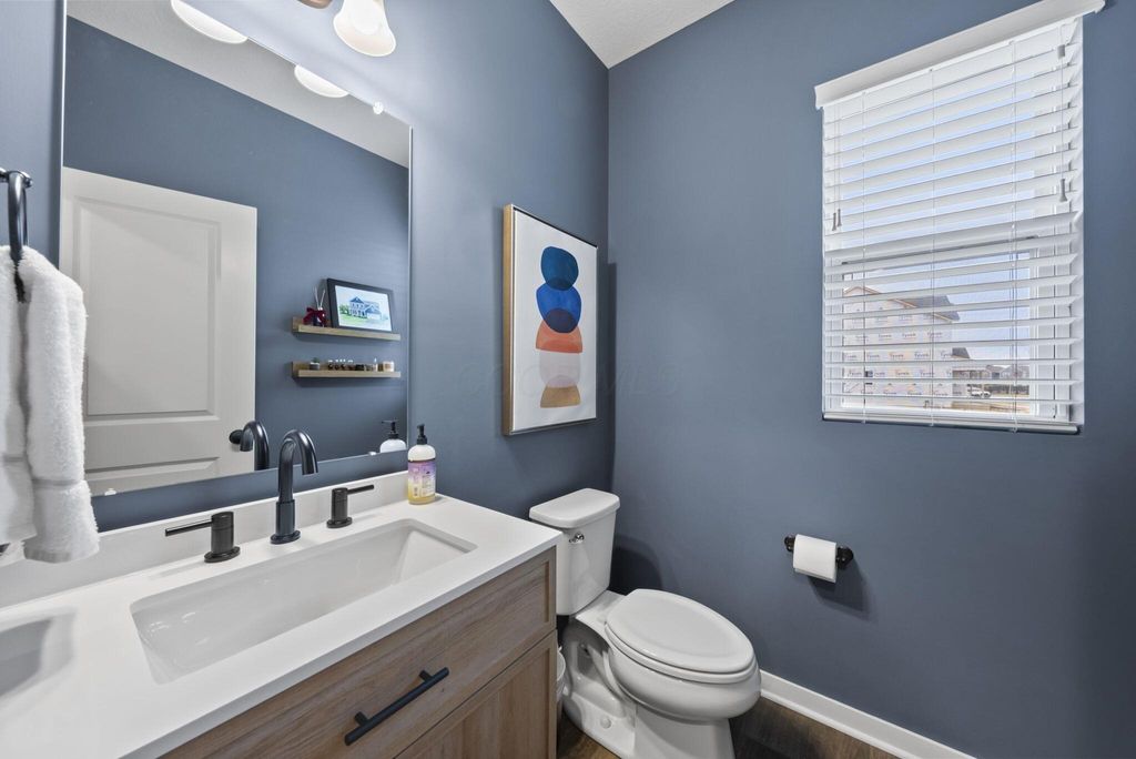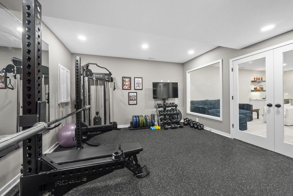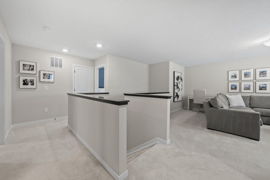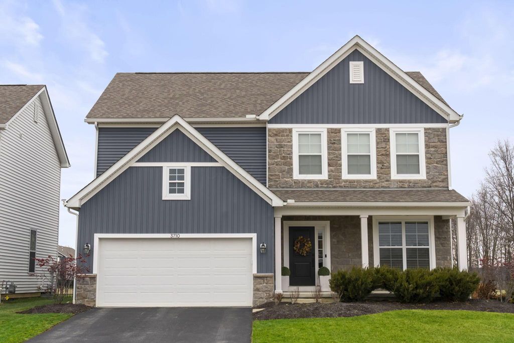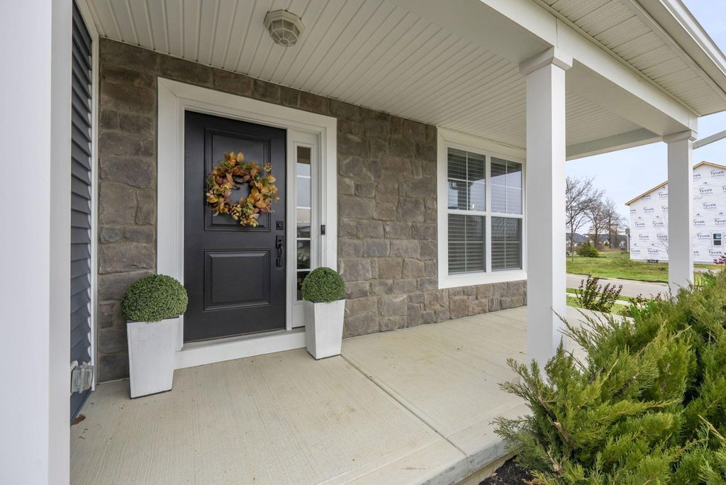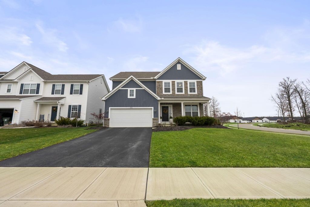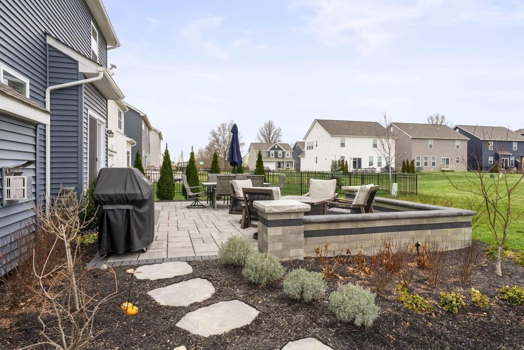 This stunning new home boasts OVER $200K IN UPGRADES in the highly desirable OLENTANGY LIBERTY SCHOOL DISTRICT! Premier CORNER LOT with extensive landscaping and view of neighborhood pond not only offers peace and tranquility, but an abundance of PRIVACY as well. Paver patio with sitting wall completes the outdoor space and offers a great environment for entertaining. MI Homes Erie Floorplan - offering OPEN CONCEPT first floor with PRIVATE OFFICE or den, and upstairs you will find a SPACIOUS LOFT, 3 large bedrooms including en-suite primary, plus generous guest bath and second floor laundry. Other notable updates include the NEWLY FINISHED BASEMENT (2025) offering an additional half bath, a luxurious backlit wet bar, a secondary living space, and last but not least - a full gym, equip with professional rubber flooring, mirrors, cubbies, glass doors and storage areas (sauna and workout equipment negotiable). Basement also offers ample storage space (not pictured). Closets have been upgraded with thoughtfully customized organizational systems. Mudroom, laundry room and garage have also been customized to maximize functionality. Neutral paint, luxury vinyl flooring, an abundance of natural light and high end fixtures/hardware selections throughout. The exterior boasts a covered front porch and a stone facade. Highly sought after neighborhood offering playground/dog park and pond to its residents, and FENCES ARE PERMITTED. If you're looking for a newer home and don't want to spend the money out of pocket (or time and energy) on the upgrades and additional improvements - this is your perfect opportunity! Nothing to do but move right in!