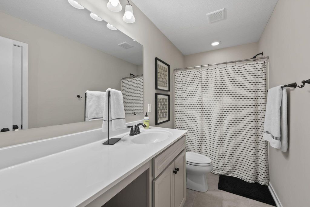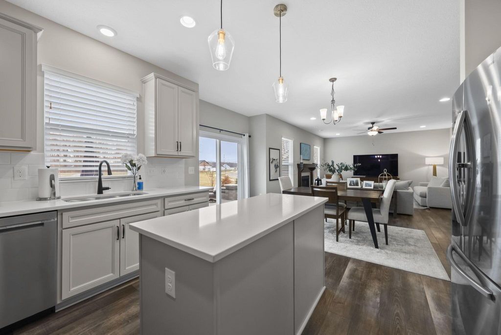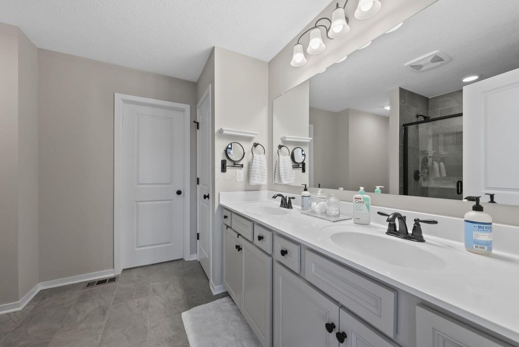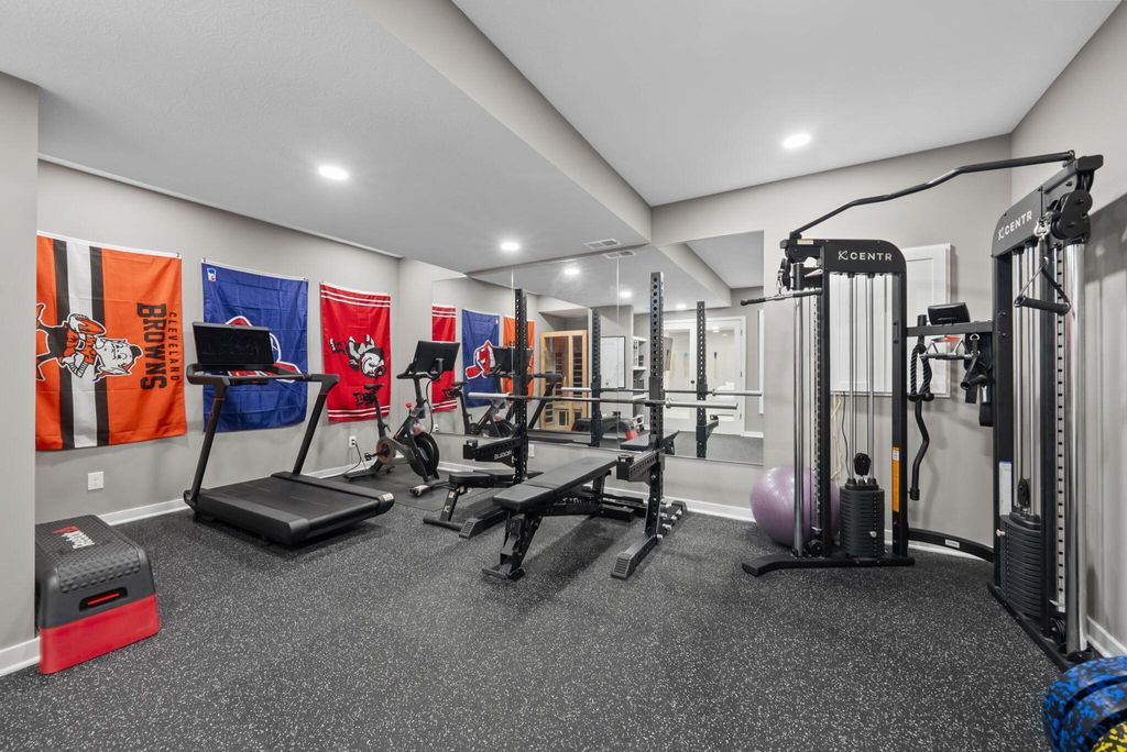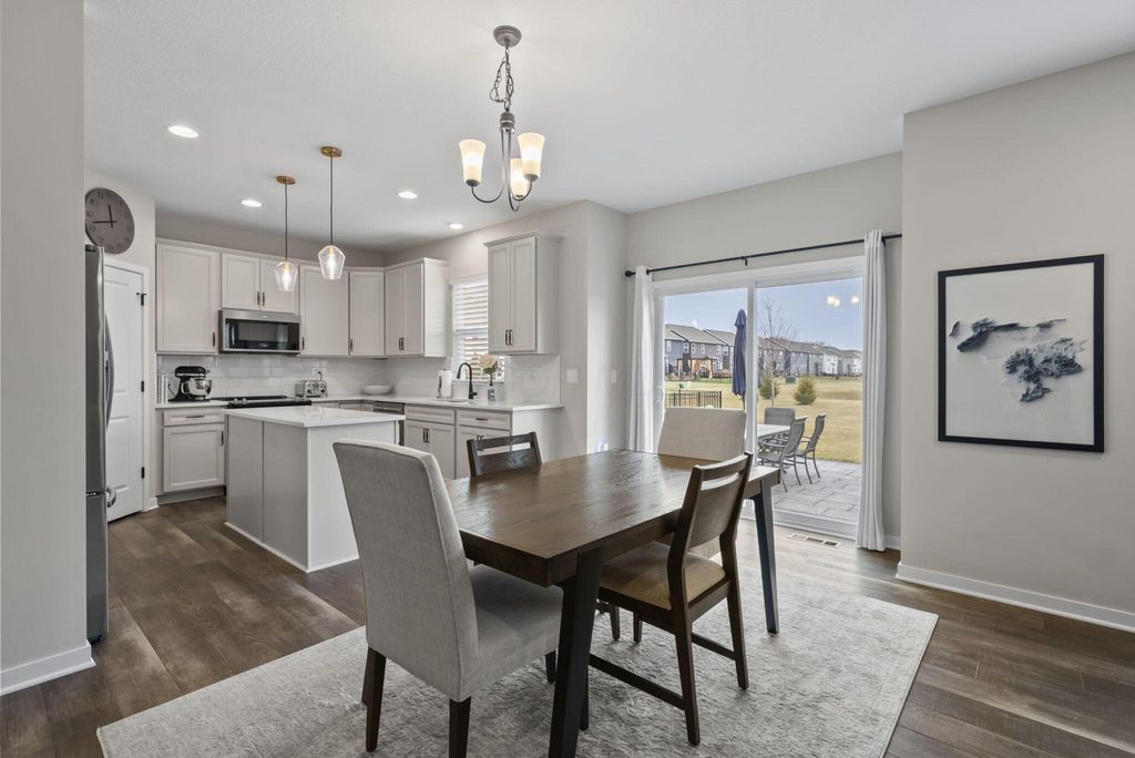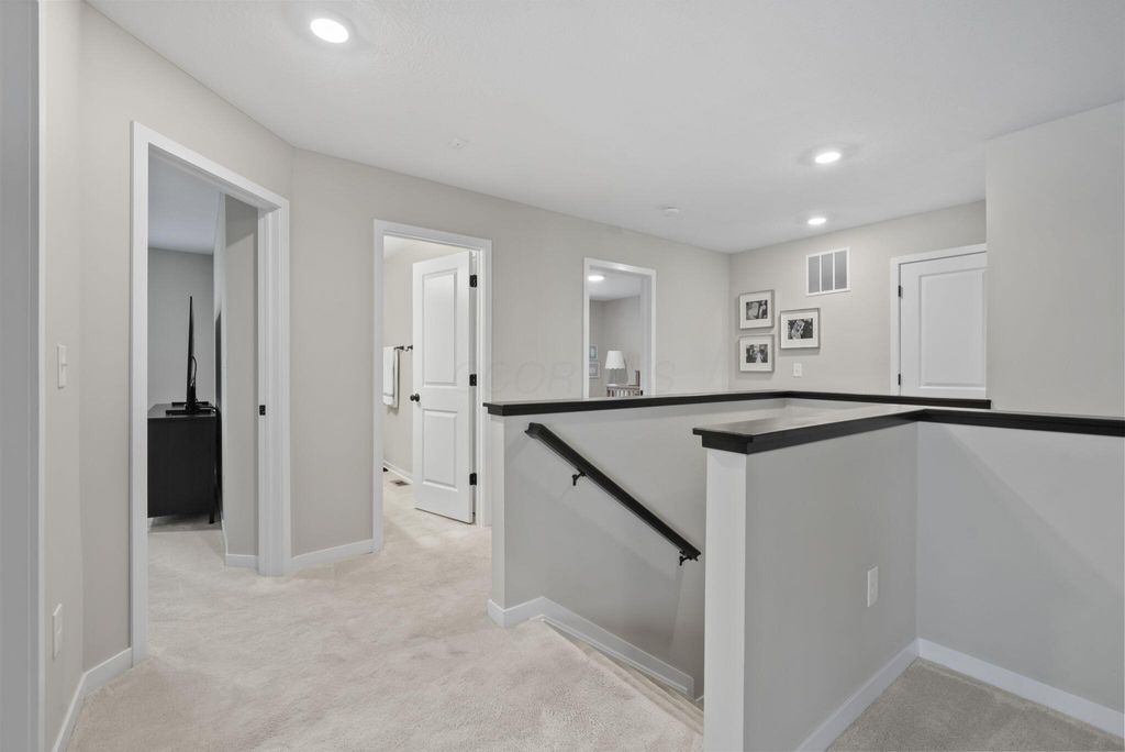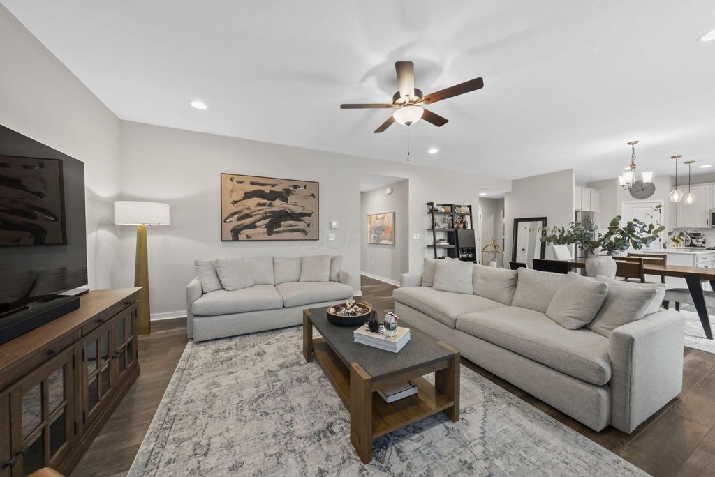 This stunning new home boasts OVER $200K IN UPGRADES in the highly desirable OLENTANGY LIBERTY SCHOOL DISTRICT! Premier CORNER LOT with extensive landscaping and view of neighborhood pond not only offers peace and tranquility, but an abundance of PRIVACY as well. Paver patio with sitting wall completes the outdoor space and offers a great environment for entertaining. MI Homes Erie Floorplan - offering OPEN CONCEPT first floor with PRIVATE OFFICE or den, and upstairs you will find a SPACIOUS LOFT, 3 large bedrooms including en-suite primary, plus generous guest bath and second floor laundry. Other notable updates include the NEWLY FINISHED BASEMENT (2025) offering an additional half bath, a luxurious backlit wet bar, a secondary living space, and last but not least - a full gym, equip with professional rubber flooring, mirrors, cubbies, glass doors and storage areas (sauna and workout equipment negotiable). Basement also offers ample storage space (not pictured). Closets have been upgraded with thoughtfully customized organizational systems. Mudroom, laundry room and garage have also been customized to maximize functionality. Neutral paint, luxury vinyl flooring, an abundance of natural light and high end fixtures/hardware selections throughout. The exterior boasts a covered front porch and a stone facade. Highly sought after neighborhood offering playground/dog park and pond to its residents, and FENCES ARE PERMITTED. If you're looking for a newer home and don't want to spend the money out of pocket (or time and energy) on the upgrades and additional improvements - this is your perfect opportunity! Nothing to do but move right in!