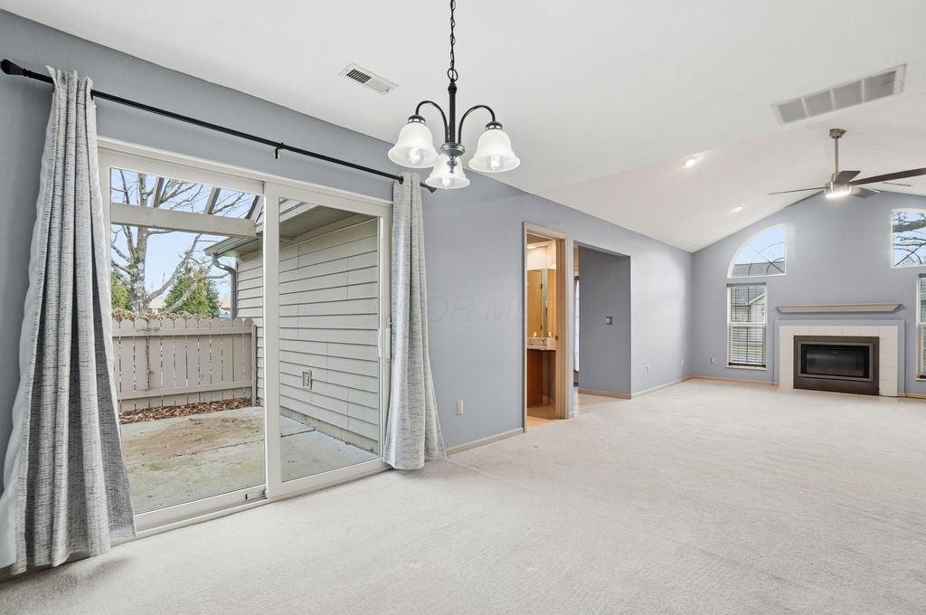 Discover your perfect retreat in this meticulously maintained two-bedroom, two-bathroom condo nestled within a charming wooded community. This hidden gem offers the ideal balance of privacy and convenience, tucked away from the hustle and bustle yet just moments from everything you need. Step inside to find a thoughtfully updated space. The heart of the home features a stunning kitchen with granite countertops, fresh backsplash, and gleaming stainless steel appliances. You'll have the flexibility to choose between gas or electric for your cooking needs. The inviting living area centers around a brand new gas fireplace, perfect for cozy evenings and entertaining guests. Recent improvements include all new windows and a replacement patio door that flood the space with natural light while enhancing energy efficiency. Fresh carpet underfoot adds warmth throughout, while one bathroom has been beautifully updated. The HVAC was replaced in 2016. As an added bonus, the association is currently replacing the roof. The surrounding neighborhood offers an unbeatable combination of tranquility and accessibility. Despite feeling worlds away in your private wooded setting, you'll enjoy easy access to Polaris shopping and dining destinations. Nature enthusiasts will appreciate the proximity to Highbanks Metro Park, located less than two miles away, offering scenic trails and outdoor recreation opportunities. This well-positioned community provides the perfect launching pad for exploring local restaurants, shopping centers, and parks, all while returning to your peaceful sanctuary each evening.
