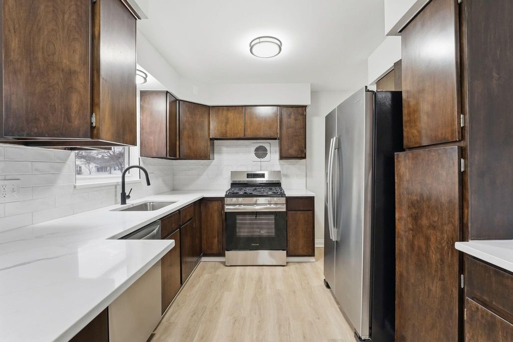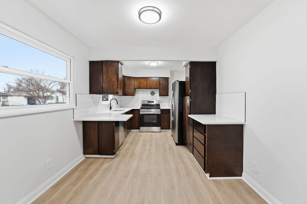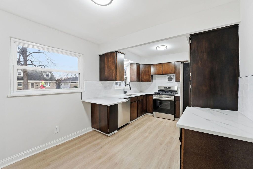 Classic Cape Cod layout with a fresh, impressive remodel throughout. Stylish flooring and streamlined fixtures create a polished feel from room to room. The kitchen delivers with quartz countertops, subway tile backsplash, and premium stainless steel appliances, blending style with everyday function. The updated bathroom continues the modern look, while the full basement adds flexibility with a second full bath. Outside, enjoy a detached garage and a fenced backyard ready for relaxing, entertaining, or pets. A move-in-ready home that balances timeless charm with today's finishes!