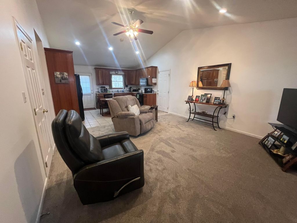 Wonderful open-style vaulted ceiling living, dining, kitchen combination ranch home on a large quite lot. Kitchen offers beautiful wood cabinetry plenty of storage, and stainless-steel appliances. Other features include Primary suite with private bath and convenient 1st floor laundry. New carpet throughout. Large open basement. This home is a must see.