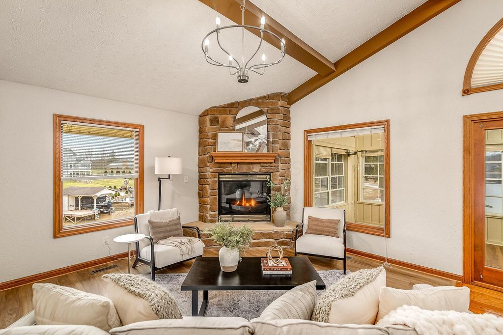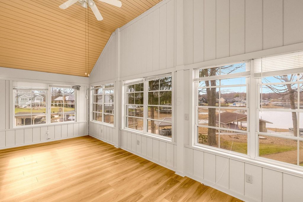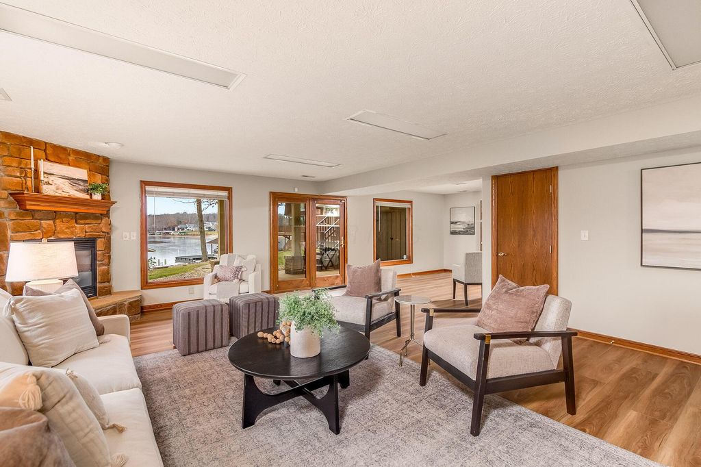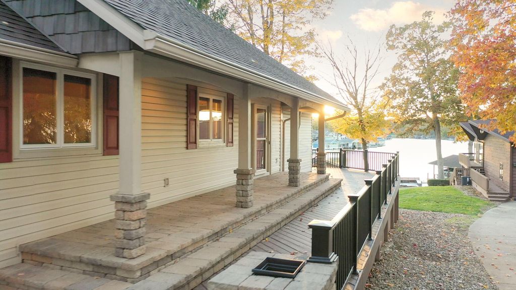 Welcome to the lakefront lifestyle in Apple Valley, Ohio! Enter the open-concept atrium kitchen, living room, and breakfast nook, and step into the sunroom with magnificent lakefront views. The cabinet-filled kitchen is a baker's delight with double ovens and generous counterspace. Experience the convenience of the entry-level primary suite with built-ins & attached full bath with jetted tub, shower, and dual sinks. Across the hall, find the half bath, 2-car garage access, and second bathroom with ensuite bath. Downstairs is the guest bedroom, office, laundry, full bath, and family room. Relax in the luxury of lake views in every cozy corner from the fireplaces, sunroom, family room, wraparound deck, dock, and lakefront patio. Conveniently located on the south side of Apple Valley near the main entrance. Enjoy all that Apple Valley has to offer, including the marina, clubhouse, beaches, pools, playground, pickleball club, and more. Don't miss the open house Saturday. 01/03 from 1-3pm