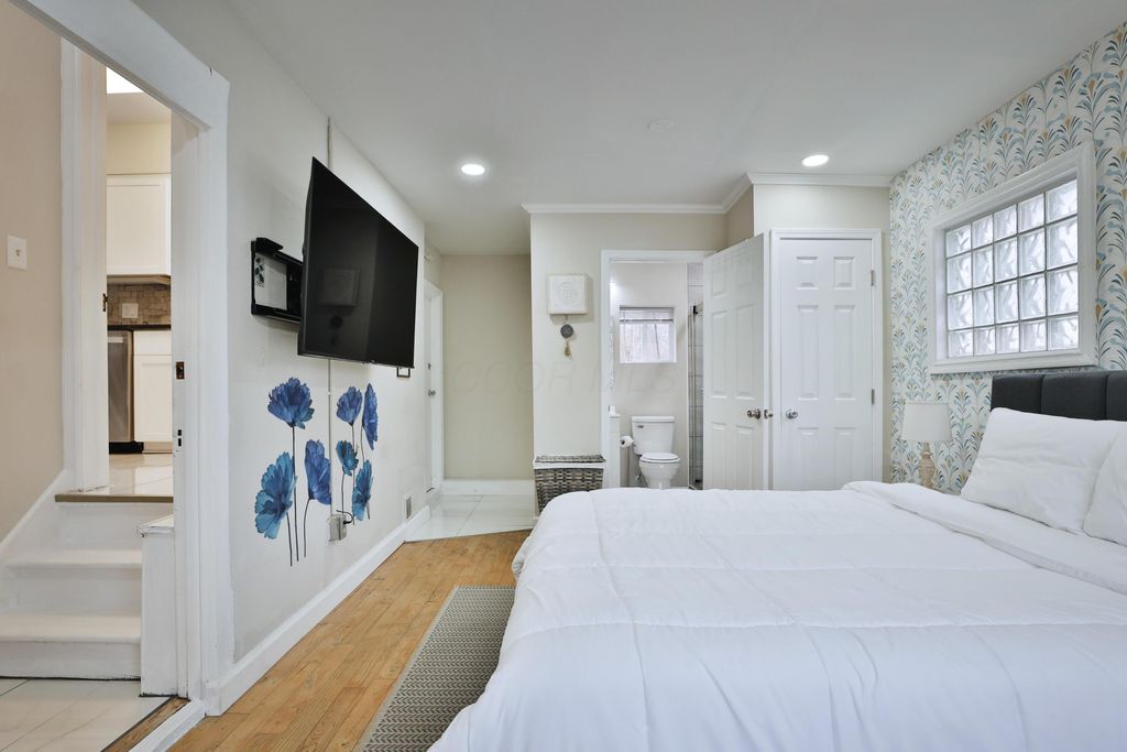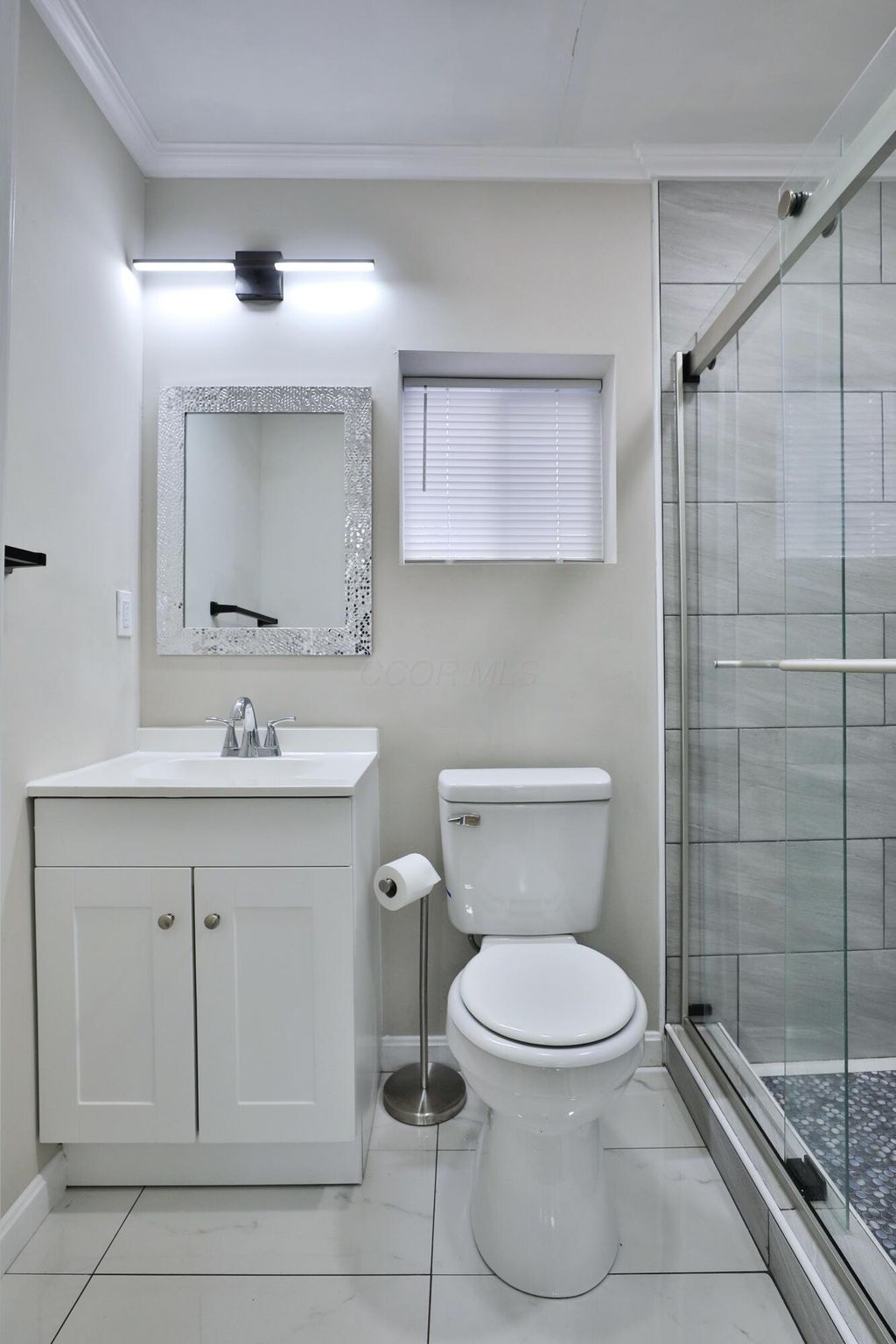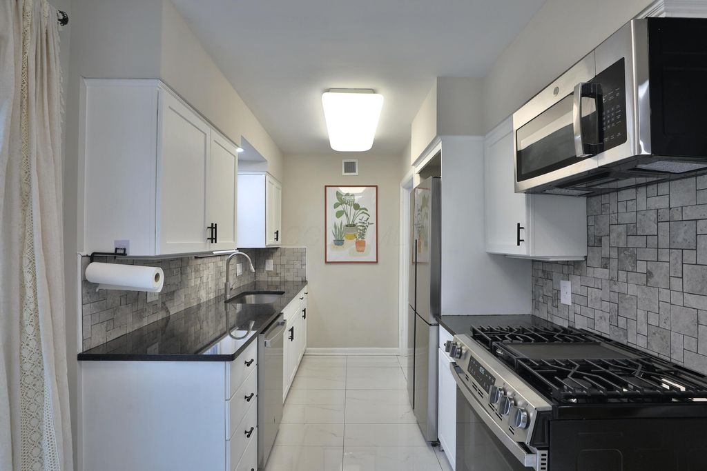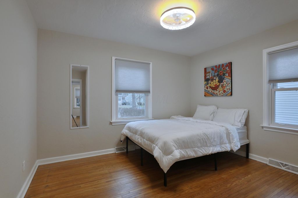 Welcome to this well-maintained Eastmoor ranch offering comfortable one-floor living and a functional layout. Situated on a quiet street, this 3-bedroom, 2-full-bath home blends classic original charm with modern updates. The main level features a bright living room with a charming bay window and built-in window seat, filling the space with natural light and creating a cozy seating nook, a dedicated dining room, and an eat-in kitchen equipped with a gas range, dishwasher, microwave, and refrigerator. The home offers comfortably sized bedrooms with smart, functional layouts, all equipped with overhead light fixtures and ceiling fans. The layout includes an updated third bedroom with its own private en-suite full bathroom, which has been newly renovated and features a tiled shower, offering flexibility as a primary suite, guest space, or home office, with direct access to the backyard. A second nicely updated full bathroom serves the remaining bedrooms and the home. The full basement provides abundant storage, laundry space, and flexible room for a future rec room, hobby area, or private retreat, ideal for a home gym, media space, or man cave. Outside, enjoy a fenced backyard with patio and a detached large storage shed that offers excellent potential as a creative space, she-shed, or yard supplies. Off-street parking for two vehicles plus additional on-street parking. Located in the desirable Eastmoor neighborhood with easy access to parks, schools, major roadways, and convenient access to public transportation. Well-suited as a comfortable starter home, an easy transition to single-floor living, or a potential investment opportunity.