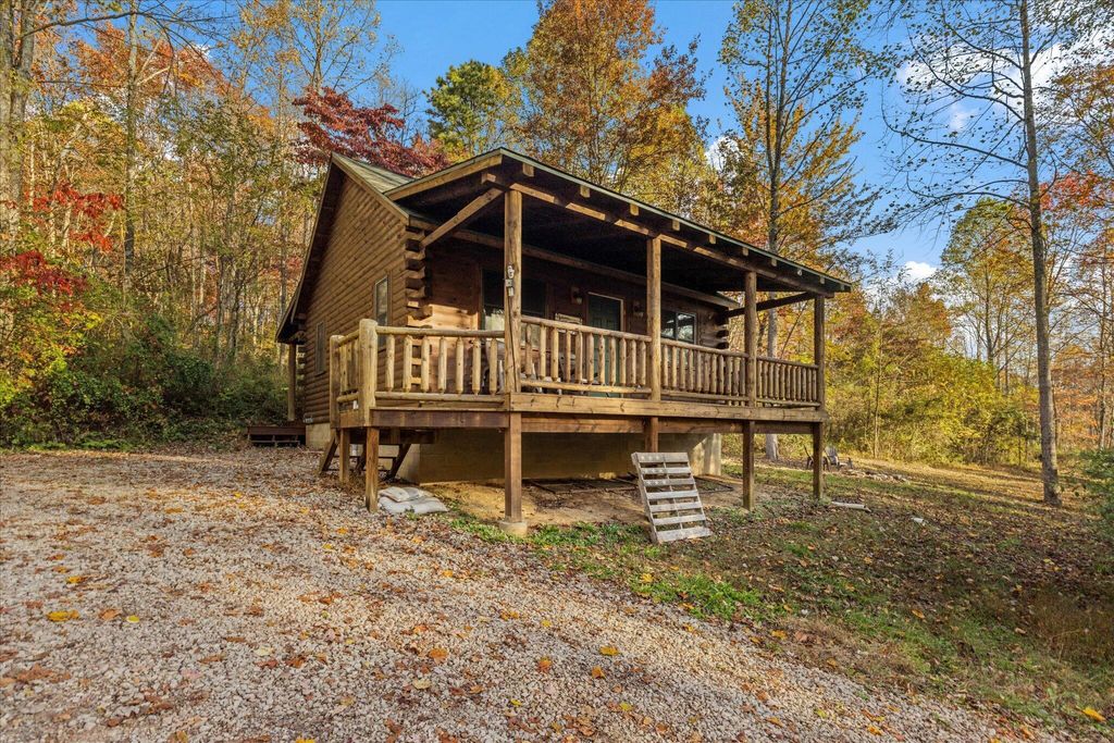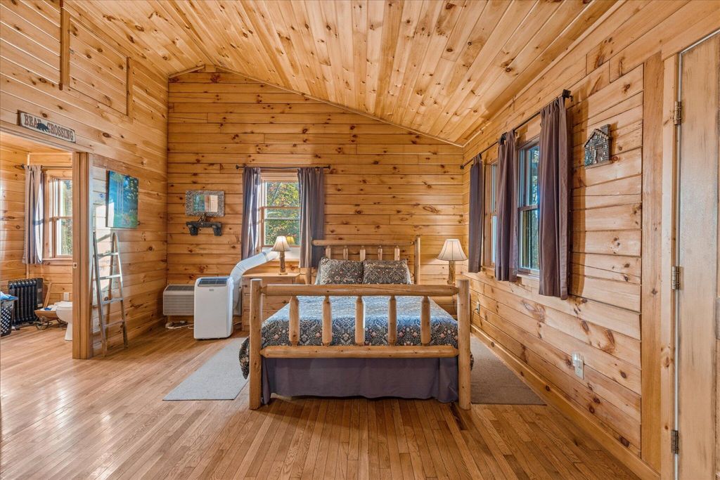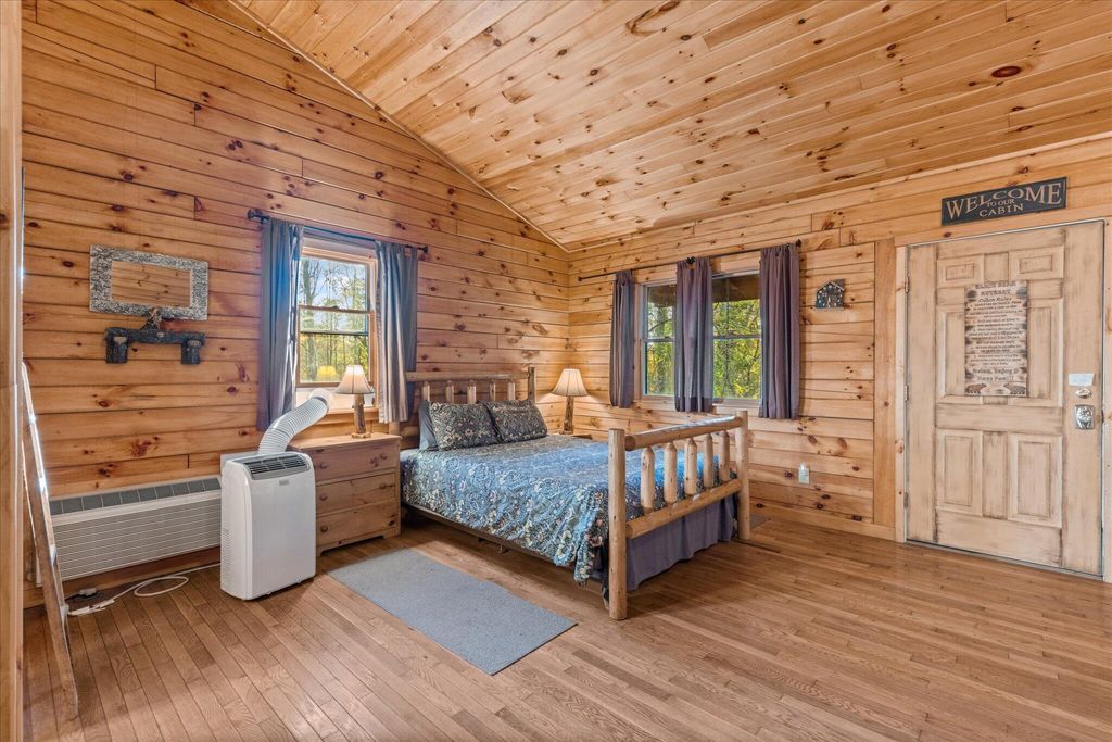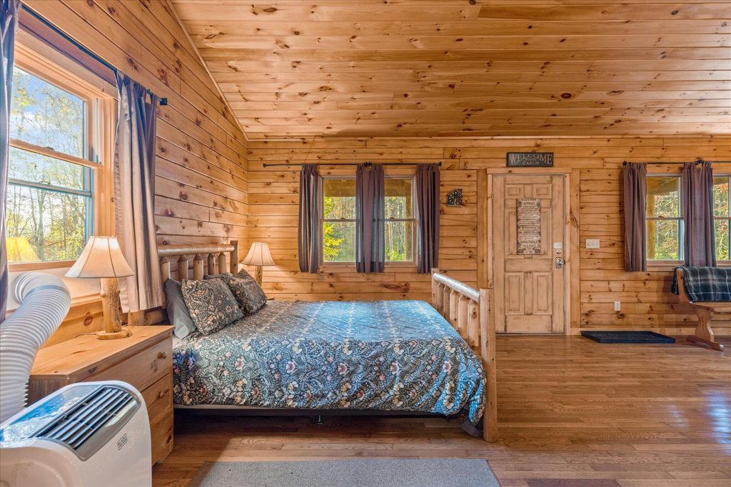 Tucked away on a tree lined drive this cabin retreat sits on 5 private acres with perfect blend of rustic and charm. The covered front porch with rocking chairs sets the scene, creating an peaceful setting. Once you step inside you are open concept living. The layout seamlessly blends the sleeping area, living space, and full kitchen into one inviting room, creating a cozy feel, with an included full bathroom. Beyond the living space, the covered back porch becomes an extension of the cabin with a hot tub and covered laundry. This classic cabin features all amenities needed to enjoy a relaxing getaway at any season.