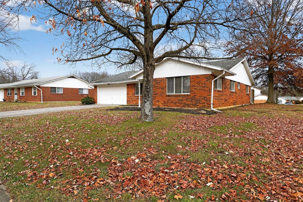 This charming brick ranch offers classic curb appeal and a spacious, well-maintained interior. Inside, you'll find fresh neutral paint, a mix of new carpet and vinyl plank flooring, and generously sized rooms throughout. The living room features a large brick fireplace and sliding glass doors that open to a partially fenced backyard with a wooden deck, perfect for relaxing or entertaining. The kitchen provides ample cabinet space, a double sink, and original wood cabinetry with a functional layout. The home includes three comfortable bedrooms with sizable closets and two full bathrooms with updated vanities. A two-car attached garage and a dedicated laundry area add everyday convenience.