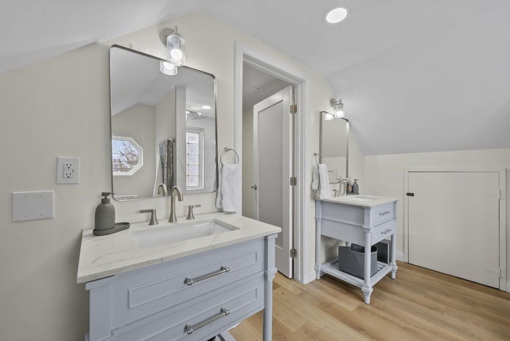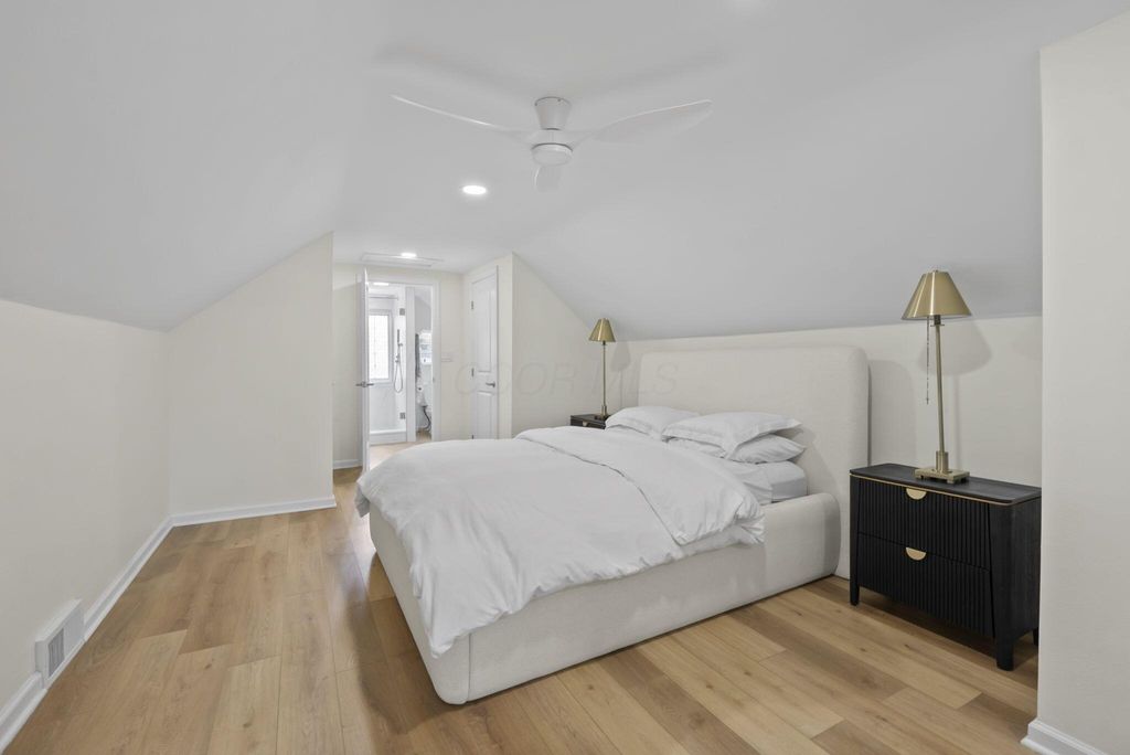 Perfectly located in north Clintonville, this beautifully updated Cape Cod is truly move-in ready! Offering 3 bedrooms and 2 full baths, the thoughtfully designed layout is perfect for entertaining and everyday living. The first floor is anchored by a light-filled family room that flows seamlessly into the stunning new kitchen/ eat-in dining area. Enjoy a dedicated laundry/mudroom with additional storage right off the back door. Two main-level bedrooms and a full, renovated bathroom provide exceptional flexibility for guests, a home office, or convenient first-floor living. Upstairs, the home truly shines with a private primary suite that feels like a true retreat. The spacious bedroom offers generous closet space and a luxurious ensuite bath with elevated finishes. The partially finished lower level provides additional living space"”perfect for a rec room, gym, or media area"”along with ample storage. Major updates include a new roof, new flooring throughout, and tastefully renovated kitchen and bathrooms. Outside, enjoy a brand-new back deck, fully fenced yard, and detached one-car garage. Just steps from Broadmeadows Park and the Olentangy Trail, and perfectly positioned between Old Worthington and Clintonville, this home offers the very best of Columbus living.