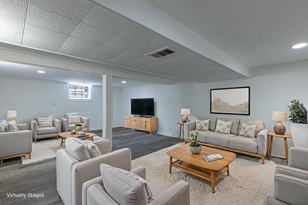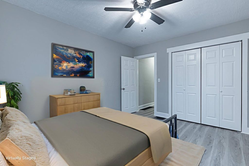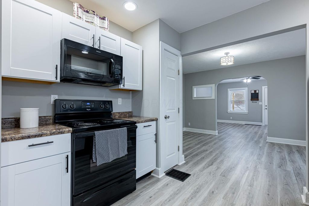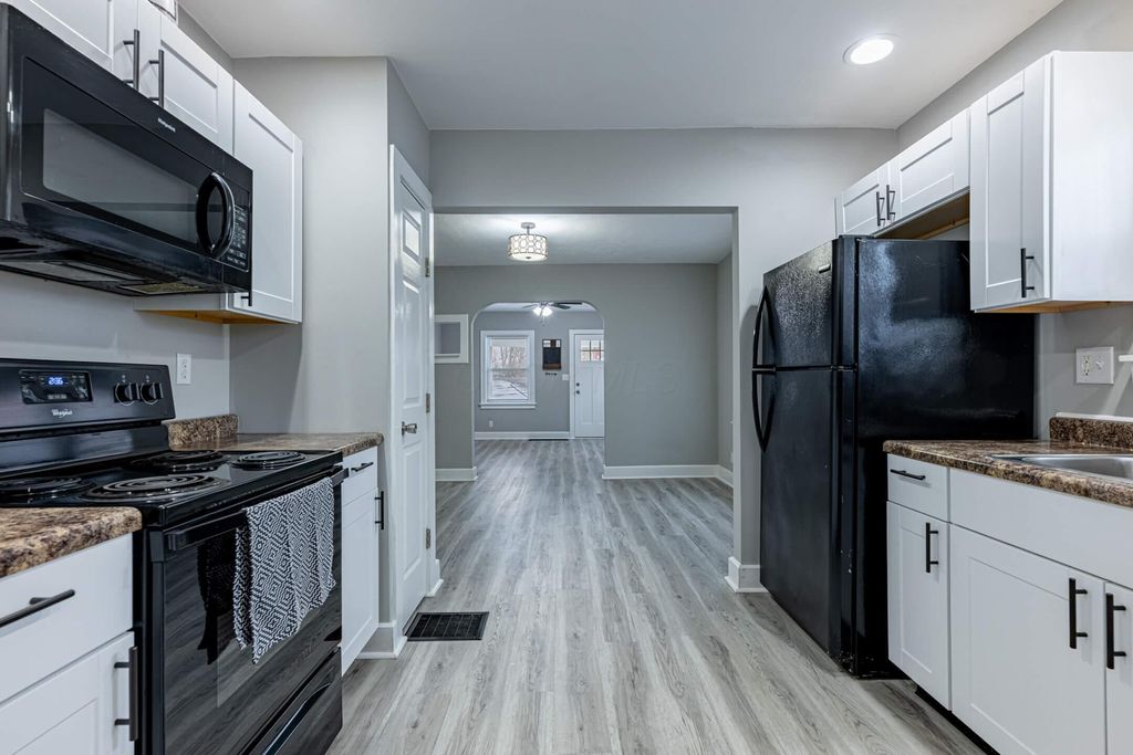 419 Bellevue Ave, Springfield, OH is a completely remodeled home located in a quiet neighborhood on the east side of Springfield. The property offers two bedrooms and one full bathroom on the main level. The kitchen has been fully renovated with new cabinets and new appliances. The bathroom has also been completely updated and features a shower with a custom tile surround. Recent mechanical updates include a new water heater as well as a new furnace and central air conditioner. Many electrical upgrades have been completed, including new switches and outlets, and new plumbing fixtures have been installed. The full finished basement provides additional living space, including a potential third bedroom, a large family room, and a utility room. Exterior features include upgraded windows, vinyl siding, and a large covered patio in the backyard suitable for outdoor furniture. Downspouts and extensions have been installed to improve drainage. Interior and exterior finishes have been updated with neutral paint colors. The property is conveniently located near shopping and dining along Main Street and offers easy access to major routes leading to Columbus.