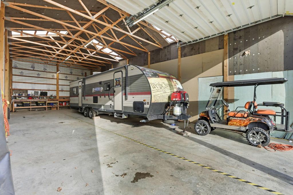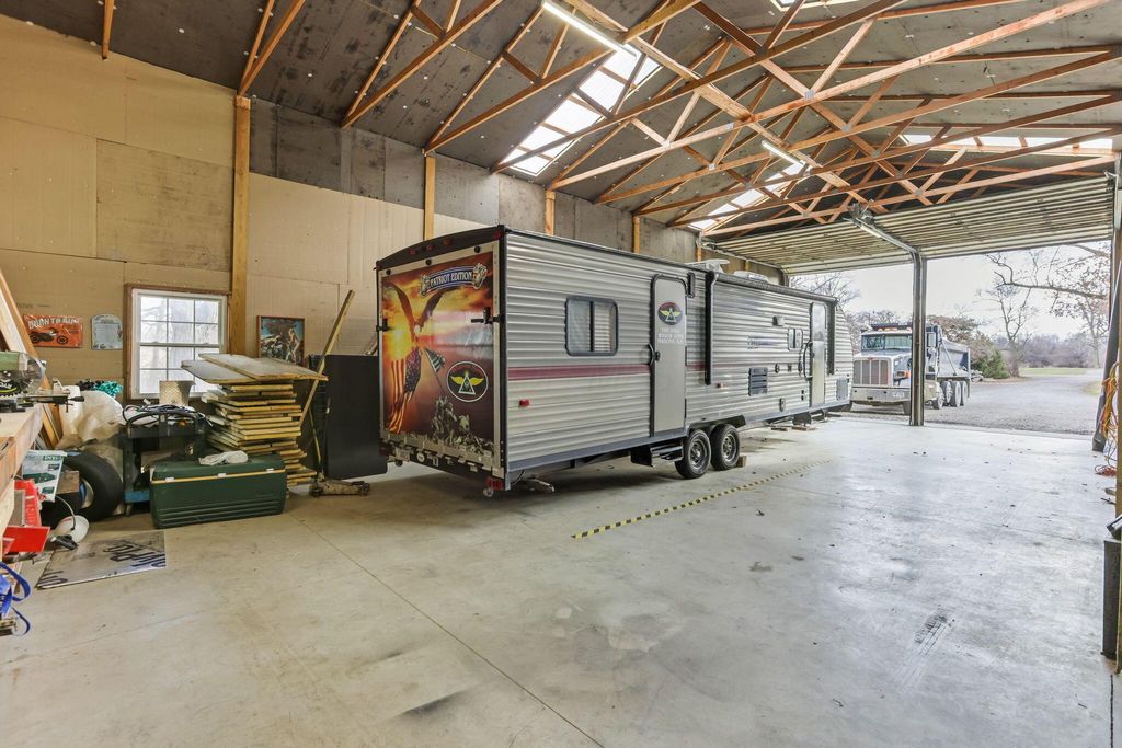 Experience the rare opportunity to enjoy country-style space within the city, offering exceptional flexibility for both everyday living and hobbies. Whether you need room to spread out or space for vehicles, equipment, or projects, this property delivers unmatched versatility. The home offers over 2,700 square feet of finished living space, thoughtfully designed for comfort and entertaining. Highlights include a cozy living room with a wood-burning fireplace, a primary bedroom with walk-out access to a large concrete patio, and a spacious lower-level rec room complete with a wet bar, fireplace, and plenty of room for a pool table. The kitchen is beautifully appointed with custom oak cabinetry, granite countertops, and stainless appliances. Additional features include gleaming bamboo hardwood floors, updated bathrooms, and a large laundry room with ample space to spread out. The heated attached garage provides abundant storage and year-round functionality. A hot water recirculation system ensures consistent and readily available hot water. Numerous major updates have already been completed, offering peace of mind for the next owner. Improvements include a new A/C, front entry door, asphalt driveway, and all-new water lines, along with replacement windows and gutters, a well installed in 2020, and a water filtration system. A standout feature is the 44x56 three-bay barn, fully insulated and heated by both a gas furnace and wood-burning stove. With two 14-foot doors and openers, it's ideal for storing large boats, RVs, or recreational toys. A zoning variance allows the option to store multiple construction vehicles, making this an exceptional opportunity for contractors or business owners.