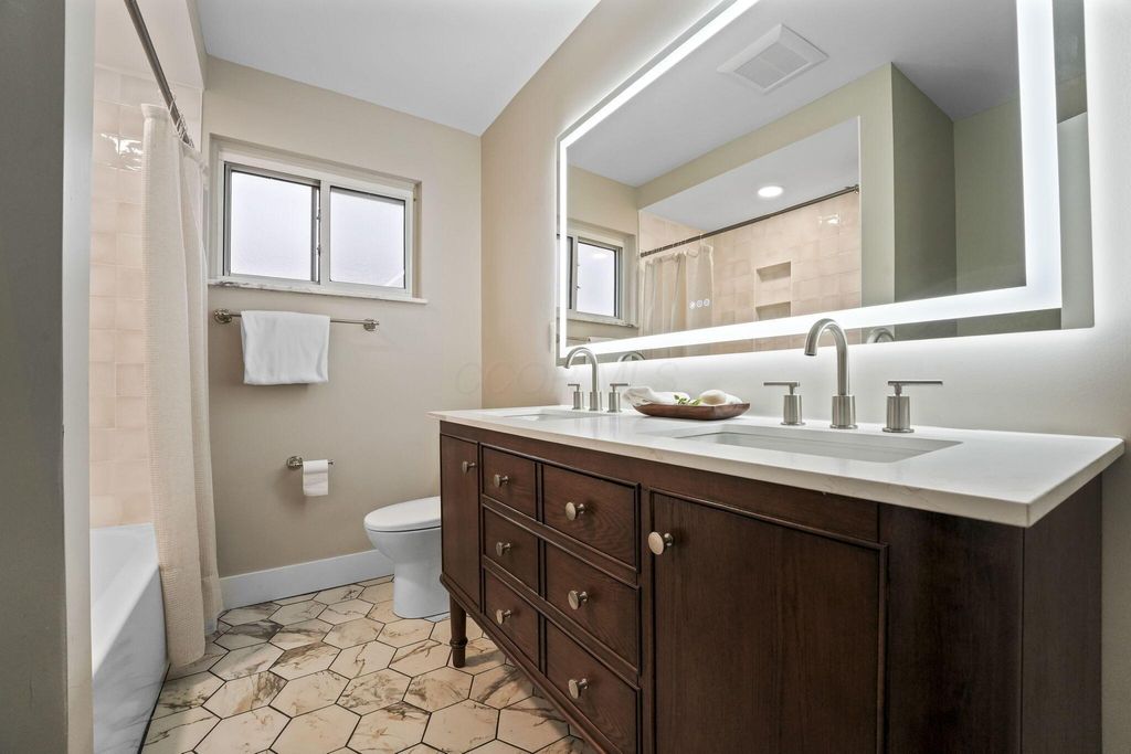 Open House Saturday from 12 noon to 2 PM Exceptional Upper Arlington Ranch Offering Elevated Modern Living. Set in one of Upper Arlington's most sought-after locations, this fully reimagined luxury ranch offers approximately 4,600 square feet of effortless sophistication and modern comfort. Soaring ceilings, expansive windows, and an open concept. This light-filled layout creates a sense of calm and grandeur the moment you step inside. Perfectly balancing refined design with everyday comfort. At the heart of the home is the stunning chef's kitchen with custom cabinetry, premium appliances, oversized island, and an additional working kitchen. Ideal for intimate evenings or unforgettable gatherings. The primary suite is a true retreat, featuring a spa-inspired bath and an exceptional walk-in closet. Thoughtfully designed secondary bedrooms includes a guest suite and hall bath with a double vanity. Additionally, this home offers a private office, in-home gym space, first floor laundry room and a deep 2 car garage. The flexible living spaces allow the home to adapt beautifully to any lifestyle. The lower level features a rare secondary full kitchen and an additional bedroom with an egress window and beautiful full bath which provides unmatched versatility for guests, multi-generational living, or private work-from-home needs with a massive recreation room. Outdoors there is a spacious covered patio with a built-in outdoor kitchen and a large, private backyard, perfect for relaxation, entertaining, and endless possibilities. This home shows even better in person. See for yourself the high-end finishes and quality throughout. Set up your showings today. Located within the coveted Upper Arlington School District and minutes from parks, dining, and downtown Columbus. Showings start Thursday Jan 8th at 3 PM.
