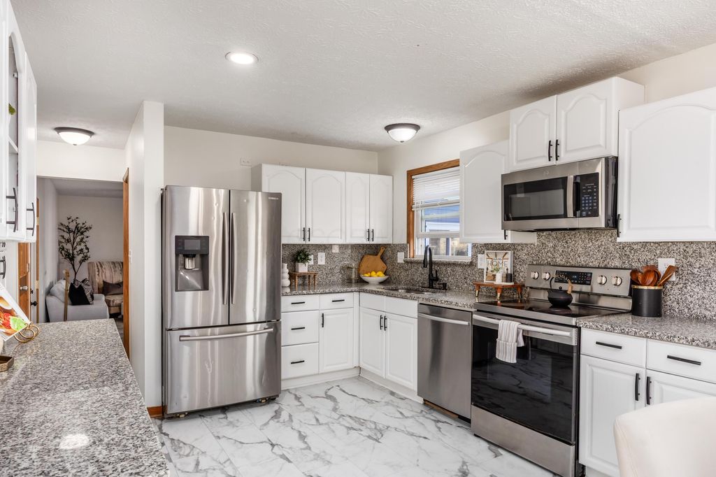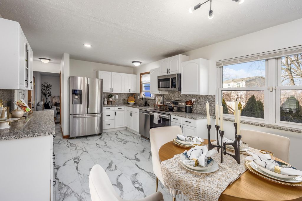 This beautiful home features an inviting living room, an updated kitchen with ceramic tile flooring and stainless steel appliances, and a separate dining area perfect for gatherings. A cozy bonus room offers the ideal space for family time, while the three-season room allows you to enjoy fresh air year-round overlooking the amazing fenced backyard"”perfect for entertaining and outdoor fun. Luxury vinyl plank (LVT) flooring runs throughout the home. With four bedrooms, this property is ideal for a growing or large family and includes 2.5 bathrooms for added convenience. The finished lower level provides excellent additional recreational space, making this home both functional and welcoming.