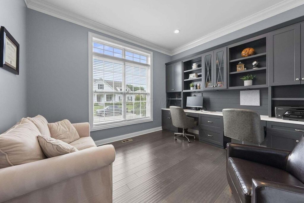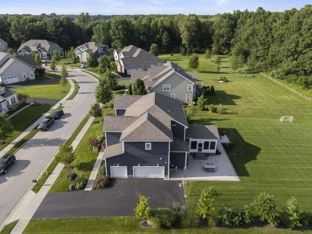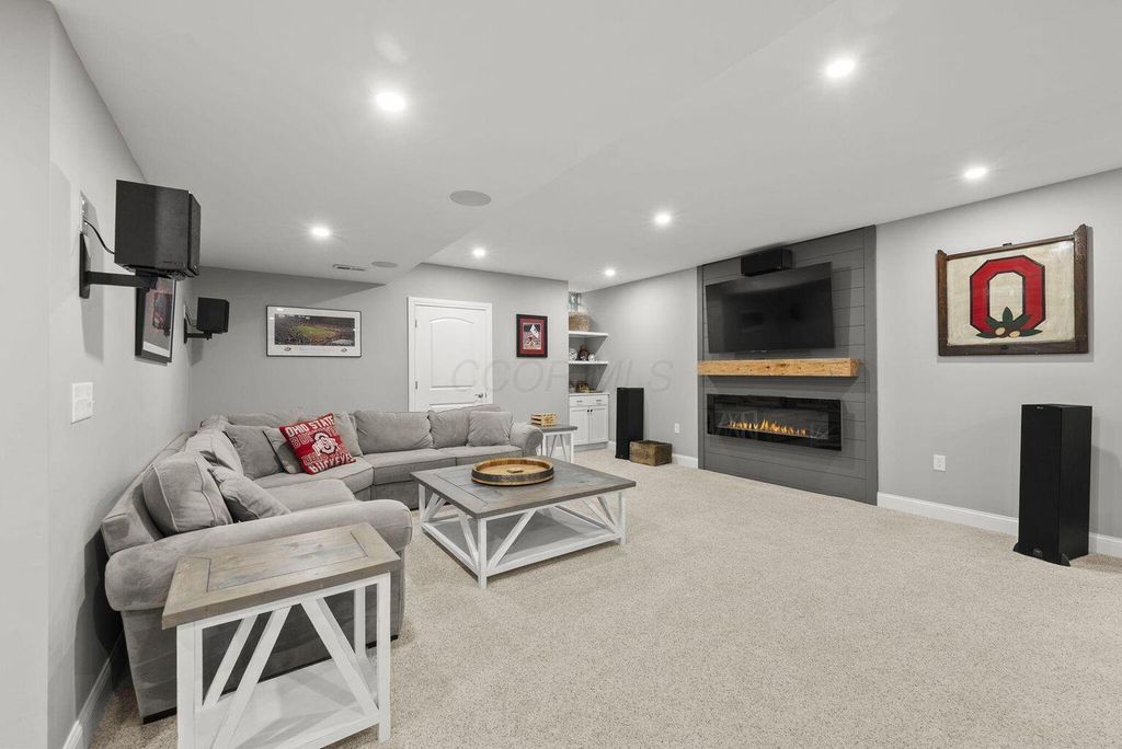 Immaculate home with over 1,800 sq. ft. of finished basement living space! Enjoy a 16x16 screened porch with privacy blinds, wrap-around patio with built-in firepit, ample seating, and natural gas hookups for grill & fire table. Extended asphalt driveway with basketball hoop, irrigation system & electric fence. Basement includes bedroom with egress, full bath, wet bar, surround sound & custom woodwork. Home office with built-ins & 2 desks. Recent updates: water heaters ('22 & '23), heated garage with epoxy floors, built-in cubbies, new mechanicals, water softener & reverse osmosis system. Move-in ready!