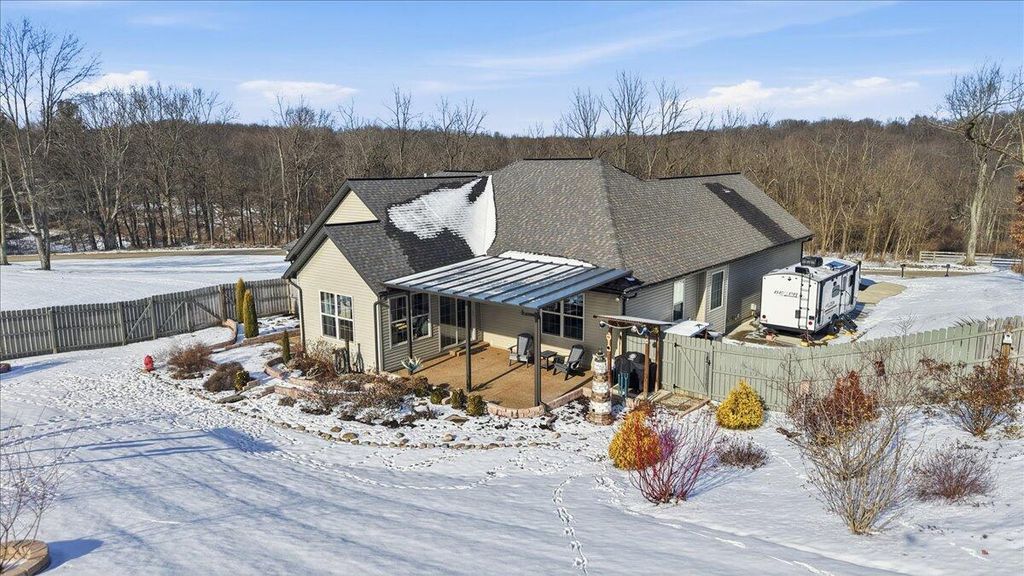 Welcome to a peaceful setting just minutes from Gambier and Mount Vernon. This sprawling immaculate ranch on country setting offers 3 bedrooms. 2 full baths and a half bath, den, sun room, great room with stone fireplace, open kitchen with eat area, island and large pantry, full basement and much more ! Finishes are gorgeous !! The rear patio off sun room is perfect to start or end day by ! Patio has awning. You will fall in love ! Schlabach built home