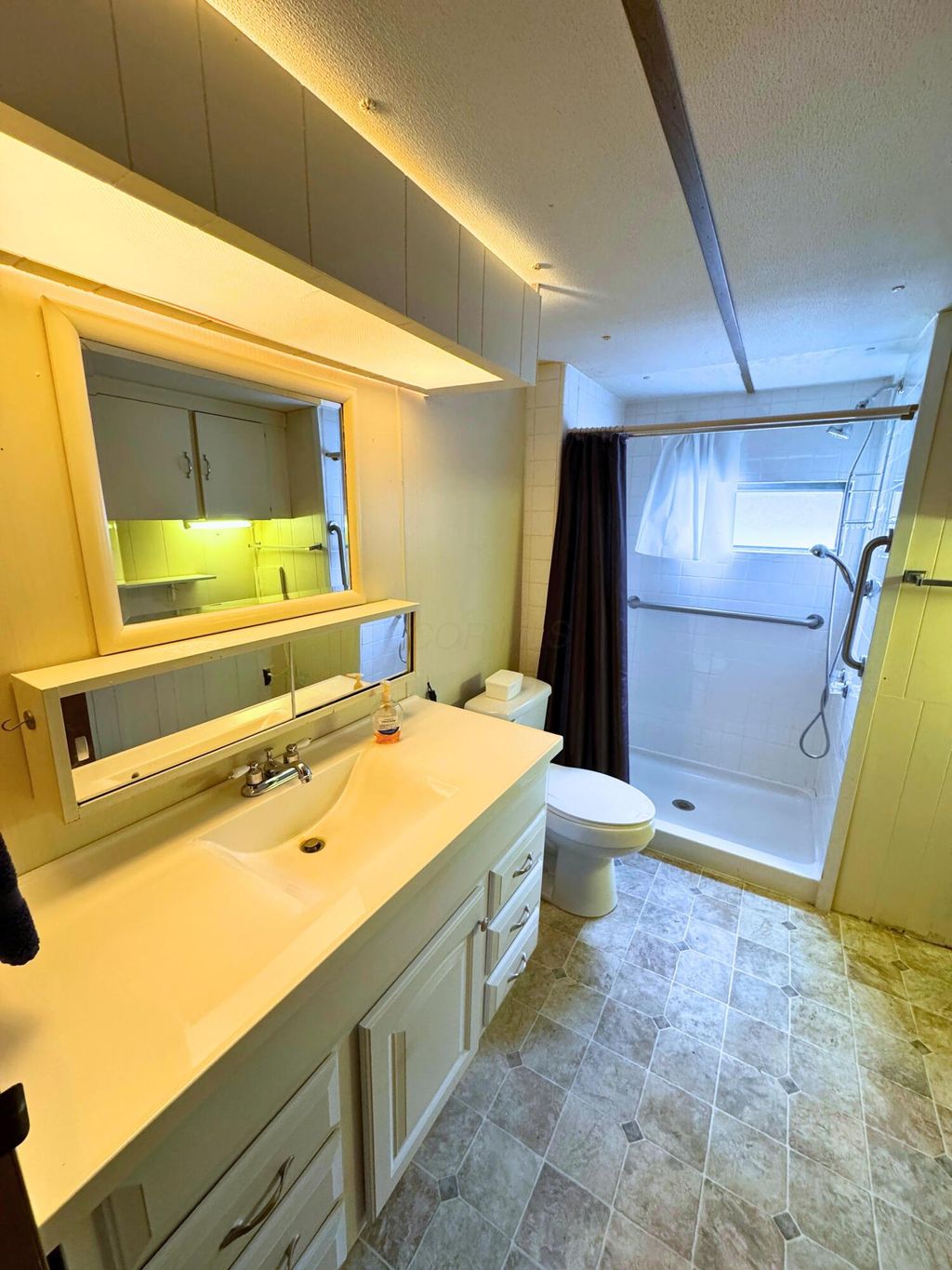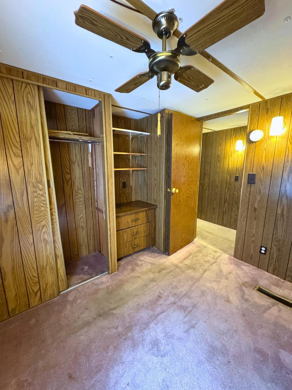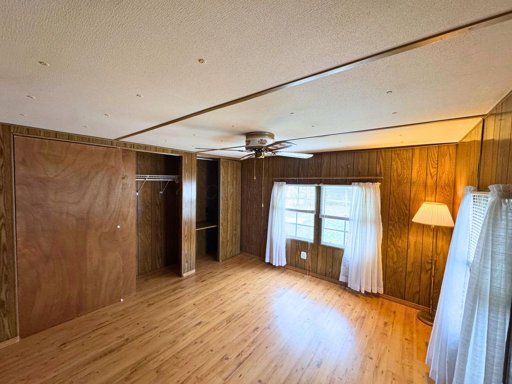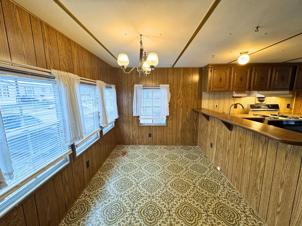 One-owner 1973 Magna mobile home (65' x 14', approx. 910 sq ft) in well-maintained condition with excellent storage throughout. Home offers 2 bedrooms and 1 updated full bathroom with walk-in shower and laundry nook. Primary bedroom features built-in shelving and TV stand. Second bedroom (approx. 9'7'' x 7'', excluding closet wall) includes built-in drawers, shelving, and closet. Living room has windows on both sides of the home for natural light. Additional features include double-pane storm-insulated windows, bar area with extra sink, and original owner manuals and maintenance records. Exterior includes covered front porch with two staircases and gates, two storage sheds, storage under porch with hinged access, and two-car driveway. True Character Upgrade - the community pool!