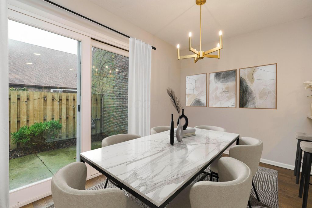 OPEN SATURDAY 1-3pm - This STUNNING CONDO is tucked away on a cul-de-sac in the UPPER ARLINGTON SCHOOL DISTRICT and offers 4 bedrooms (including a first floor bedroom/office) & 2 full baths, a FINISHED LOWER LEVEL and a DETACHED ONE-CAR GARAGE. RECENT UPDATES INCLUDE: All new windows, new water heater, new carpet upstairs - all in 2025. Radon system installed in 2024 and basement was waterproofed in 2021. COMPLETE RENOVATION IN 2018 INCLUDED MOST EVERYTHING. The kitchen features quartz countertops, white cabinetry, & stainless appliances. The first floor has beautiful engineered wood floors. The lighting is fantastic; including recessed lighting in the kitchen, dining, & living rooms. Nice and bright interior, a cozy wood log burning fireplace, & a massive lower level featuring a large finished area, mechanicals room, and separate storage area with additional closet storage under the stairwell. The PRIVATE FENCED PATIO with shed storage shed is just off the dining area. Detached one car garage is right around the corner behind the unit. Some extra off street spaces and plenty of spaces right out your front door. Close to great restaurants, shopping, Riverside Hospital, OSU and more.