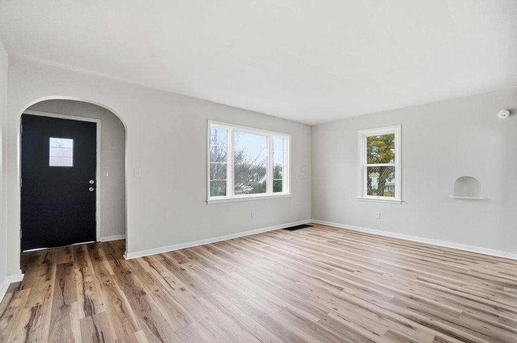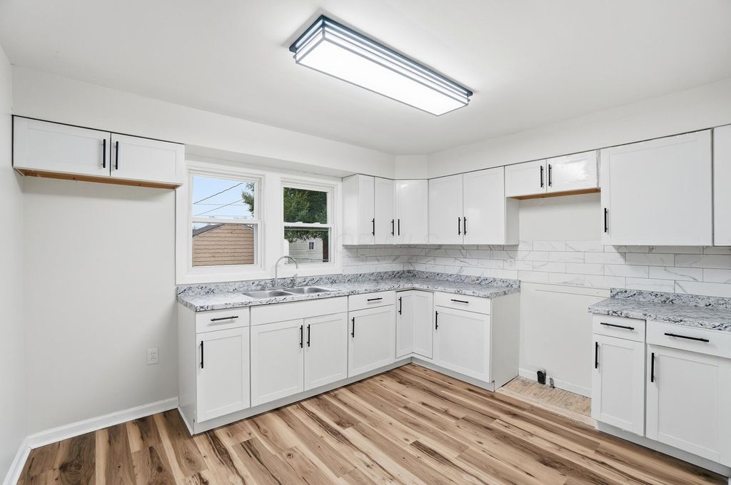 Welcome home to this beautifully refreshed Cape Cod offering 3 bedrooms and 1 full bath, plus a full basement with endless storage space. From the moment you step inside, you'll appreciate the fresh, clean feel created by all new flooring, new windows, and stylish new light fixtures throughout. The brand new kitchen is a true highlight, featuring new cabinetry and stainless steel appliances to be delivered soon making it perfect for everyday living and entertaining alike. The updated bathroom adds to the home's modern yet cozy charm. Upstairs, the private third bedroom offers a walk-in closet and a comfortable retreat. Outside, you'll find a large 1 car detached garage with convenient alley access, an additional storage shed, and a garage scheduled to be freshly painted, weather permitting. This turn-key home is warm, welcoming, and ready for you to move right in and make it your own.
