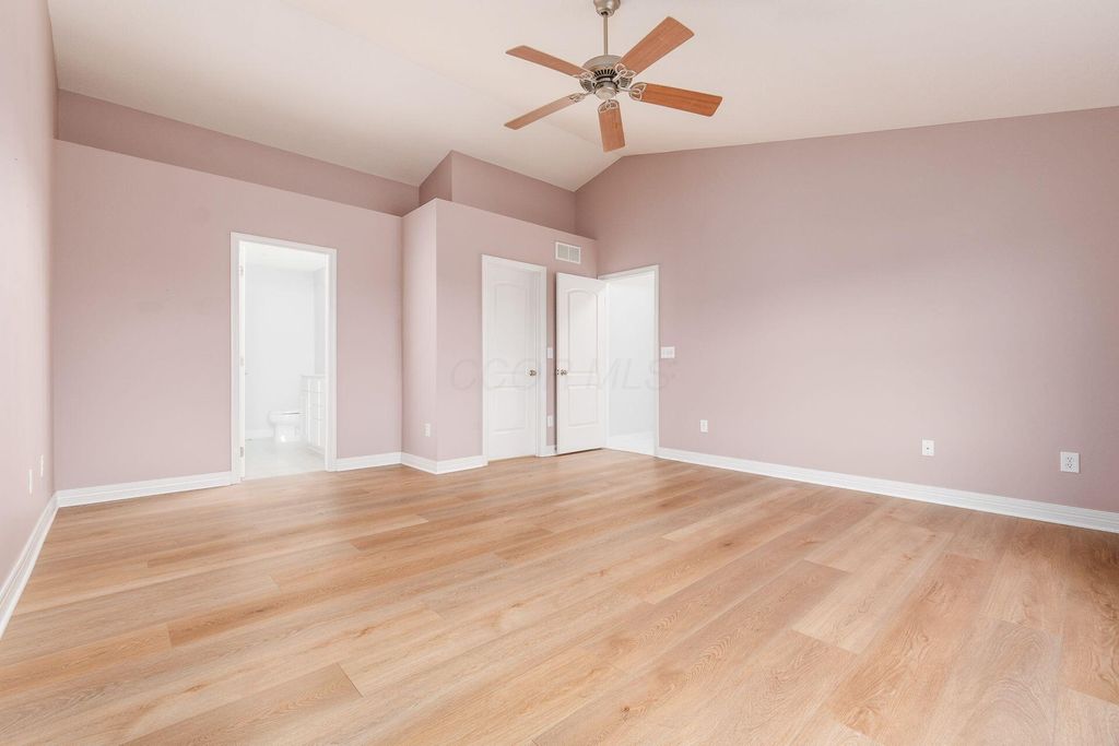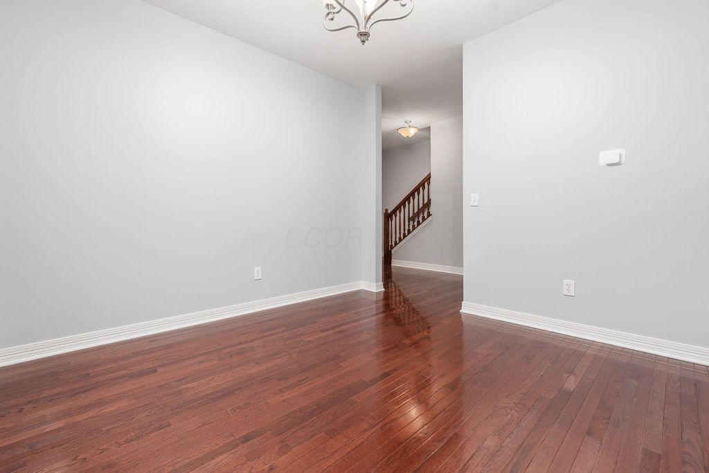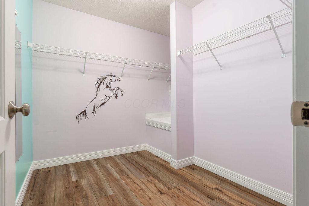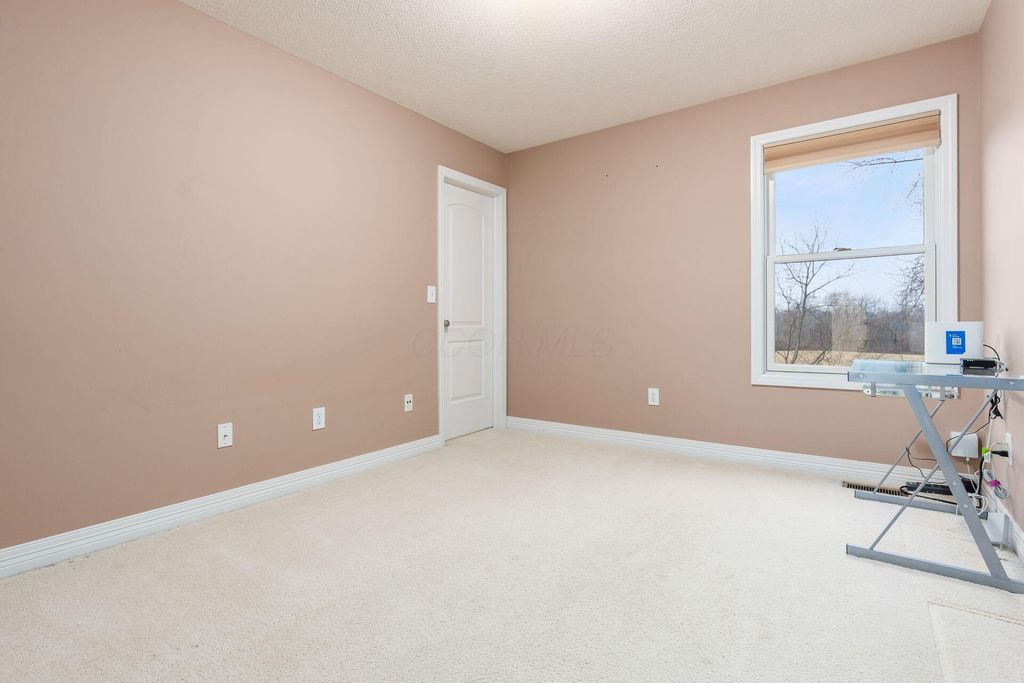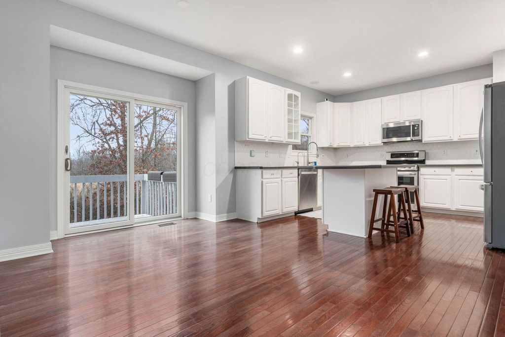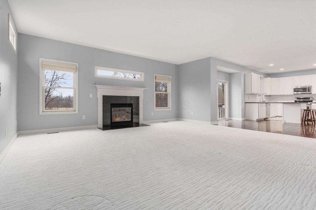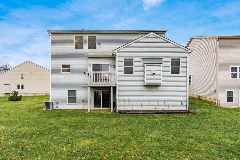 Welcome to this beautifully maintained 4-bedroom, 2.5-bath home nestled on a large corner lot that backs up to a peaceful, tree-lined meadow, offering both space and privacy in a sought-after neighborhood within the Gahanna School District. The main level features a large open floor plan with a bright and inviting kitchen equipped with stainless steel appliances, seamlessly connected to the dining area, office space, and living room, perfect for both everyday living and entertaining. Step out onto the deck overlooking the serene meadow and enjoy your morning coffee or evening sunset in a tranquil setting. Upstairs, you'll find a spacious primary suite with a large en suite bath and ample walk-in closet space. The second-floor laundry adds convenience to your daily routine. Every bedroom features a walk-in closet! The home also includes a 2-car garage and a large unfinished walkout basement with a rough-in for a full bath, offering plenty of opportunity to create additional living space tailored to your needs. Don't miss this rare opportunity to own a private retreat with modern conveniences and room to grow!