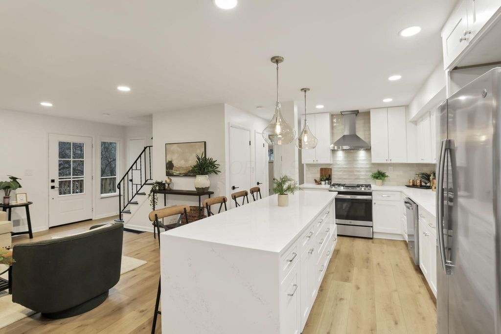 Stunning Clintonville home tucked away on a quiet street, featuring a huge front yard and a welcoming presence that sets the tone from the moment you arrive. The main floor offers a thoughtful and updated layout with durable LVP flooring, two main-floor bedrooms"”one ideal for a den or home office"”and a convenient half bath. The beautifully updated kitchen anchors the living space with designer finishes, a gas range, and stainless steel appliances, creating an inviting space for everyday living and entertaining. The finished basement adds valuable additional living space with a versatile rec room and office space. Upstairs, hardwood floors create a warm and inviting atmosphere, highlighted by the private primary suite with vaulted ceilings and an ensuite bath. Two full bathrooms on this level provide comfort and convenience, and all bathrooms throughout the home were updated in 2023. Extensive interior improvements completed in 2023 include the remodeled kitchen, updated flooring and refinished hardwoods, new windows, and the finished basement, along with a new hot water tank installed in 2025. Outside, the property sits on an impressive 210-foot deep lot with mature landscaping and a fully fenced yard, perfect for outdoor enjoyment. A large two-car garage with an additional carport provides ample parking and storage, while the front deck offers a welcoming spot to relax. Exterior improvements completed in 2023 include the roof, windows, garage door, and exterior doors. Ideally located near a park and with easy freeway access, this home delivers space, updates, and a highly desirable Clintonville setting.