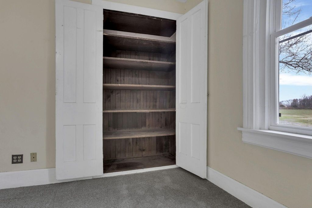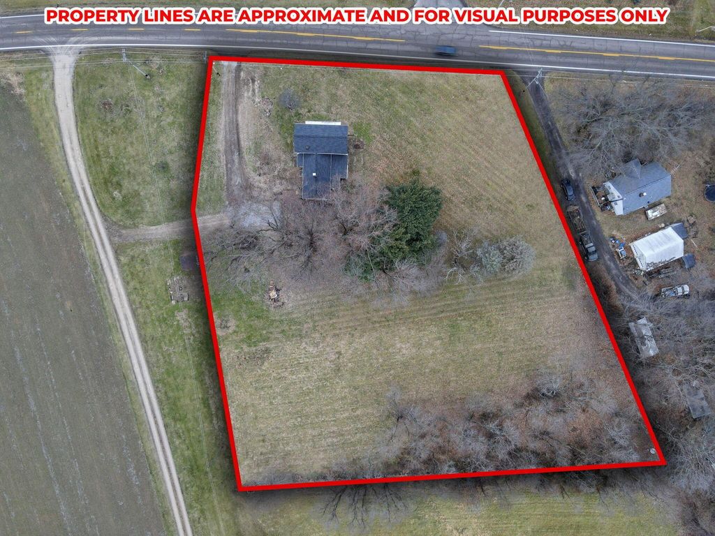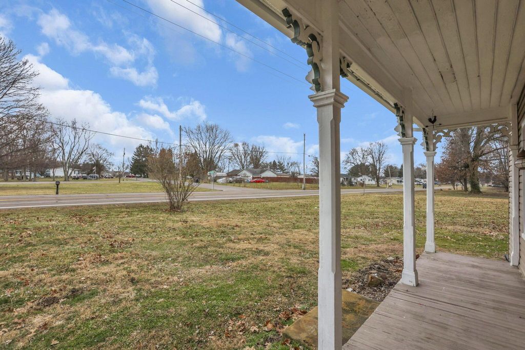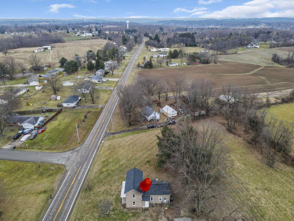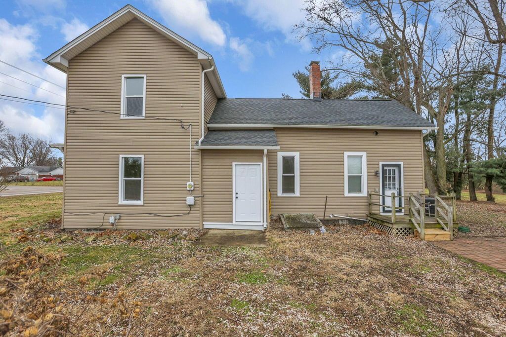 Step into timeless charm with modern peace of mind in this classic 1900 farmhouse, now ready for its next owner. Situated on a picturesque 2-acre lot, this 3-bedroom, 2-full-bath home blends historic character with plenty of updates throughout. A welcoming full front porch sets the tone, while large windows and high ceilings in the living spaces fill the interior with natural light. The main floor features new carpet, a spacious bedroom, and a brand-new full bathroom complete with washer and dryer hookup. Upstairs offers additional bedrooms and a walk-in attic providing extra storage. Major updates include a new roof and gutters, new windows, new water heater, updated 200-amp electrical panel, newer furnace and A/C, new well pump, new carpet, and new stainless steel kitchen appliances, offering comfort and confidence for years to come. A full basement adds even more storage and functionality. Outside, enjoy the nostalgia and serenity of the gorgeous lot with open green space, mature trees, and even a charming wooden tree house! Perfect for relaxing, entertaining, or simply soaking in the countryside setting. A rare opportunity to own a modernized farmhouse with space, charm, and character! Great for owner occupants or investors!