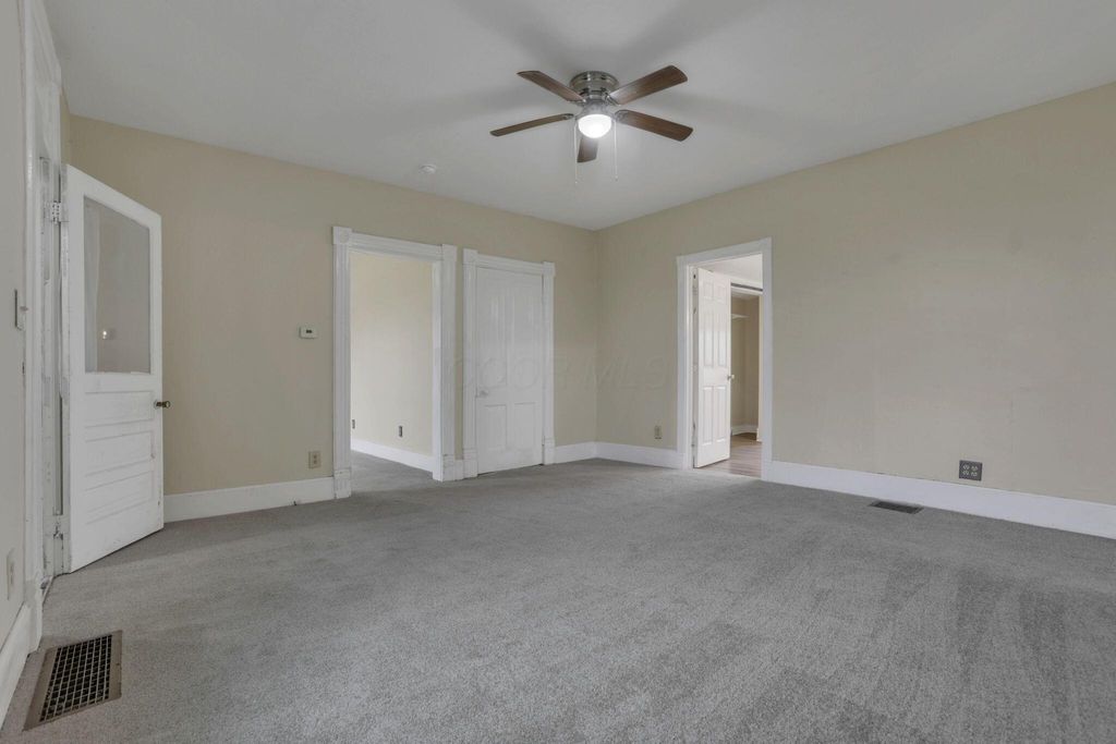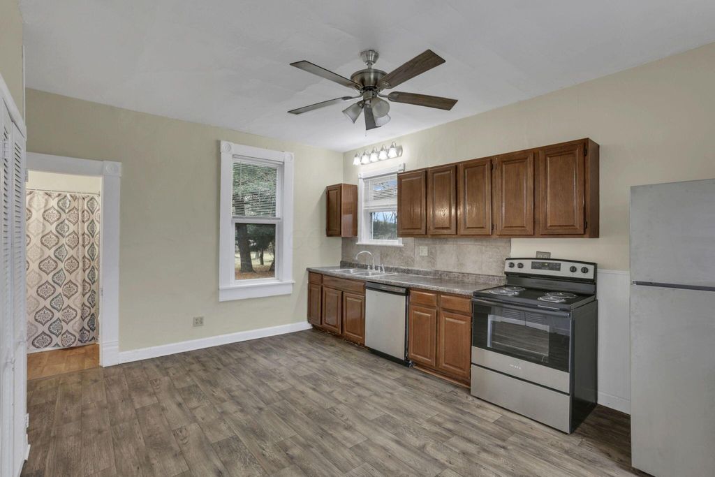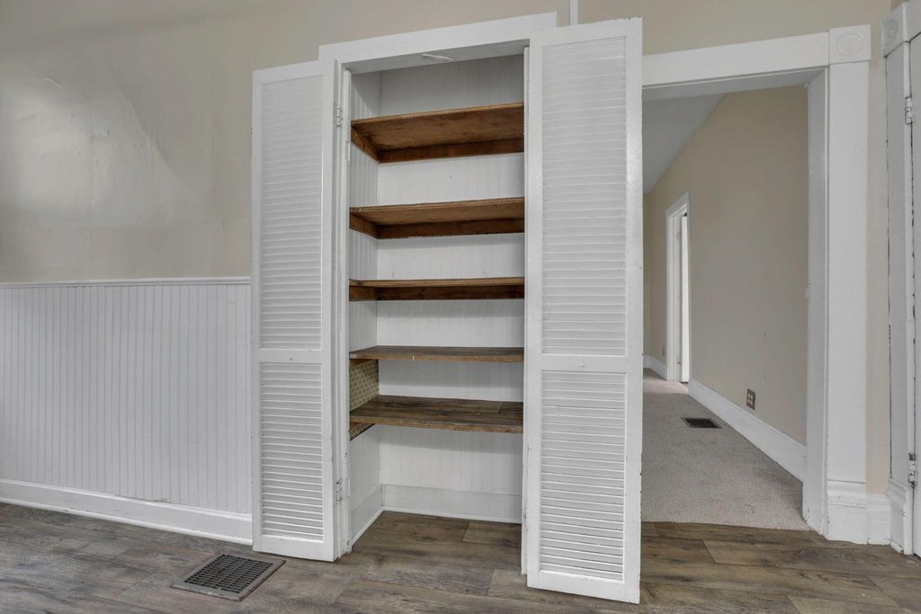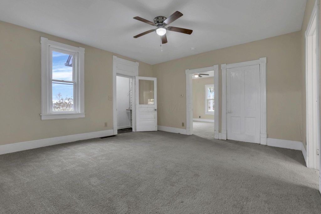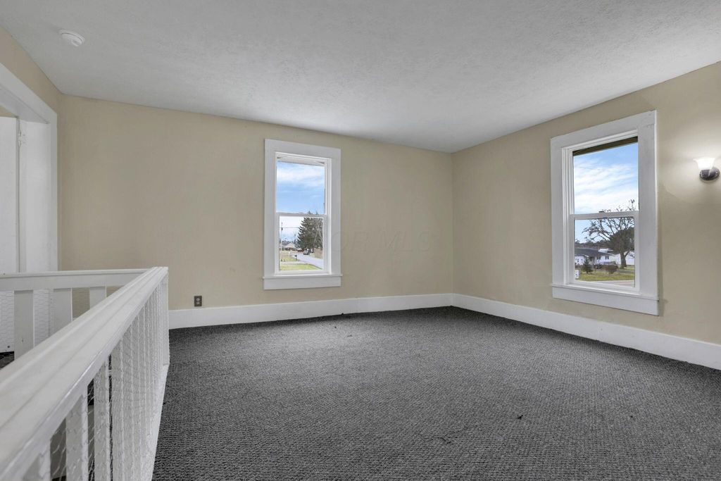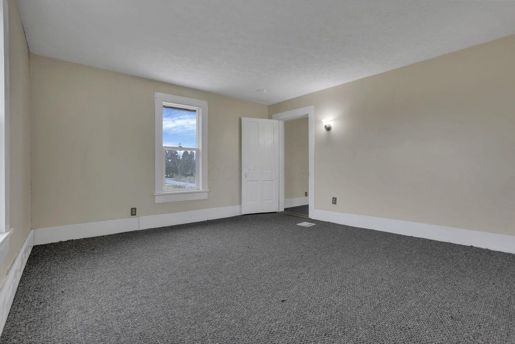 Step into timeless charm with modern peace of mind in this classic 1900 farmhouse, now ready for its next owner. Situated on a picturesque 2-acre lot, this 3-bedroom, 2-full-bath home blends historic character with plenty of updates throughout. A welcoming full front porch sets the tone, while large windows and high ceilings in the living spaces fill the interior with natural light. The main floor features new carpet, a spacious bedroom, and a brand-new full bathroom complete with washer and dryer hookup. Upstairs offers additional bedrooms and a walk-in attic providing extra storage. Major updates include a new roof and gutters, new windows, new water heater, updated 200-amp electrical panel, newer furnace and A/C, new well pump, new carpet, and new stainless steel kitchen appliances, offering comfort and confidence for years to come. A full basement adds even more storage and functionality. Outside, enjoy the nostalgia and serenity of the gorgeous lot with open green space, mature trees, and even a charming wooden tree house! Perfect for relaxing, entertaining, or simply soaking in the countryside setting. A rare opportunity to own a modernized farmhouse with space, charm, and character! Great for owner occupants or investors!
