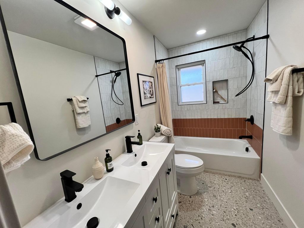 Fully remodeled brick ranch with 4 bedrooms and 3 full bathrooms, fully customized by a professional designer, so extensively renovated it is scheduled to be featured on a major home renovation network this spring. The completely revitalized interior showcases all new doors and trim, luxury vinyl flooring throughout the main level and finished basement, and high-end finishes at every turn. The designer kitchen features a center island, stainless steel appliances, and upscale materials ideal for both daily living and entertaining. All bathrooms have been fully remodeled with premium finishes and thoughtful design. The finished basement includes an egress window, creating additional living space perfect for a guest suite, recreation room, or home office. Situated on a desirable corner lot, this home offers a large yard and timeless brick construction combined with modern luxury truly a one-of-a-kind, move-in-ready opportunity.