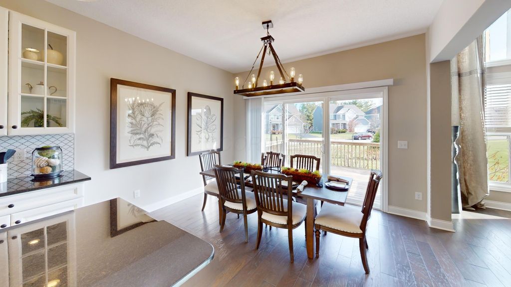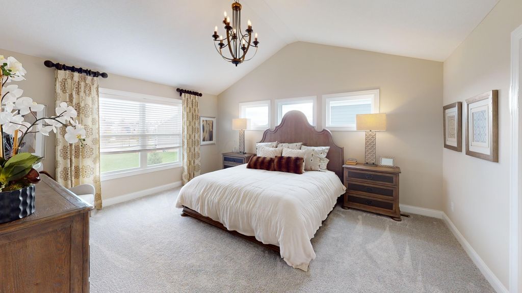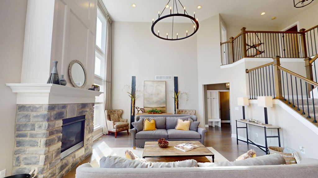 This stunning former builder model offers 3,545 square feet of thoughtfully designed living space with 5 bedrooms and 4.5 baths. The formal dining room is located just off the foyer and connects effortlessly to the kitchen through a convenient butler's pantry. The expansive kitchen features a center island and walk-in pantry and opens to a sun-filled dinette area and an impressive two-story great room highlighted by a dramatic two-story stone fireplace-perfect for both everyday living and entertaining. A spacious mudroom provides room for cubbies and a boot bench, while the main level guest suite adds flexibility and convenience. Additional highlights include an open loft overlooking the great room, a full basement, and a luxurious owner's suite with a cathedral ceiling.