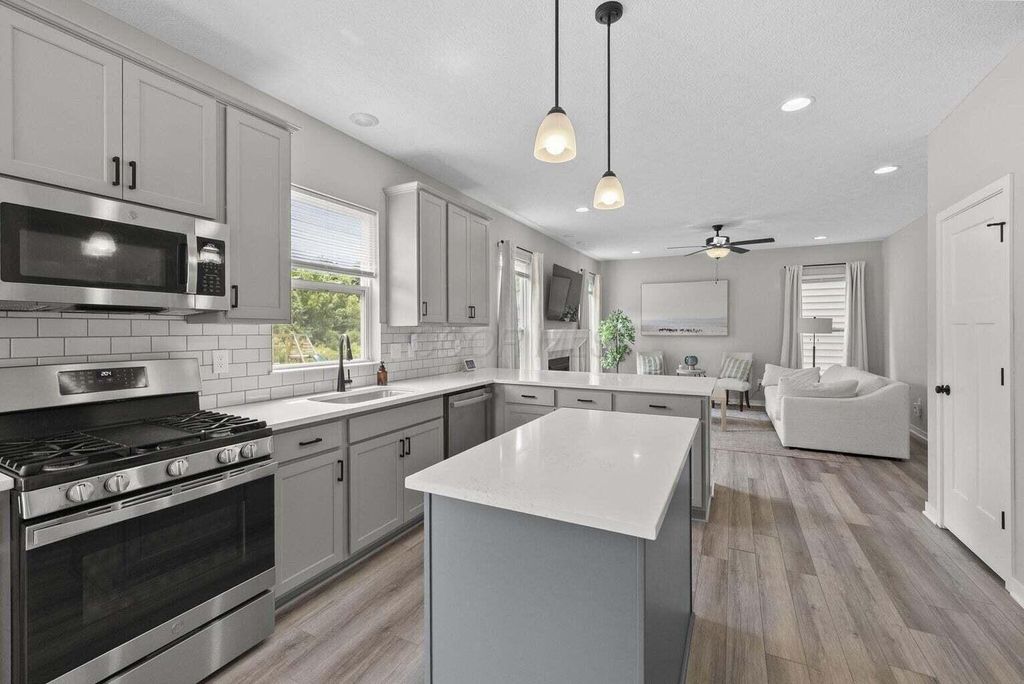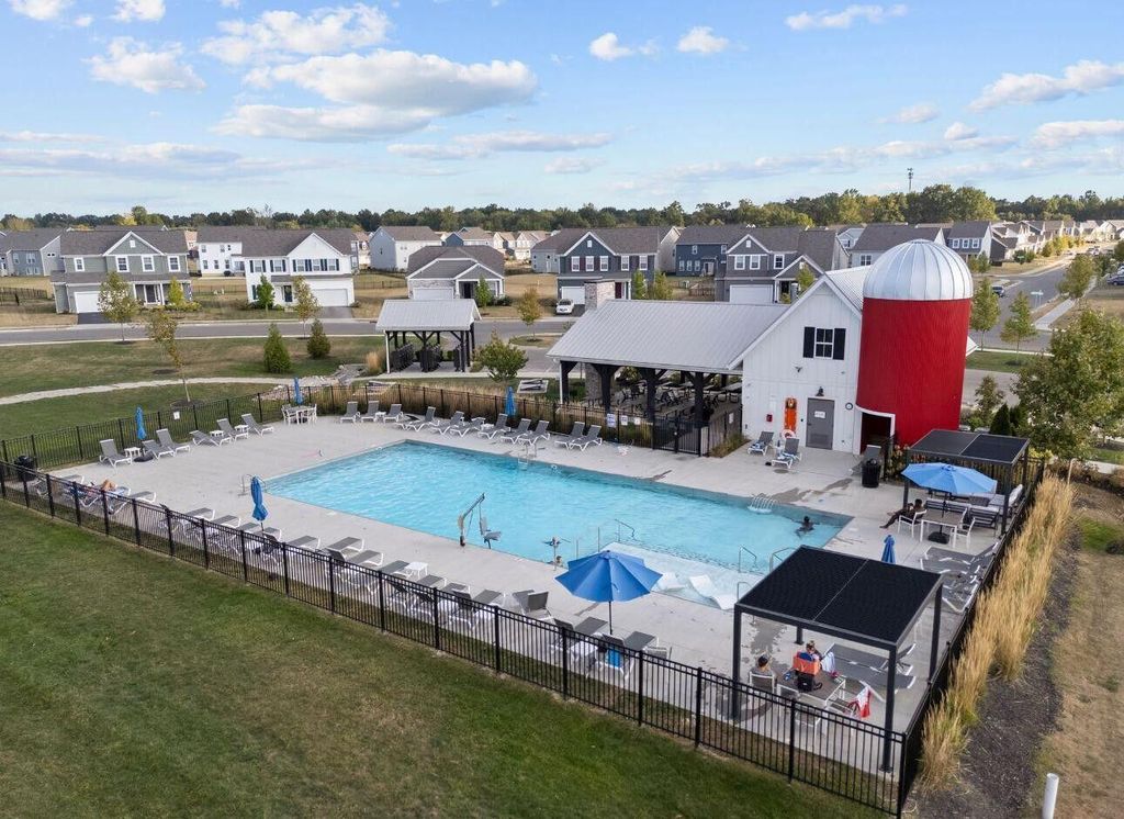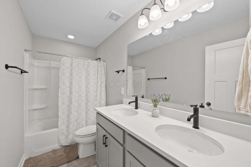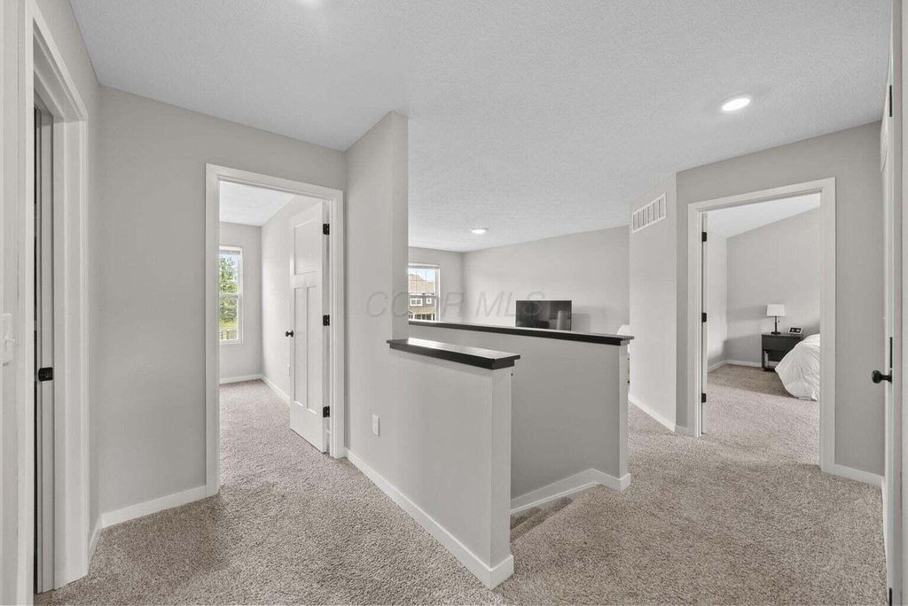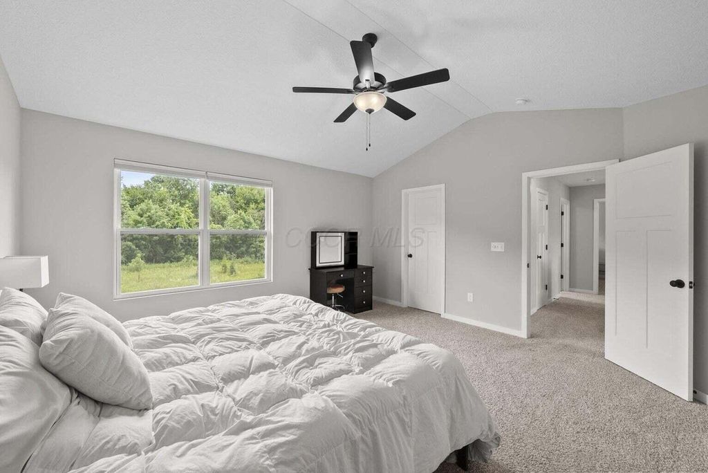 Welcome to this beautifully upgraded 3-bedroom, 2.5-bath home in the highly sought-after Farms at Jefferson community! With 2,087 sq ft of thoughtfully designed living space, this home blends modern style with everyday comfort. Step inside to an open floor plan bathed in natural light, featuring soaring ceilings, designer trim, and stylish lighting and fixtures throughout. The chef's kitchen is a showstopper, boasting quartz countertops, stainless steel appliances, and a spacious center island perfect for holiday gatherings or entertaining friends and family. Upstairs, the versatile loft provides an ideal flex space for a home office, media room, or playroom. All bedrooms are conveniently located on the second floor, along with a 2nd full bath and the washer and dryer"”making laundry easy and keeping everyday living efficient. Relax on the charming front porch or enjoy the private fenced backyard, which backs to a peaceful wooded lot"”offering both beauty and privacy. The custom fence, designed with mesh screening for smaller pets, was a significant $5,000+ investment, saving future owners the cost of installation. Additional highlights include a full basement with poured-wall construction and a full bath rough-in, a garage with an extra bump for storage or bikes, and transferable builder/manufacturer warranties. Residents enjoy exceptional community amenities including scenic parks, walking trails, a clubhouse, and convenient underpass access"”perfect for walkers, joggers, or kids visiting friends in the North section. This neighborhood has sold out, and homes backing to woods are rare. With high-end upgrades, thoughtful features, and a prime location in the Gahanna School District, this home offers both style and function. Don't miss your chance to own this one-of-a-kind property"”schedule a showing today