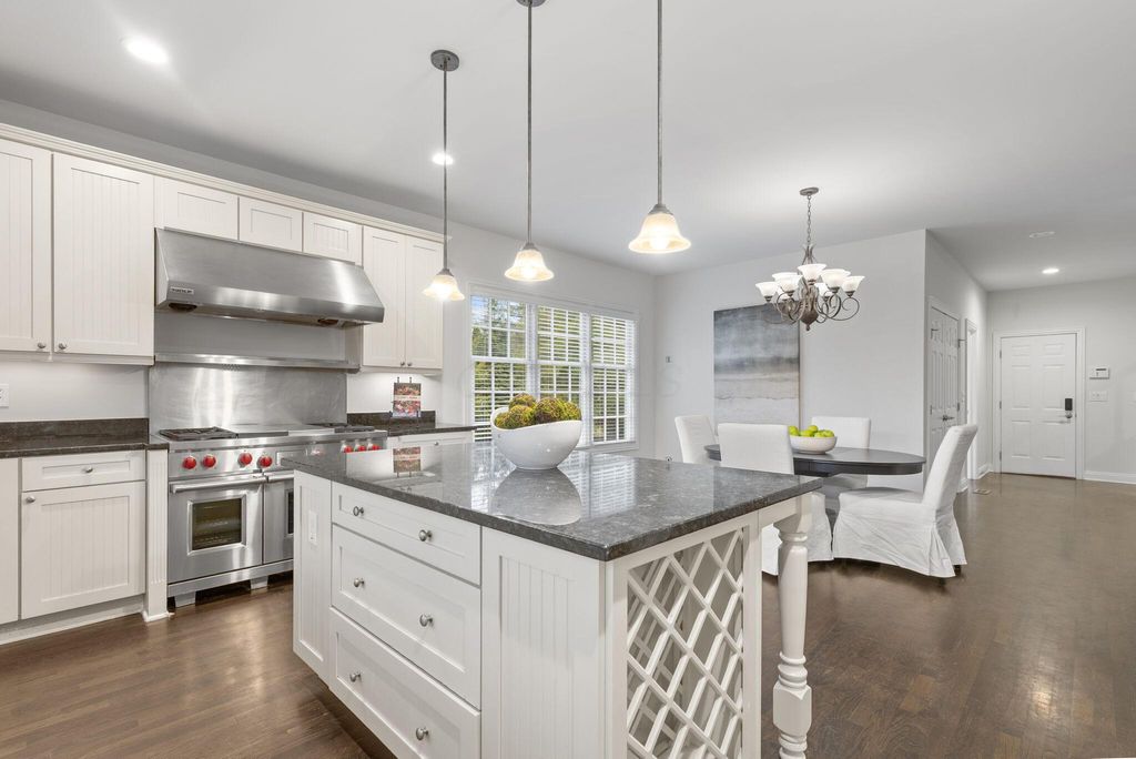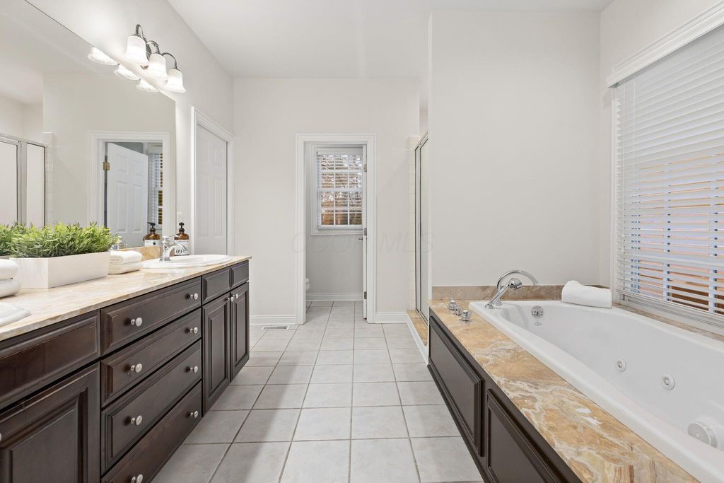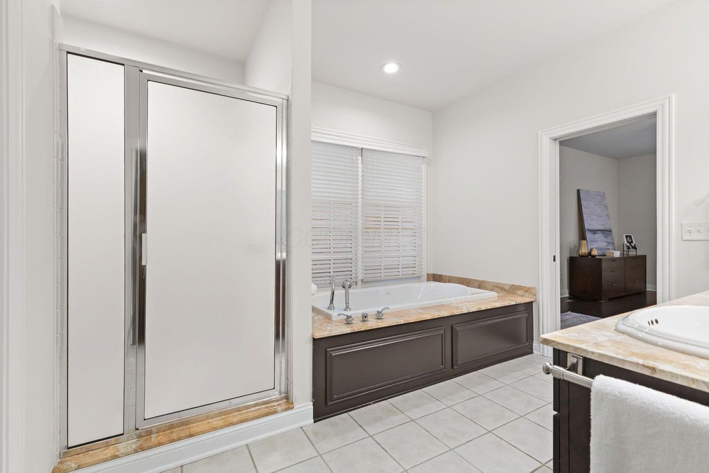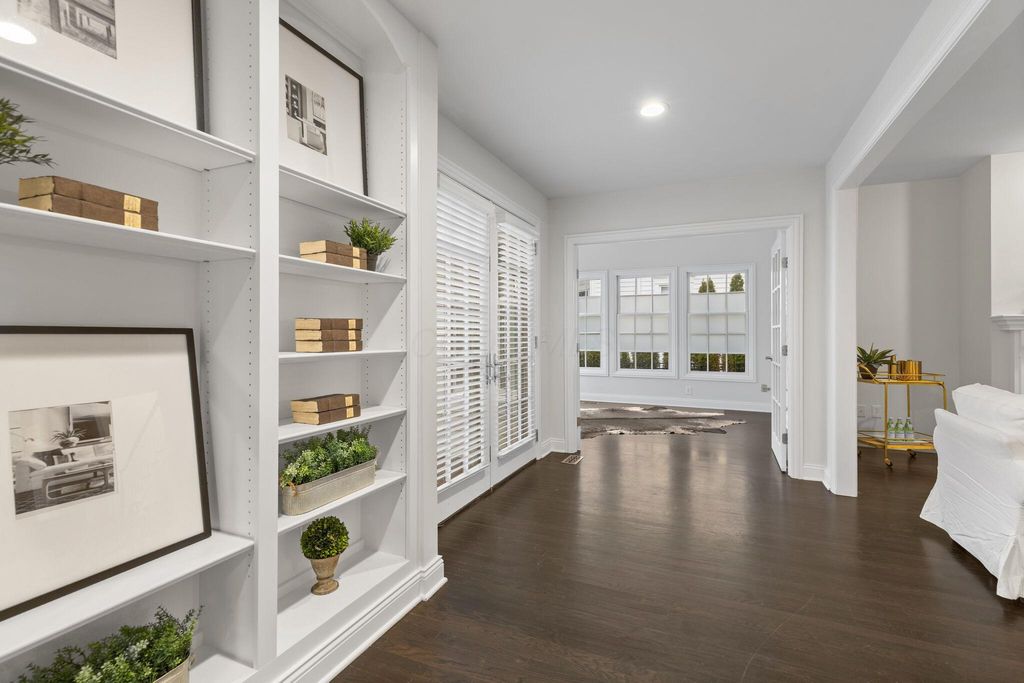 Discover this exceptional five-bedroom residence in the coveted Pickett Place neighborhood, offering unmatched convenience to shopping, dining, the McCoy Center, and all that the New Albany Country Club Community has to offer. This home showcases architectural excellence throughout and is thoughtfully designed for both everyday living and entertaining. A dramatic two-story foyer welcomes you and opens to a spacious great room with custom built-ins, an elegant dining room, and an expansive chef's kitchen featuring luxury appliances, including a Sub-Zero refrigerator and 48'' Wolf range. These spaces flow seamlessly into a stunning four-season room with walls of windows, creating an inviting environment for gatherings with family and friends.The serene first-floor primary suite offers a spa-inspired bath and generous walk-in closet. The upper level includes three additional bedrooms, all with ensuite baths, including one with its own private staircase.The finished lower level provides exceptional bonus living space with a large family room, additional bedroom, full bath, flexible space perfect for a home gym or hobby room plus abundant storage. Outdoor living is enhanced by an expansive custom patio, ideal for relaxation and entertaining. Additional highlights include a powder room, separate laundry room, and a three-car garage. A truly remarkable home in one of New Albany's most desirable neighborhoods.