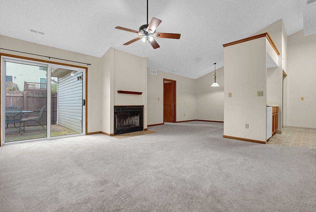 Nicely maintained ranch condo featuring fresh paint. The home offers two generously sized bedrooms with ample closet space and two full baths, including a primary bedroom with an en-suite bath featuring a newer shower. A spacious vaulted living room with a wood-burning fireplace opens to the vaulted dining area, creating a bright and inviting atmosphere. Sliding glass doors lead to a private deck with a privacy fence"”ideal for relaxing or entertaining. The kitchen includes a microwave, refrigerator, and range, with a convenient washer and dryer hookup nearby for everyday ease. Attached one-car garage. Great location tucked away yet just a short drive to shopping and restaurants, with nice proximity to a nearby park. Easy access to Routes 16/161 provides a smooth commute to Columbus.