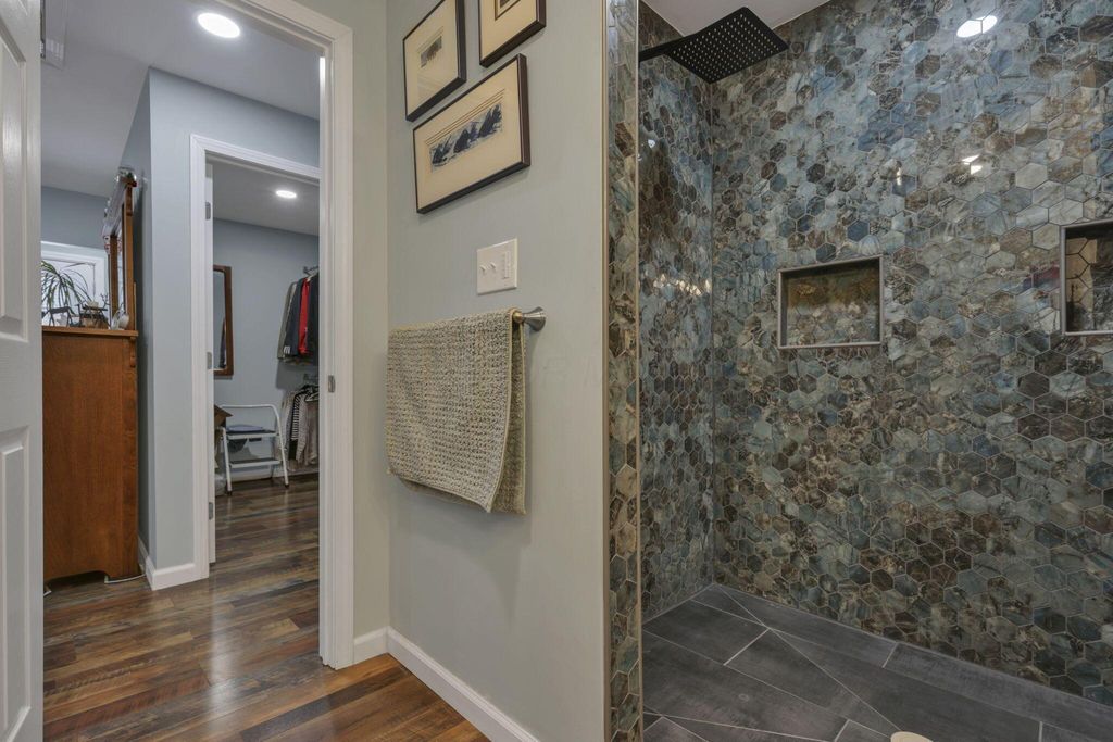 Beautiful home in Harbor Hills in Buckeye Lake! Over 2200 square feet of custom living space includes 4 Bedrooms & 3 Full Baths with TWO primary suites. One is oversized with a sitting area, beautiful mosaic tile shower, and modern double vanity. There's plenty of room for the family and/or entertaining with a separate dining area, family room, cozy living room with fireplace, and three season room. Outside, relax and barbeque on the large back deck or take a dip in the 10 ft deep in-ground saltwater pool. The included adjacent lot is just waiting for some development or simply more space to enjoy the beautiful outdoors.