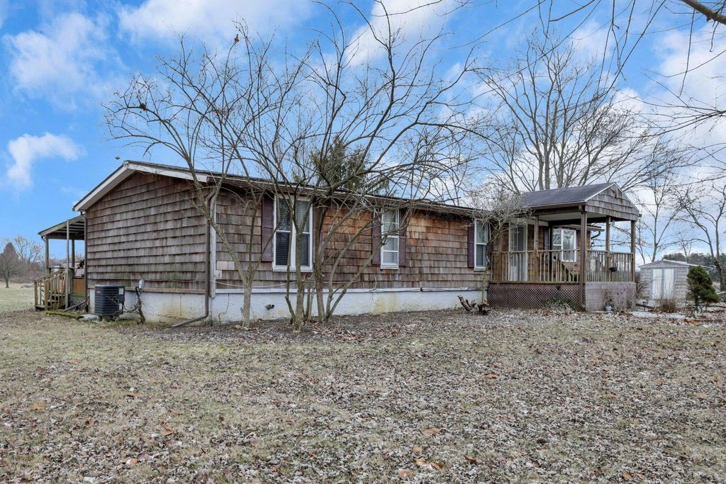 Amazing potential! Tucked away at the end of a quiet rural road on 5 beautiful acres, this ranch is a dream setting for horses, homesteading, mini-farm living or a home-based business, all while staying just minutes from Columbus & Groveport amenities. Peace, privacy & wide-open views surround you, creating the perfect canvas for the lifestyle you've been dreaming of. A long private drive welcomes you home to a flowing layout where the living & dining spaces open effortlessly, ideal for gatherings, gathering around the woodburning stove on a cold day, farm-to-table dinners or quiet nights in after a day outdoors. The kitchen features maple cabinetry & bold contrasting counters, opening directly to a sun-filled family room w. panoramic views of your land"”perfect for watching the seasons change, keeping an eye on animals or planning your next garden project. Dedicated office off the main living space is perfect for working from home, running a small business or managing your homestead. The private owner's suite is thoughtfully tucked away w. a walk-in closet, separate vanity area & private bath. Additional bedrooms & full bath offer flexible space for family, guests, hobby rooms or studio space. With solid bones & a versatile floorplan, this home is ready to be shaped into your ideal country haven. Step outside to your covered porch overlooking open pasture-ready land, perfect for morning coffee, evening sunsets & planning your future barns, fencing, gardens or riding areas. The large outbuilding & bunny house/chicken coop open the door to endless possibilities: horses, livestock, equipment storage, workshops or farm operations. This is the kind of property that supports real freedom: room to grow food, raise animals, build a business or simply live more intentionally. All of this space & privacy, paired w. Groveport schools & quick access to shopping, dining & highways w. the rare balance of true country living & city convenience. Some TLC needed, bring your ideas!