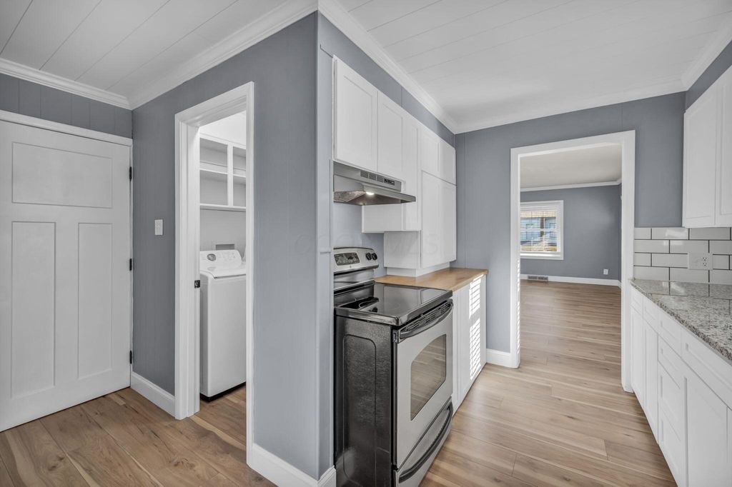 This 2-bedroom, 1-bath home has been fully renovated and is move-in ready! The exterior features a rebuilt cedar front porch with rod iron railing, an updated main roof, black gutters, and fresh exterior paint, giving the home great curb appeal. Inside, you'll find new flooring, ceilings, doors, lighting, and paint in every room. The kitchen has been fully updated with cabinetry, appliances, granite and butcher block countertops, a modern sink and faucet, plus a dishwasher and garbage disposal. Electrical has been updated throughout, along with new HVAC vents and returns, new basement windows, and a convenient upstairs laundry room with washer and dryer. Shiplap accents and tasteful details throughout. All mechanicals have been replaced within recent years as well. It's a home where the major improvements have already been taken care of to give you confidence moving in. Just minutes from downtown Marion as well as shopping, restaurants, schools, and US Route 23. Schedule a private showing today!