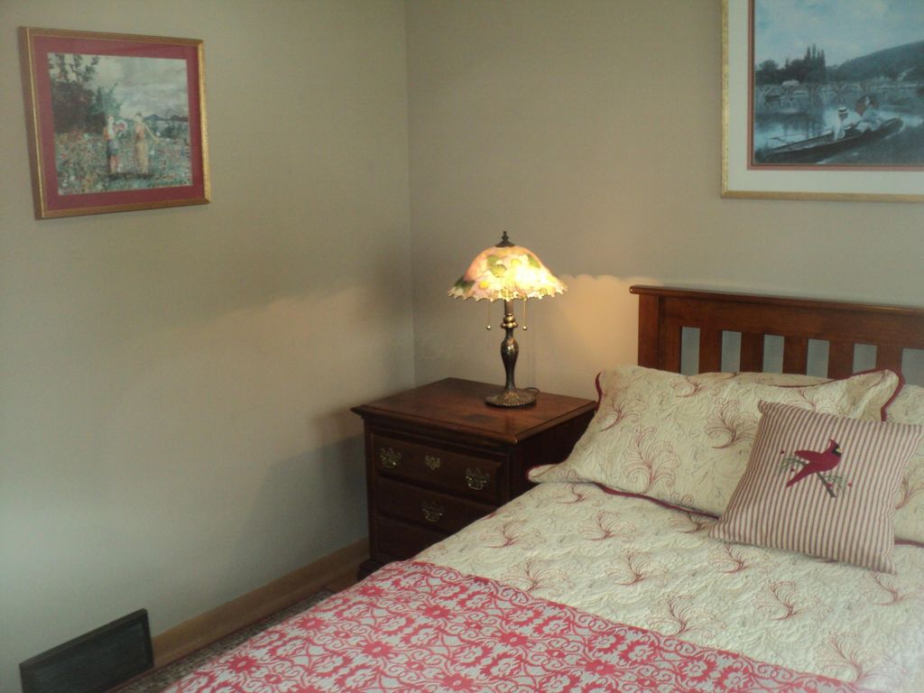 Very well located and family design for the whole family. Spacious kitchen w/ all appliances, adjacent dining area and opens to front LR. Bedroom wing features 2 suites with full bath, one with jacuzzi tub, both with walk-in showers. Additional bath off central hallway. Primary suite opens to large wood deck, spacious rear yard, privacy fenced, small fish pond. Garage has side overhead door for mower, golf cart or both. has outside access. Two basement areas front and rear, part finished, rear has outside access. Balance has deep crawl space paved concrete for extra storage. Hardwood flooring in much of home, 2 carpeted bedrooms. Garage doors replaced 2021; HVAC system 2019; roof 2002. Very clean and ready for your familys enjoyment.