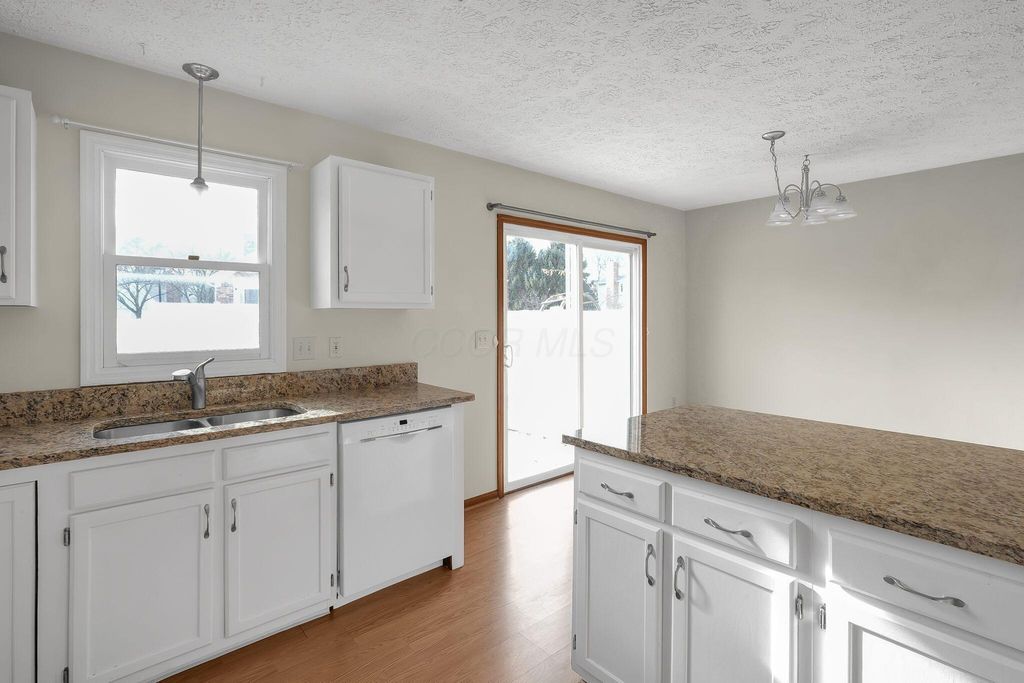 OPEN HOUSE 1/31 and 2/1 from 1-3pm. Welcome home to this well maintained 2-bedroom, 1.5-bath condo in the desirable Northbridge Village community, located within the highly rated Dublin City School District. The entry welcomes you with a convenient half bath and flows seamlessly into the family room, highlighted by a cozy gas fireplace. The space opens to a bright, welcoming kitchen featuring granite countertops, white cabinetry, and durable laminate flooring. The primary bedroom offers vaulted ceilings, creating an open and airy retreat, while both bedrooms include walk-in closets, a rare and appreciated bonus. Step outside to enjoy the fully enclosed fenced-in private patio complete with a concrete pad and hard-lined gas grill, perfect for relaxing evenings or entertaining guests. Additional highlights include a new furnace installed in 2022, a whole house reverse osmosis water filtration system, washer and dryer included, and a laundry sink for added convenience. HSP Home Warranty in Place for 12 months after closing. Ideally located near Bridge Park, Hilliard, and all of Northwest Columbus, with easy access to major roads and freeways. HOA includes water, sewer, trash, basic cable & internet, snow removal, lawn care and exterior building insurance. Your new home awaits - schedule your showing today!