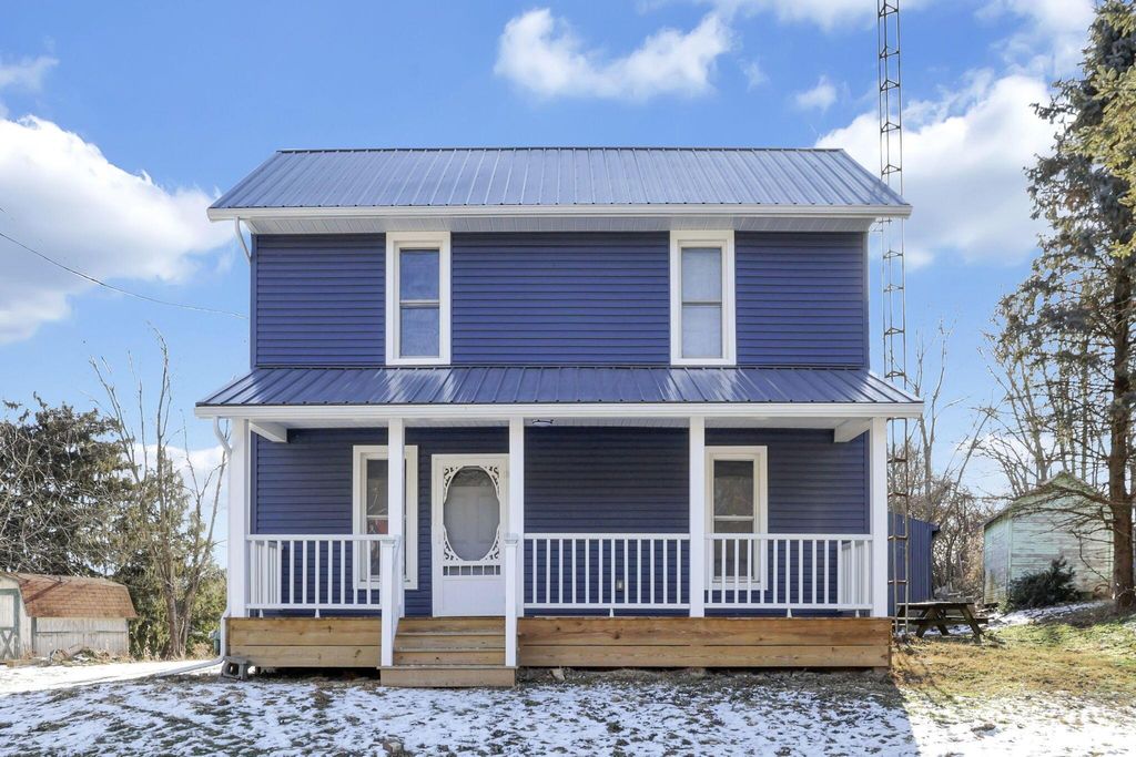 Discover this newly remodeled home that perfectly combines modern elegance with all-new features. From the new siding and roof to updated kitchen and bathrooms, every detail has been thoughtfully upgraded, including furnace, AC, hot water tank flooring, lighting, doors, trim & paint . As you approach the home, a charming front porch welcomes you. Inside, you'll be greeted by a spacious living room, a dining area, a kitchen complete with a stylish bar top and Stainless steel appliances. The main floor also includes a full bath, laundry room, and mudroom. Venture upstairs to find 3 bedrooms and 2nd full bath featuring a walk-in shower. The expansive 30x60 outbuilding provides versatile space, ideal for parking vehicles, a workshop, or extra storage. Home Warranty included. Don't miss the opportunity to see this home"”schedule your showing today!