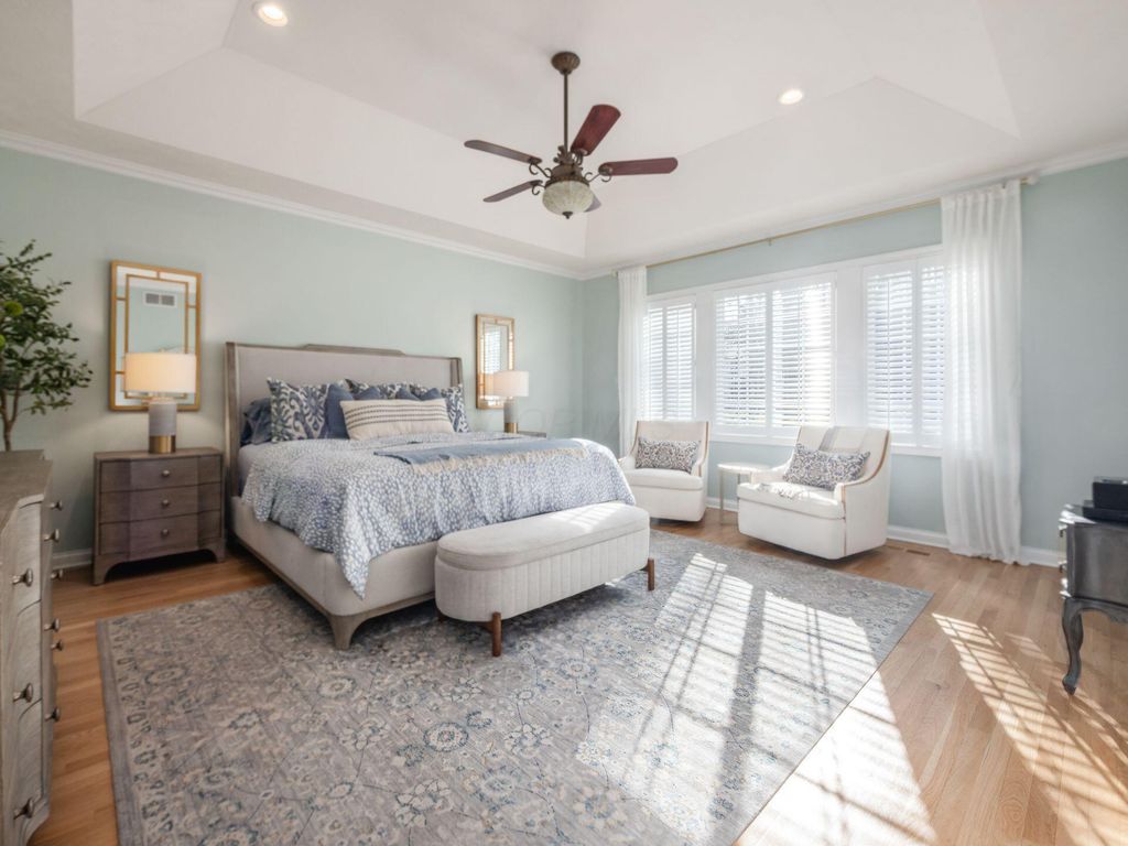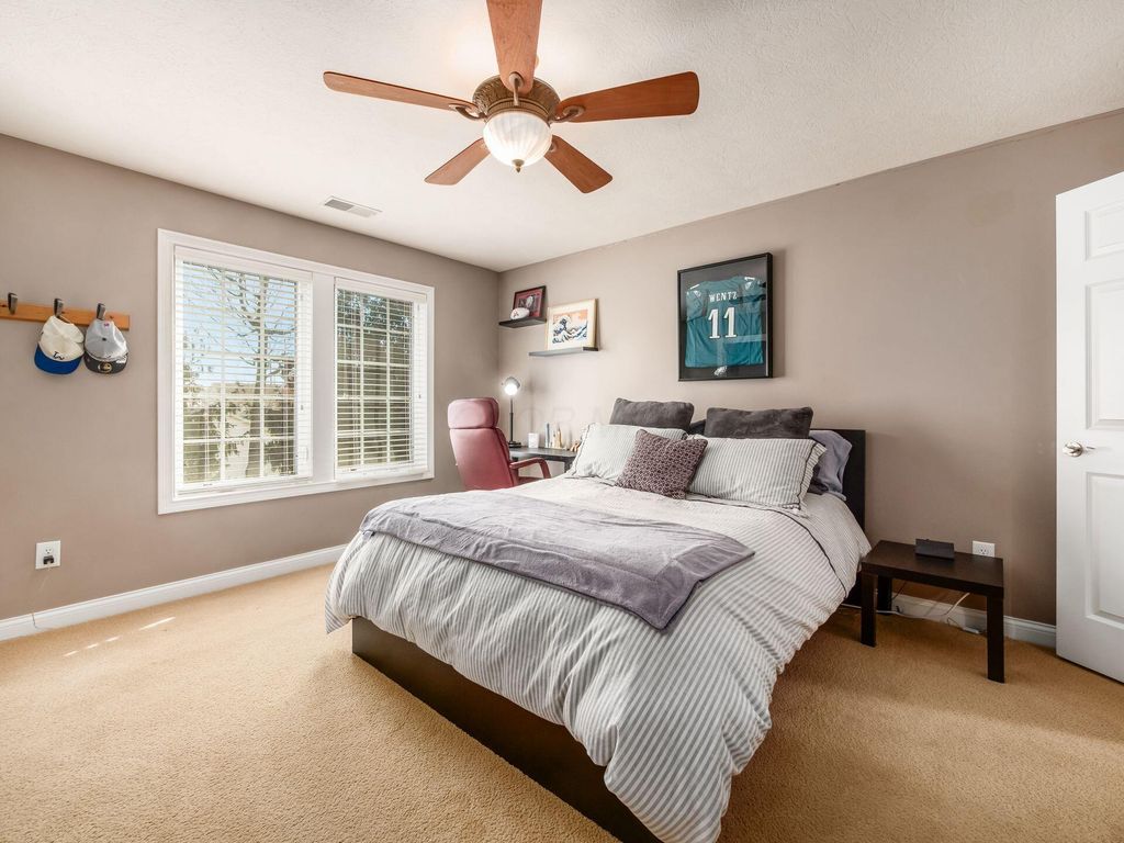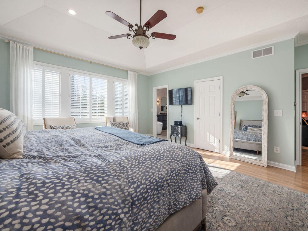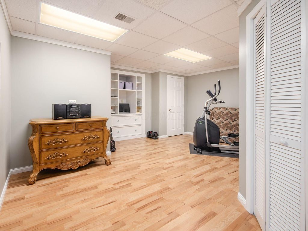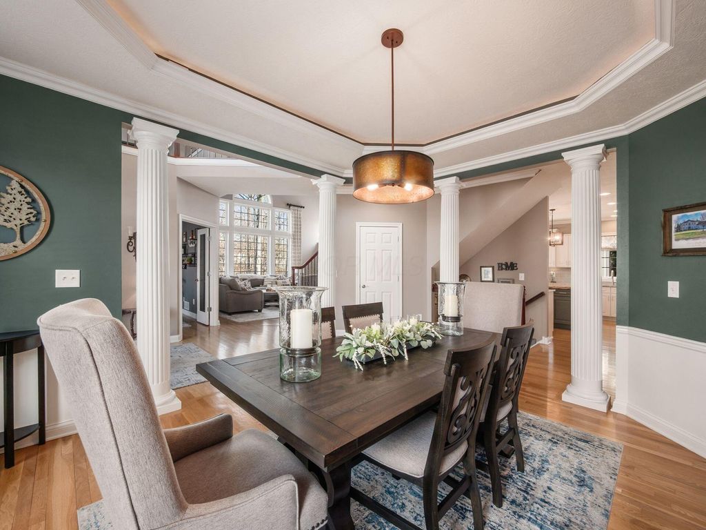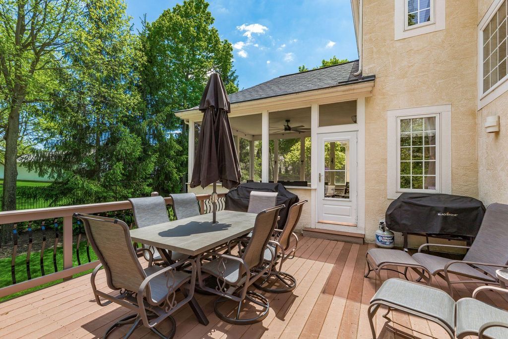 Welcome to 10811 Eckington Drive, tucked away on a quiet cul-de-sac in the highly sought-after Wedgewood community and within the Olentangy Local School District. This thoughtfully designed home was custom built and offers five bedrooms and a finished walk-out lower level. Multiple indoor and outdoor living spaces make everyday living, and entertaining, feel effortless. The original owners have invested wisely, starting with a beautifully remodeled kitchen (2020) featuring a huge island, gas cooktop with a vented hood, and a layout that truly works. The kitchen opens to the 2 story great room, featuring a wall of windows, a beautiful fireplace and custom cabinetry. The first-floor primary suite includes a stunning bathroom that was fully remodeled in May 2023 and a California Closet system. The main level also offers a dedicated office and formal dining room, along with a laundry room. In the finished walk-out lower level, you'll find additional living spaces, a wet bar, an updated full bathroom, the fifth bedroom, a large craft room and workout area. Other major updates include a new roof (2019), new furnace (2024), two new water tanks, newer A/C units, and an updated sump pump. Enjoy the outdoors from the screened porch, maintenance free deck, or paver patio. With a fenced yard, and a peaceful creek running through the property, you'll feel as you have your own private nature retreat! Close proximity to downtown Powell, Bridge Park, Polaris and so much more!