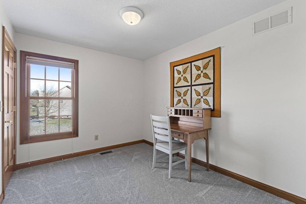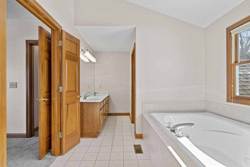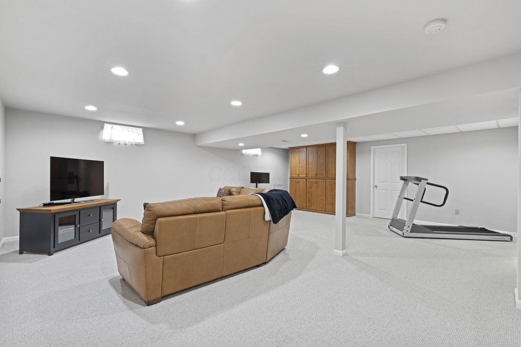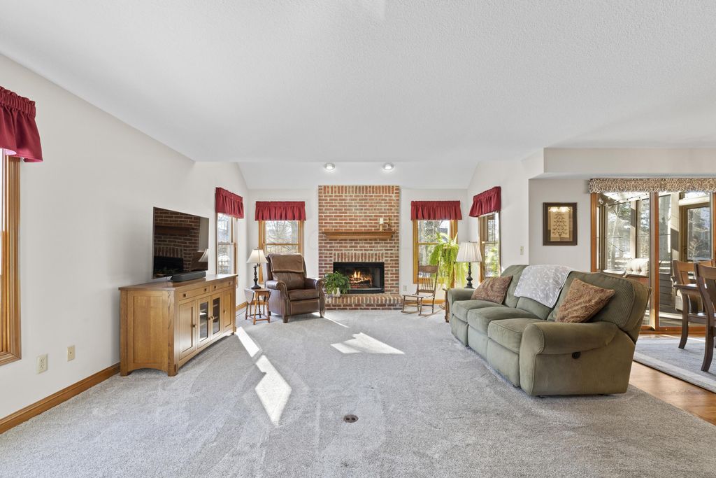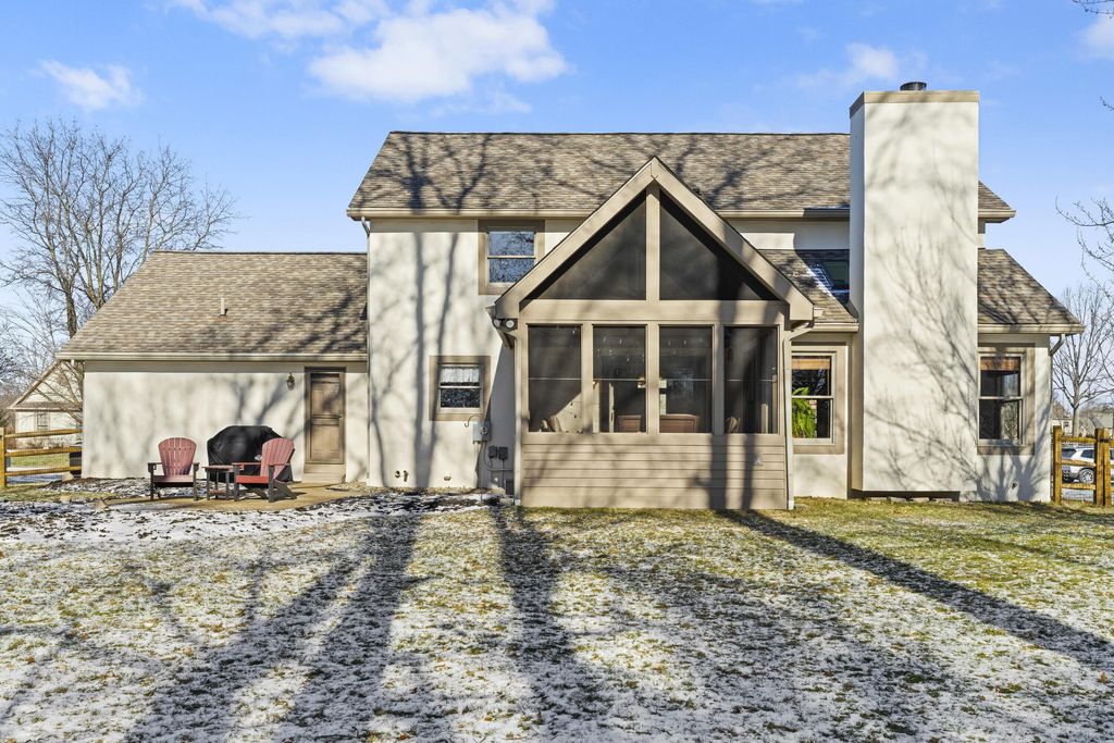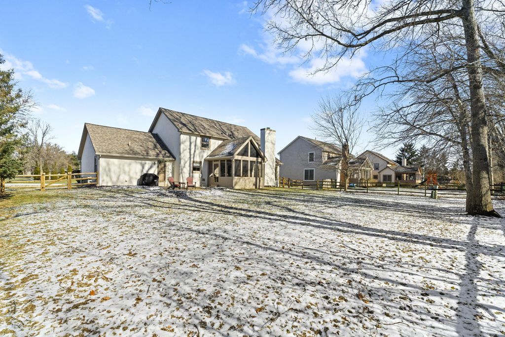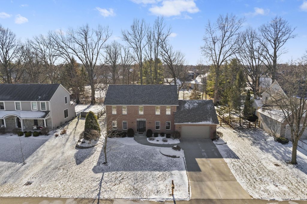 Welcome to The Shores! A neighborhood of custom built homes nestled next to Alum Creek State Park. This inviting brick colonial was built by Windsor. The first floor offers an office/flex room, dining rm, laundry, out of the way half bath, and great room with a brick, gas log fireplace. Remodeled, island kitchen offers Starmark inset-maple cabinets, stainless steel appliances, glass backsplash, hardwood floors, and Sahara Beige granite. The vaulted, screened porch will be your second home, a showstopper you won't find elsewhere. Grill with family and friends on your paver patio overlooking your treelined, fenced backyard. Curl up and watch a movie in this nicely finished basement equipped wth plenty of storage, poured foundation walls, can lighting, and full bathroom. The large, vaulted owners suite offers an ensuite bath with walk in closet, dual vanities, shower/soaking tub, and private water closet. Top rated Olentangy Schools.