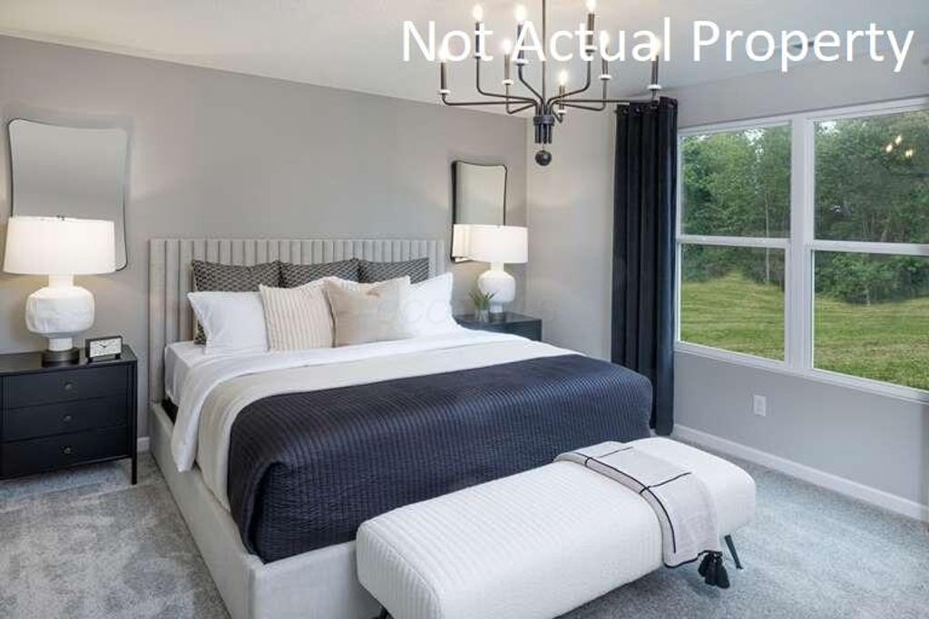 **OPEN HOUSE SAT 1/31 & SUN 2/1 12PM-4PM** This is an amazing new 4 bed 2.5 bath home in Eagle Creek. The kitchen has premium stainless Whirlpool gas appliances, dana white purestyle cabinets with premium hardware, steel grey granite counters, an upgraded stainless legend single bowl undermount sink with a moen arbor faucet, an island with space for seating and a pantry for storage. The owners suite has a double bowl vanity, blanco maple quartz counter, a vernon/white frost tile walk-in shower, a linen closet, enclosed toilet room and a huge walk-in closet. An add'l 3 beds, a full bath with a double bowl vanity, a cozy loft and conveniently located laundry. An eating space, great room, a multi use flex space with doors, a powder room and an extended 2 car garage. Smart home features included. Brushed nickel fixtures/finishes. Beautiful white rail and wrought iron spindles. Convenient access to everyday necessities like grocery, retail, dining, banking, and more. Park with tot lot, pergolas and an open activity lawn along with a walking path throughout the community for your enjoyment. Interior photos are from a model, not the actual home. This beautiful home is ready for your visit today.