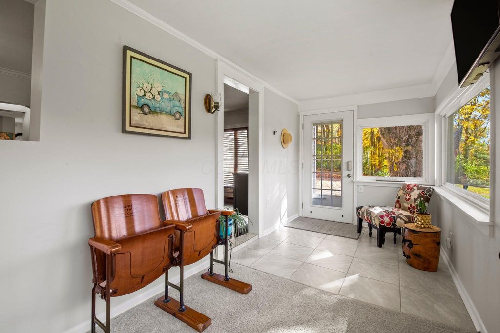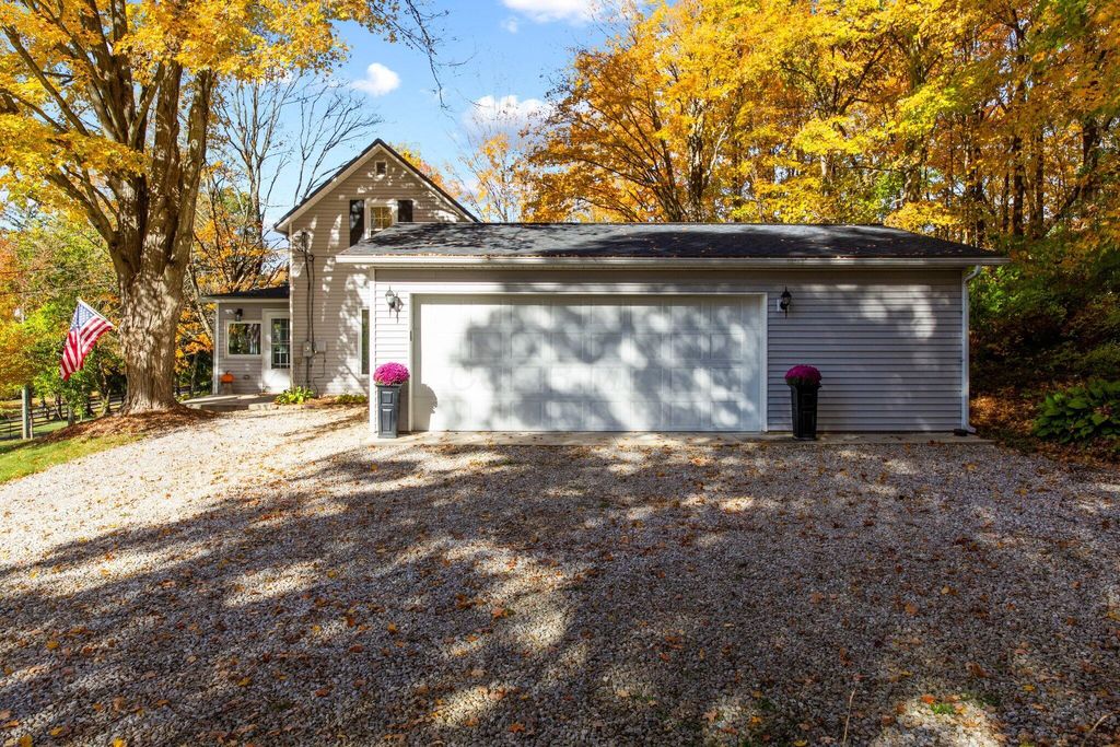 Enjoy the solitude of country living less than 6 minutes from downtown Delaware - the fastest growing county in Ohio! Nearly one-acre property with 360 forested views. 3 bedroom, 2.5 bath, oversized 2.5 car 30' x 25' garage. Keyless entry, four season room with plenty of sun. Updated home includes ceiling fans, new lighting fixtures, 2'' blinds throughout. 1st floor master bedroom with built-in fireplace, en suite full bath, walk-in shower, 1st floor laundry with front load w/d. Kitchen has granite countertops with stainless steel appliances, ceramic tile floors. Additional storage includes basement and 10'x12' shed. Private patio and large outdoor fire pit for everyone to enjoy. This agent owned home won't last long with easy access to Rt 23, and a 30 minute or less commute to OSU.