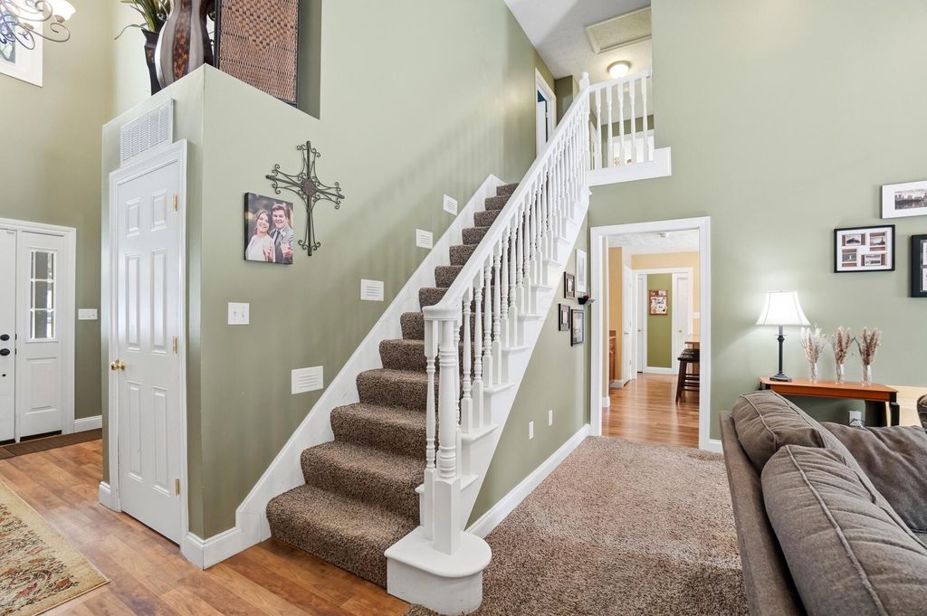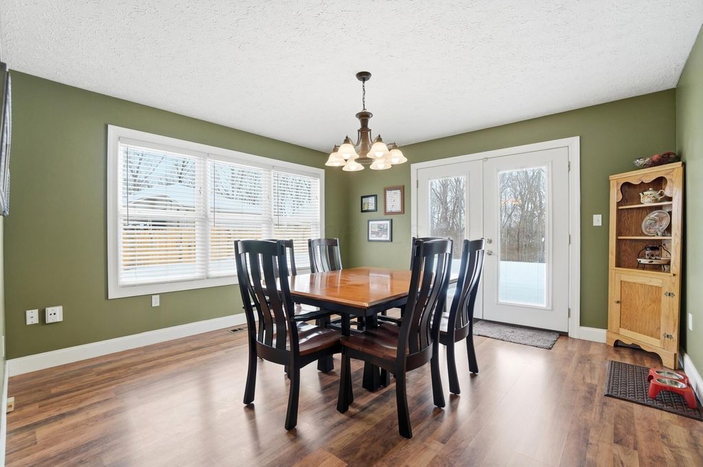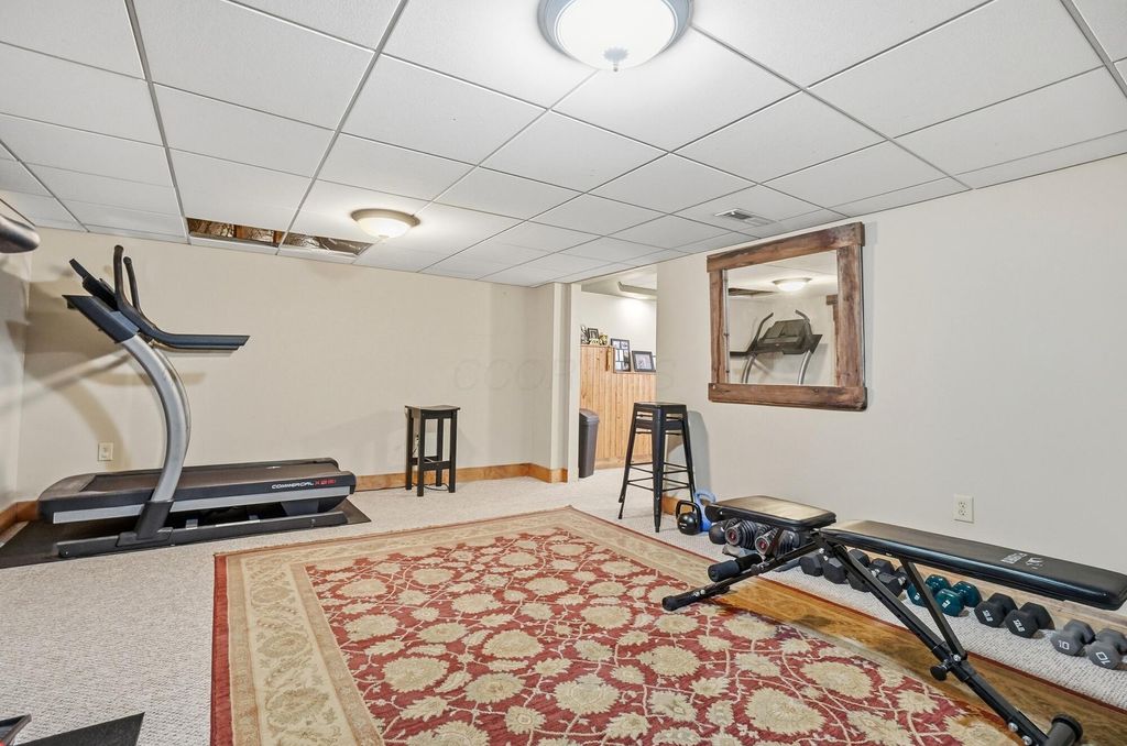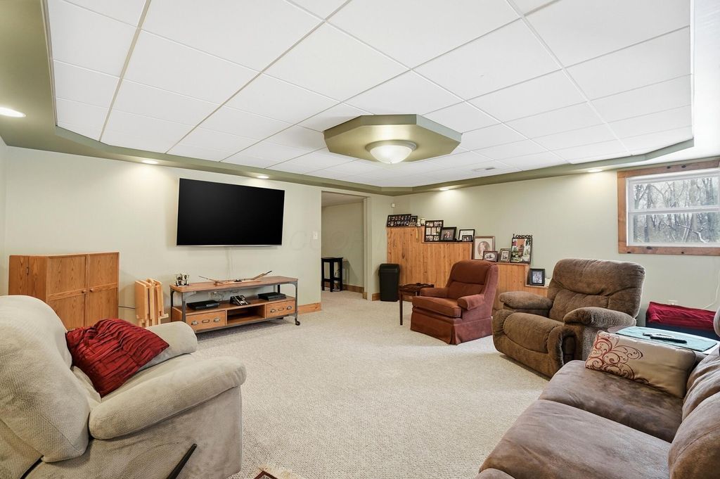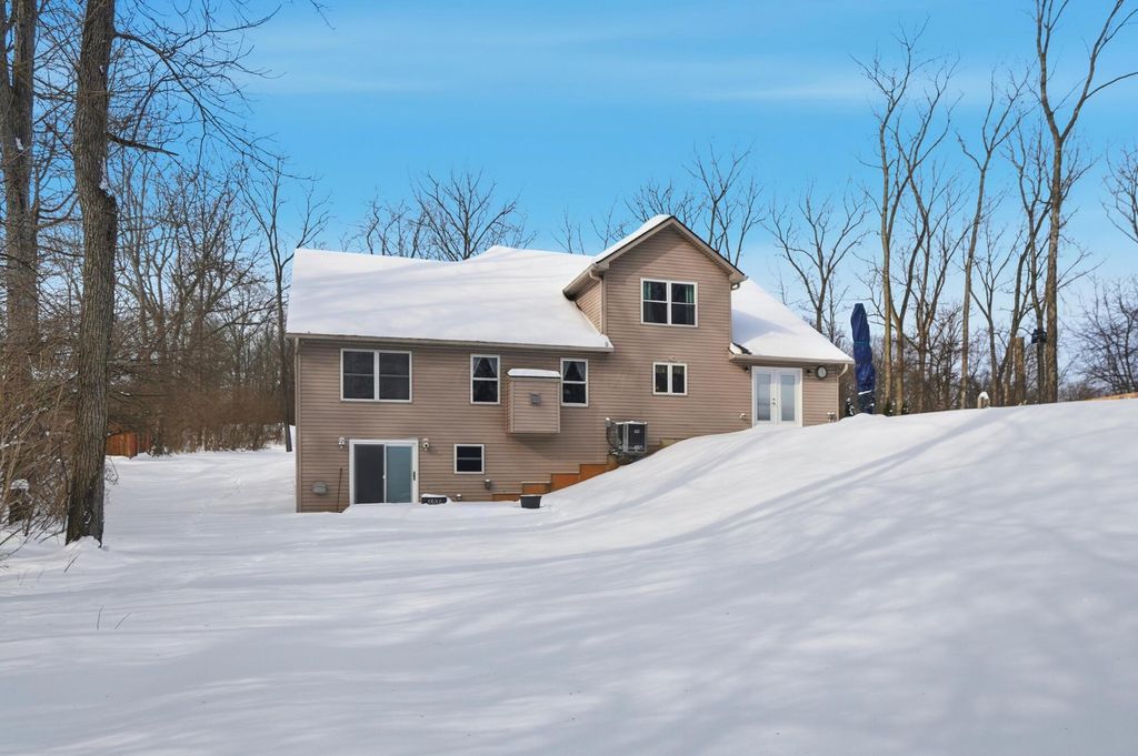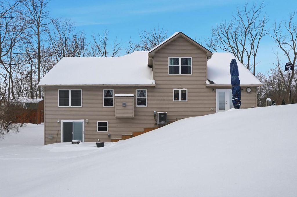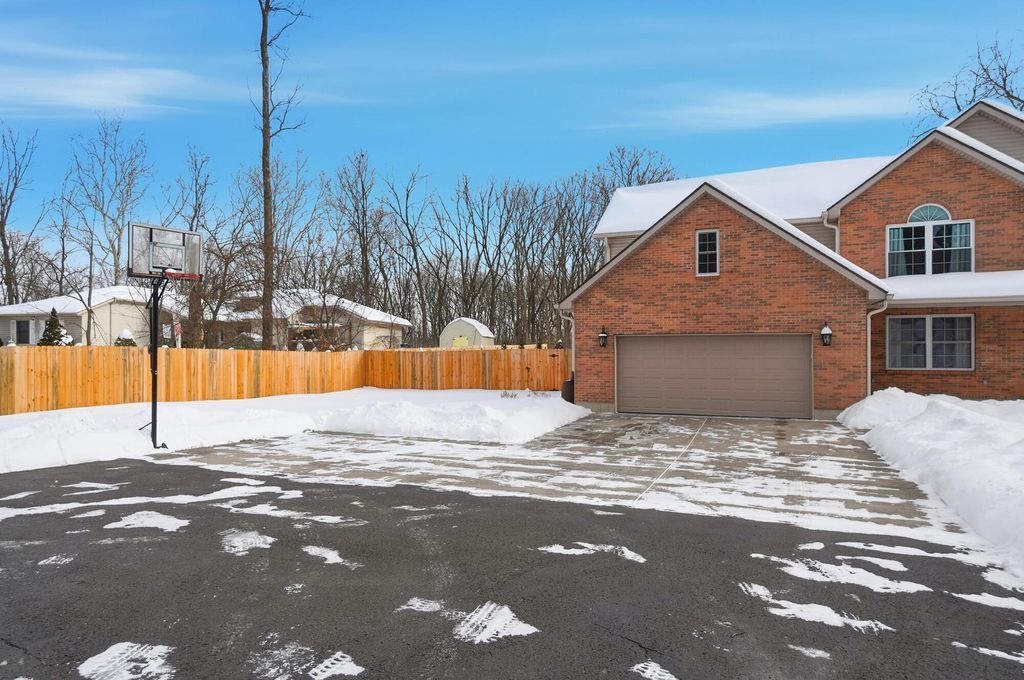 This home offers over 4,100 square feet of living space, including a finished walkout lower level- but it's what lies beneath the snow that truly elevates this custom property. Set on more than 2 wooded acres, the landscape will soon come to life with mature trees, open green space, and a level of privacy that's hard to find. As the snow melts, the backyard reveals a serene in-ground Knickerbocker pool (2020), designed for relaxed afternoons or pool games with friends. Submerged bench seating anchors one end of the pool, with a maximum depth of five feet, while an automatic cover gives peace of mind and makes opening and closing effortless. An expansive stamped concrete patio (2020) creates space for al fresco dining, sunbathing, and gatherings, all framed by a privacy fence added in 2025- forming a peaceful outdoor retreat to enjoy from spring mornings through fall evenings. Inside, the home features a first-floor primary suite with a cathedral ceiling, double-sink vanity, garden tub, separate shower, ceramic flooring, and a generous walk-in closet. The open kitchen anchors the main level with a breakfast bar, pantry, and stainless steel appliances, flowing easily into the surrounding living areas. The walkout lower level extends the living space and includes a built-in bar, fifth bedroom, and half bath- ideal for guests or entertaining. A spacious study or exercise room offers flexibility for work or hobbies. Recent updates include a new roof (2025), HVAC (2017), new front door and upstairs windows (2019), new carpet in the primary suite (2024), dishwasher (2024), water softener with reverse osmosis (2019), and a new privacy fence (2025). Conveniently located near I-70 with easy access to Columbus, Dayton, Beavercreek, and WPAFB, this Springfield Township home blends generous living space, numerous updates, and an outdoor setting that truly shines once spring arrives. Located in the Clark-Shawnee School District.
