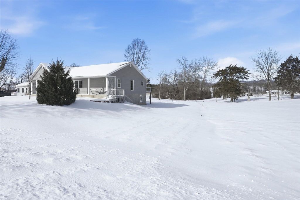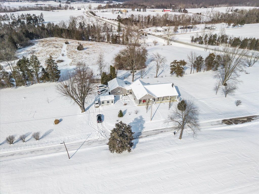 Spacious 3-bedroom, 2-bath ranch home offering 1,992 sq ft of comfortable living space set on 2.77 rural acres. This large family home features great wood floors throughout and freshly painted cabinets, creating an updated and inviting interior. A full basement offers excellent storage and future potential. Recent updates include a new large hot water heater and new water softener for added efficiency and convenience. The level, usable acreage provides plenty of room to roam, garden, entertain, or simply enjoy the peace and privacy of country living. Whether you're dreaming of outdoor gatherings, space for animals, or just room between neighbors, this property delivers. The expansive 34x30 attached garage is currently set up as a home gym, offering a versatile bonus space that could easily be converted back to a traditional garage, workshop, storage area, or hobby space. Two additional outbuildings/sheds provide even more flexibility for equipment, tools, or recreational use. With open land, multiple structures, and a quiet rural setting, this property offers endless possibilities both indoors and out.