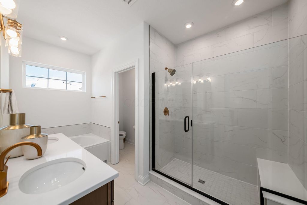 Welcome to this beautifully designed townhome at Bridge Park in Dublin, where modern style meets an easy, walkable lifestyle. Less than two years old, this home offers three bedrooms, two full baths, two half baths, and multiple levels designed for real life. The heart of the home is the second-floor kitchen, featuring stainless steel appliances, a gas cooktop, a large island, pantry, and an open living space that flows right out to a private deck. It's a layout that works just as well for everyday living as it does for entertaining friends. Upstairs, the primary suite offers a private retreat with a spa-like bath, double quartz vanity, and walk-in closet. Two additional bedrooms, a full bath, and laundry located on the same level make daily routines easy and convenient. One of the standout features of the home is the fourth-floor loft with a beverage center and private rooftop terrace. This space really sets the tone, whether you're hosting, relaxing, or enjoying a quiet evening outdoors. The first floor includes a flexible living area, an additional half bath, and a two-car attached garage, offering extra space for a home office, workout area, or guest space. What truly makes this home special is the location. Just steps from downtown Dublin and Bridge Park, you can walk to restaurants, bars, parks, trails, and the walking bridge, all while enjoying the comfort of modern, low-maintenance townhome living. This home combines thoughtful design with an unbeatable setting in one of Dublin's most desirable communities. If you're looking for the energy of an urban lifestyle with the comfort and ease of a newer, well-designed townhome. This one is absolutely worth seeing!