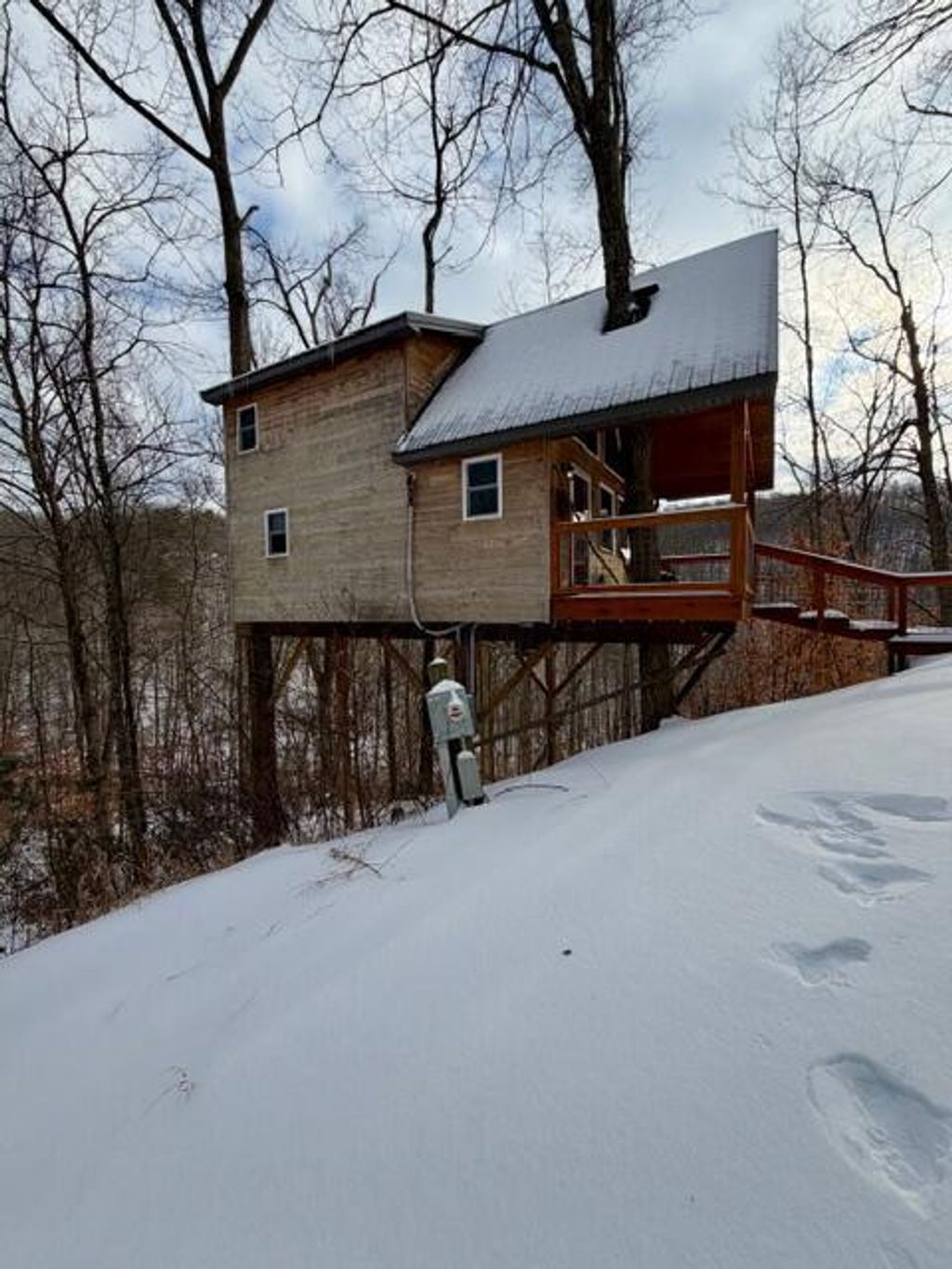 A unique opportunity awaits to get started or add to your portfolio in the Short Term Rental market near the sought after Hocking Hills region! Not 1, but 2 adorably unique treehouses situated on almost 20 acres of land and surrounded by 200+ acres of Acadia Cliffs Nature Preserve are waiting for their new owner. Not only can you explore and enjoy your own 19+ acres, Acadia Cliffs Nature Preserve offers so much more area to hike and enjoy as well. Both Treehouse #1 and Treehouse #2 have been thoughtfully constructed, seamlessly woven into the sturdy oak trees, offering an immersive natural experience. Both treehouses on this property offer spacious retreats, each treehouse features approx. 500 square feet of comfortable living space designed for relaxation and rejuvenation. Both treehouses offer full kitchens, eating spaces, full bathrooms and ample living room area. The loft in each treehouse houses the bedroom, where large windows provide sweeping views of the surrounding landscape. Step out onto the balconies to enjoy an invigorating outdoor shower, perfect for connecting with nature. The amenities continue outdoors with wrap-around decks, and covered front porches that overlook ancient rocks embedded in the hillside, making these treehouses an ideal spot for unwinding in a serene environment. Treehouse #1 can sleep up to 4 people and Treehouse #2 can accommodate up to 6 guests. This property is ideally situated just a short distance from Athens and Ohio University and a short drive to all Hocking Hills attractions All furnishings in each treehouse will convey. Electric service has been established for 2 more treehouses, in addition; there are several other building sites on the property to add potential rental income. Must see this property to experience the full beauty of the natural surroundings it has to offer.