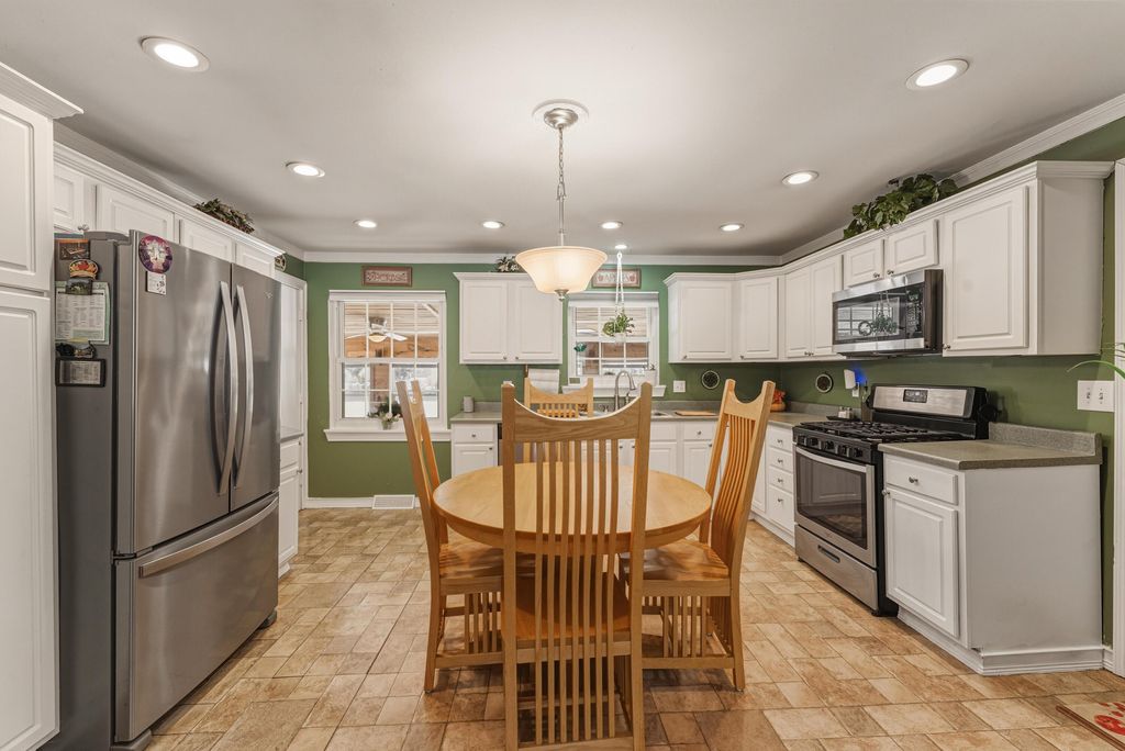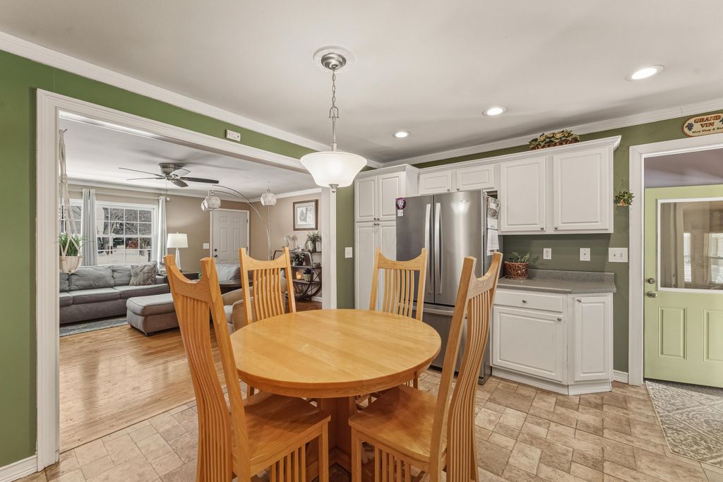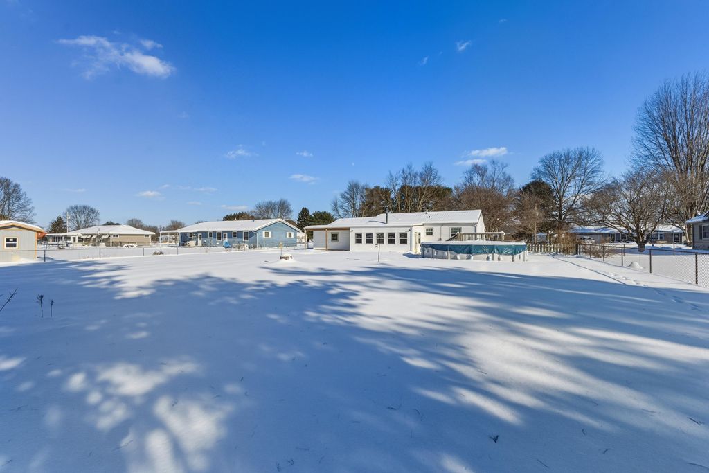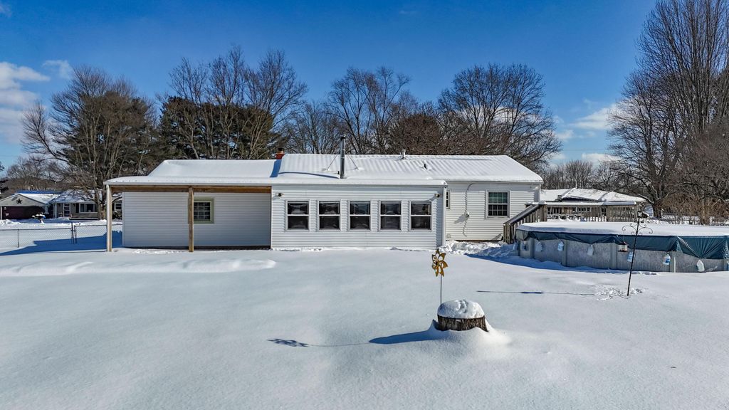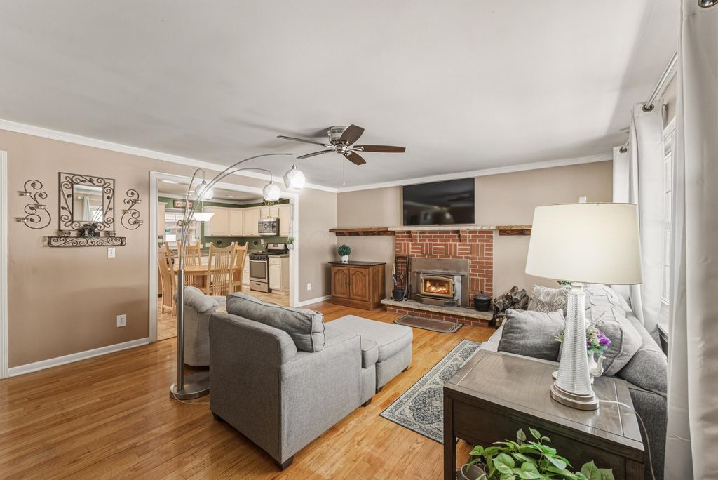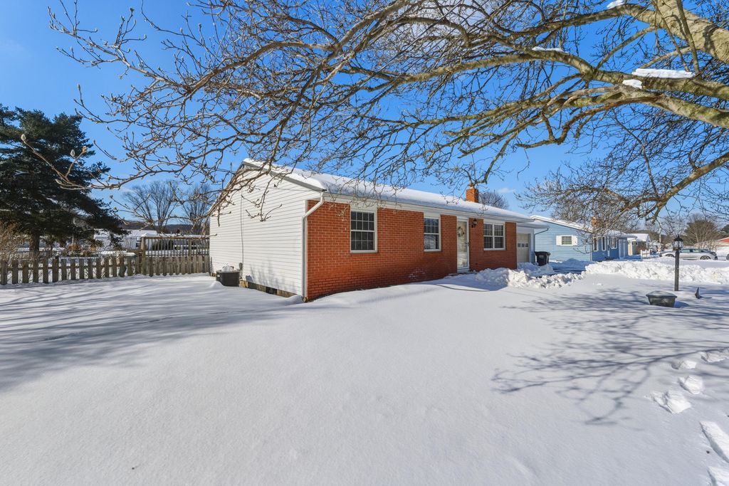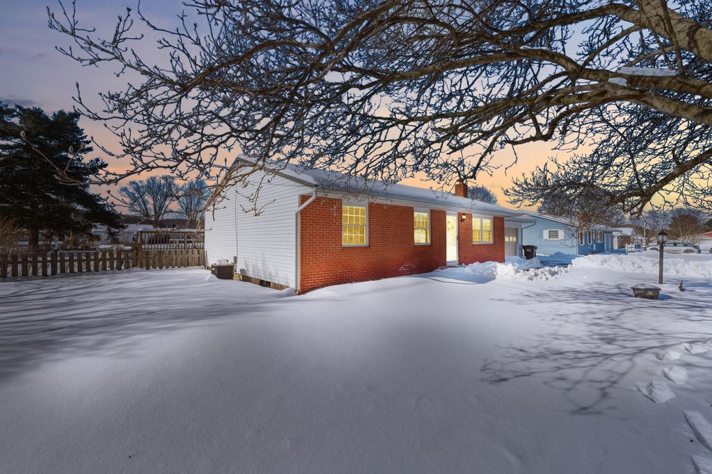 OPEN HOUSE SUNDAY, 2/14 2-4pm This well cared for brick ranch offers the perfect blend of comfort, character, and space, all set on a beautiful half-acre lot in a peaceful setting that feels private yet remains close to town. The home features three spacious bedrooms, two full bathrooms, and an oversized attached garage, providing easy one-level living with room to grow. Original hardwood floors in the living room, hallway, and bedrooms are accented by crown molding and abundant natural light, creating a warm and inviting atmosphere throughout. The home includes both a fireplace and a wood-burning stove, adding charm and comfort to the living spaces and making them ideal for both relaxing and entertaining. The primary bedroom is generously sized and includes an en-suite bathroom, while both bathrooms offer walk-in showers. The kitchen provides ample cabinet space and stainless-steel appliances, including a gas oven range and a new microwave. It opens to a lovely three-season room with a wood-burning fireplace that overlooks the backyard and offers a perfect space to enjoy all seasons. A convenient 10x20 flex space between the home and garage functions as a mudroom with additional storage. The large unfinished basement offers endless possibilities for storage, hobbies, or future living space, and includes a bonus bedroom or office. Outside, the deep rear yard is ideal for entertaining with a covered porch, fenced yard, and a well-maintained pool area. Additional highlights include a whole-house water filtration system, water softener, and dehumidifier. Located just minutes from shopping, dining, and parks, this home delivers the ideal combination of peaceful living and everyday convenience.