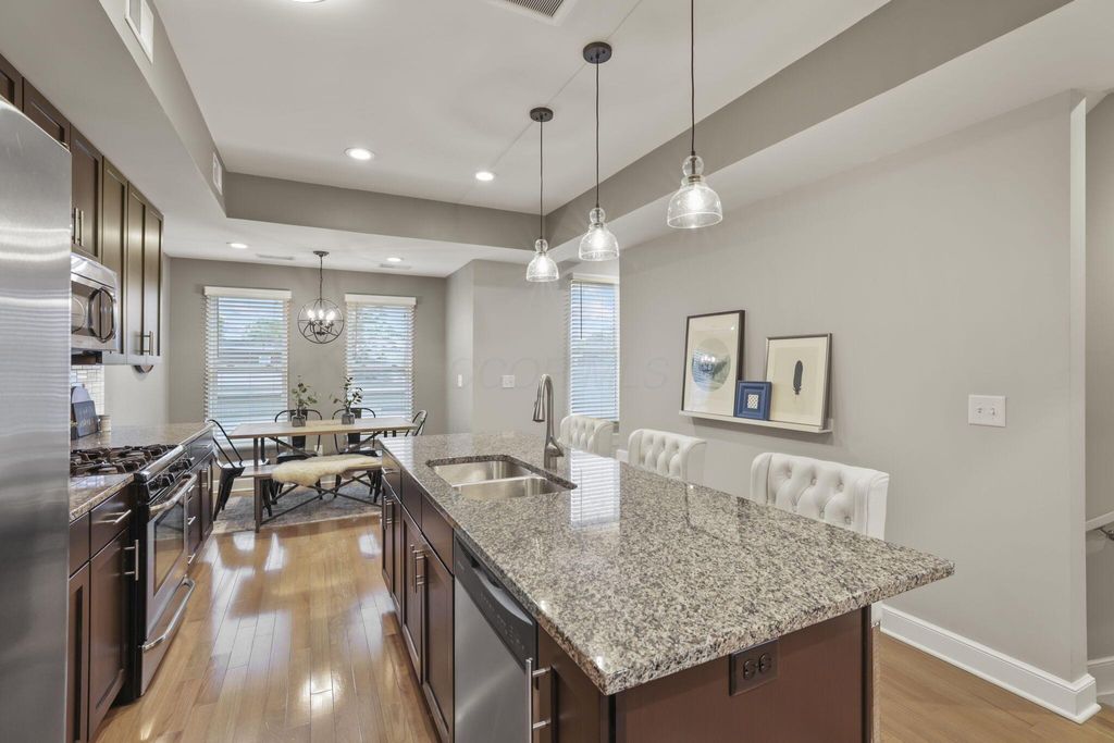 Nestled in the vibrant heart of Italian Village, 138 E Greenwood Ave. offers more than just a home it provides an all-access pass to the most dynamic urban lifestyle in Columbus for 2026. This three-story townhome places you at the intersection of historic charm and modern luxury, just steps away from the city's premier dining and entertainment. The design prioritizes flow and natural light, immediately greeting you with an open-concept layout that seamlessly connects the living areas. On the entry level, versatility reigns supreme: a rare and functional entry level den or home office offers quiet separation, or easily convertible into an additional bedroom. The entry level is supplemented by an additional entry level half bathroom for guests or clients. Moving into the second level the chef's kitchen serves as the heart of the home, featuring elegant granite countertops, a classic subway tile backsplash, sleek stainless steel appliances, and a practical eat-in area perfect for casual dining. The third floor is dedicated entirely to a private, spacious one-bedroom suite, a primary suite retreat complete with a full, spa-like bathroom and an oversized walk-in closet that conveniently houses the in-unit washer and dryer. This thoughtfully designed layout maximizes every inch, from the refined kitchen finishes to the practical convenience of an attached one-car garage. Tax Abatement in place until 2030! See A2A Remarks!