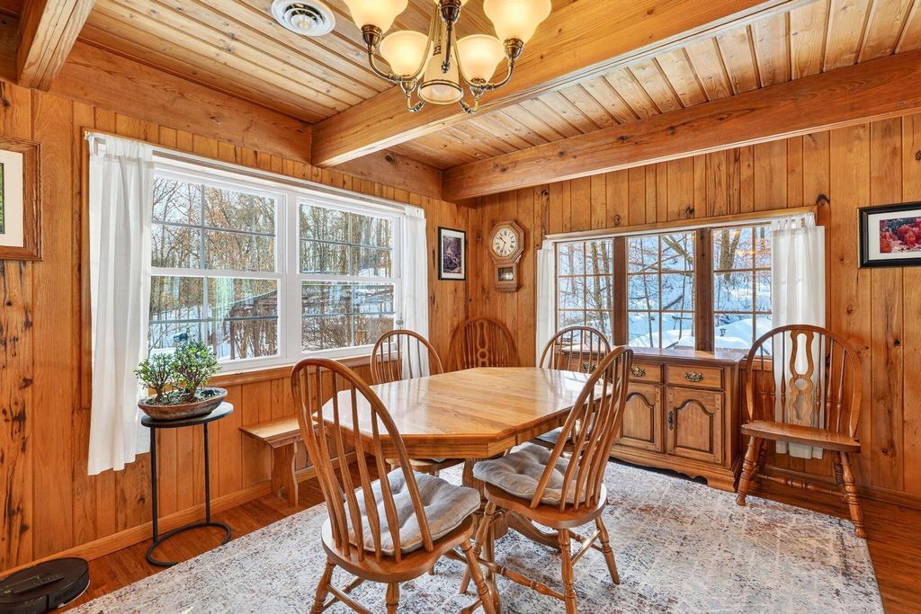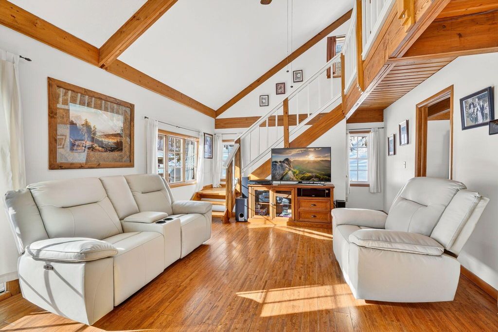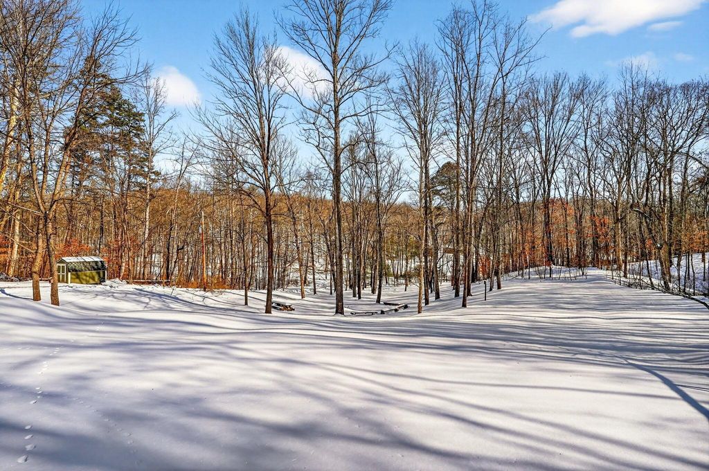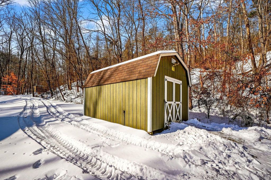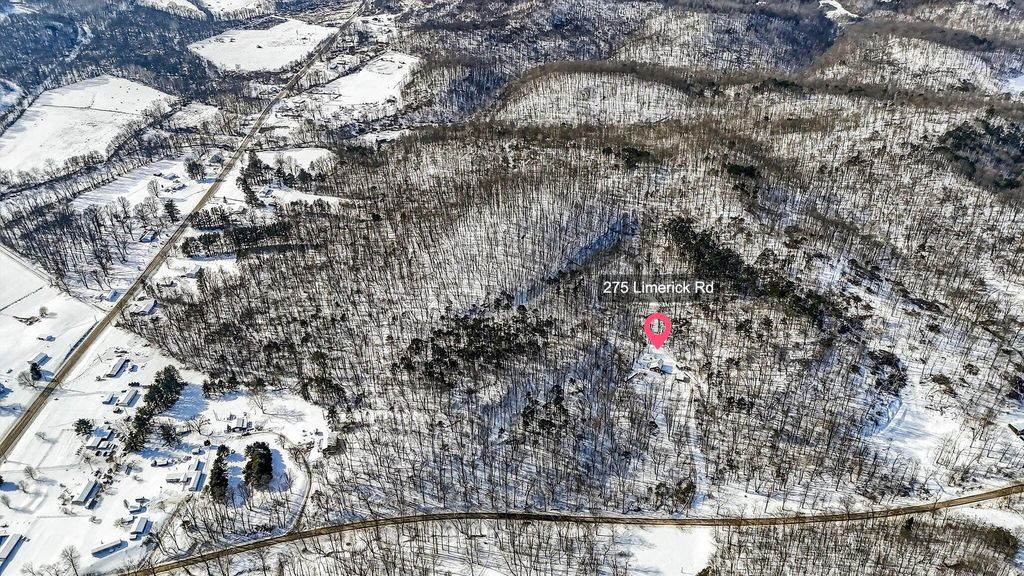 Welcome to 275 Limerick Road in Jackson. Situated on over 46.5 acres, this 2/3 bedroom 2 bath home may be your weekend getaway or permanent oasis. On the main level, you will find an updated kitchen with a new tile backsplash and appliances with laundry room, a dining room, and a living room with a primary bedroom with an attached bathroom. Upstairs hosts another bedroom with an en suite bathroom and an open loft area that could be turned into another bedroom if desired. Beautiful hardwood floors, stone hearth with wood-burning stove, and ample windows make for perfect cozy snowy day views of the Winter wonderland. Spring, Summer, and Fall bring outside activities including hiking and ATV trails, blueberry picking (producing 30 gallons each year), mushroom hunting, and entertaining while sitting on the back deck, fire pit area, and multiple places to stop and take in all the views. Watering hole nearby. If you are looking for something special, this is it!